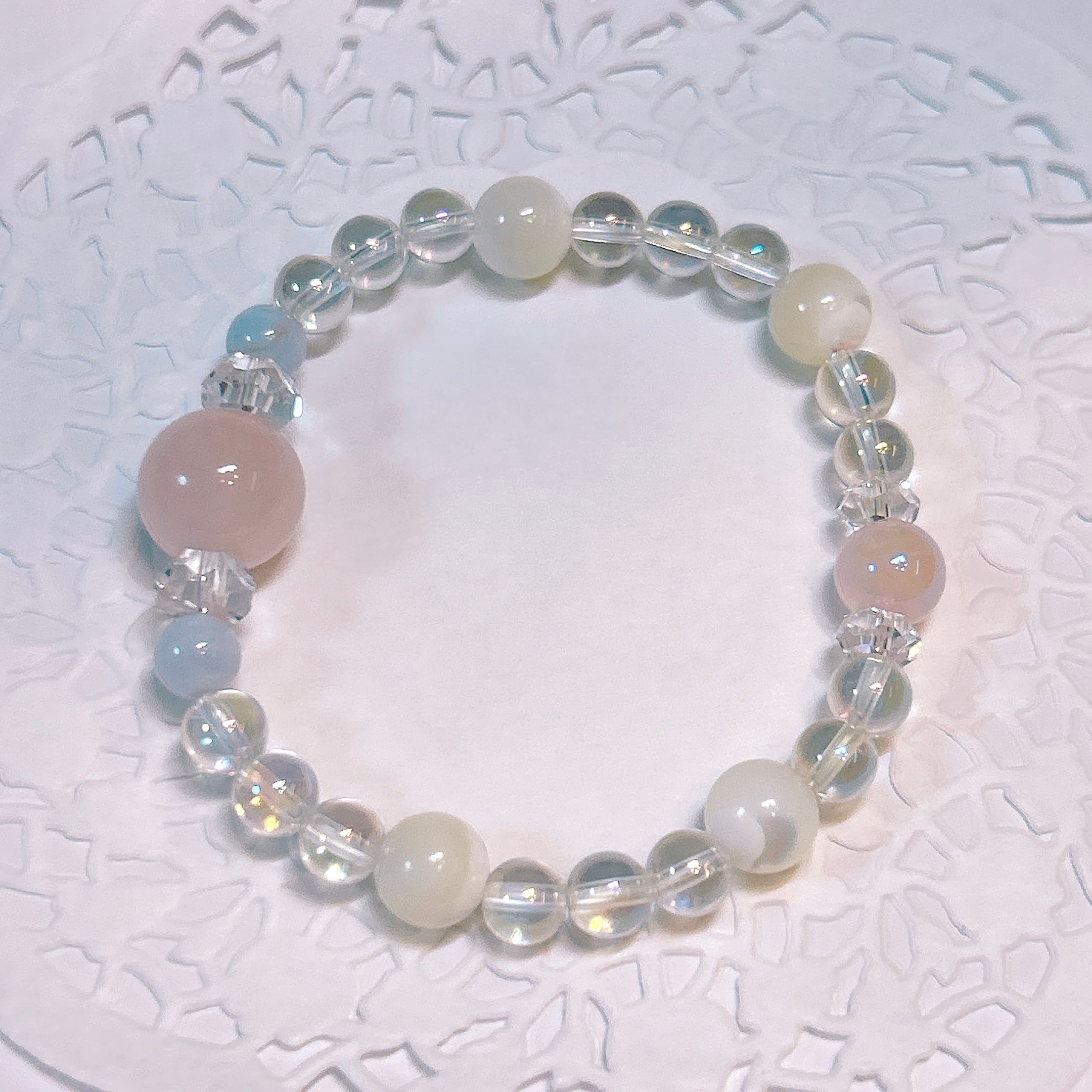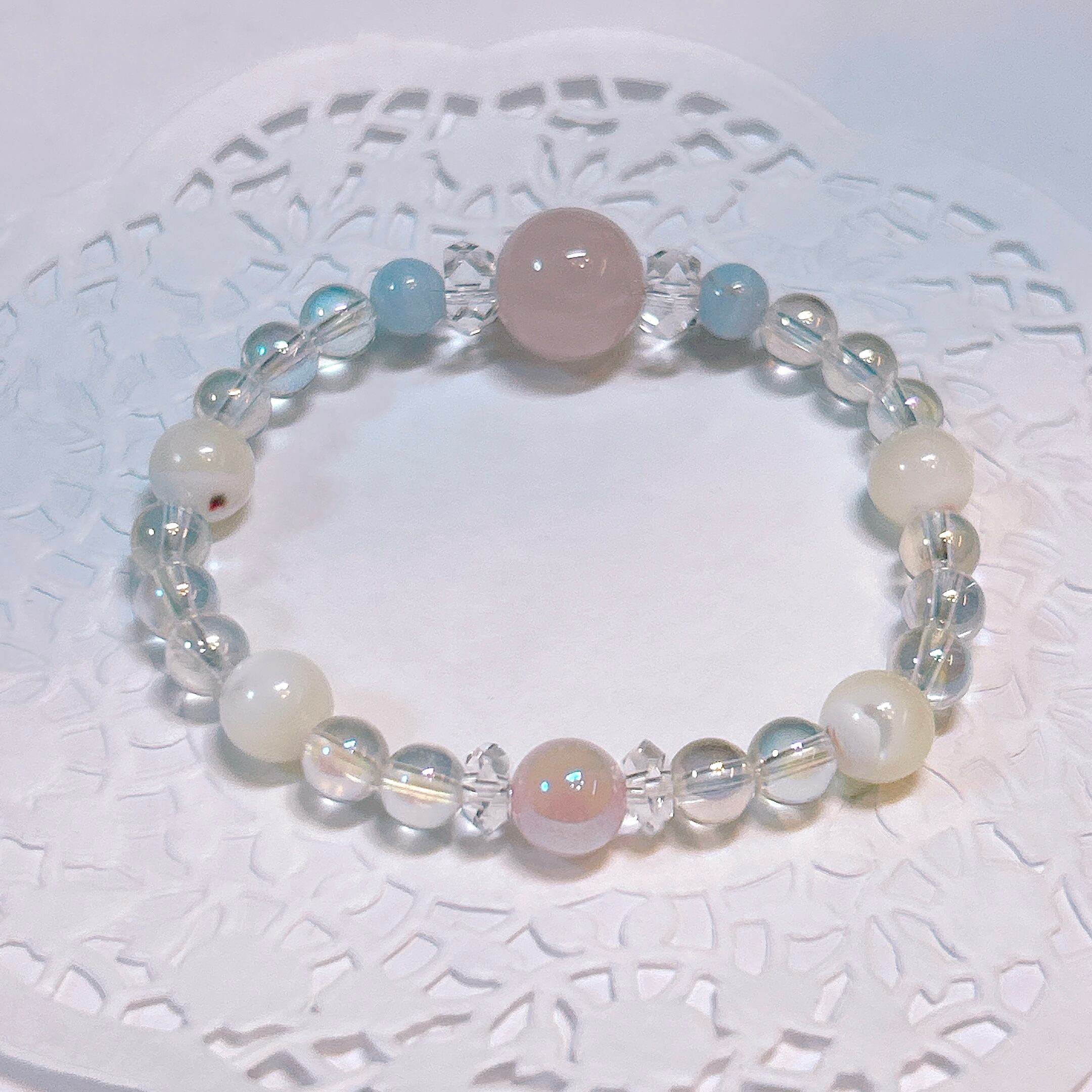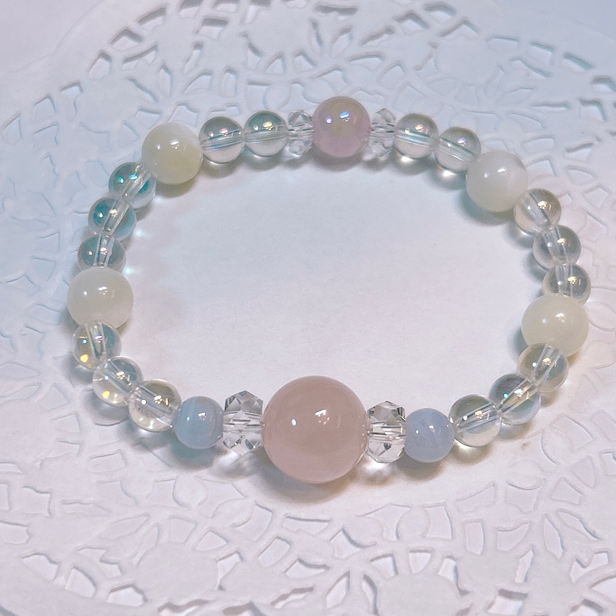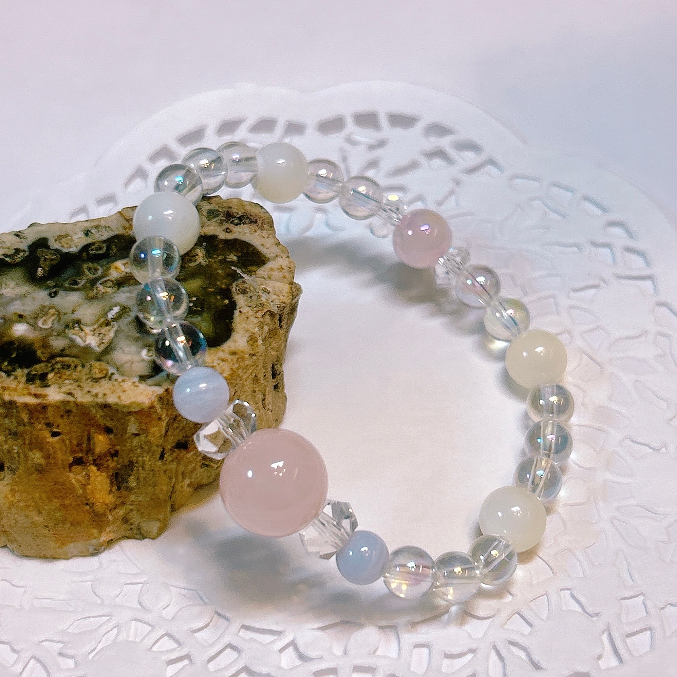 【17622】ラベンダーアメシスト ムーンストーン アマゾナイト ブルーレースアゲート 水晶オリジナルブレスレット