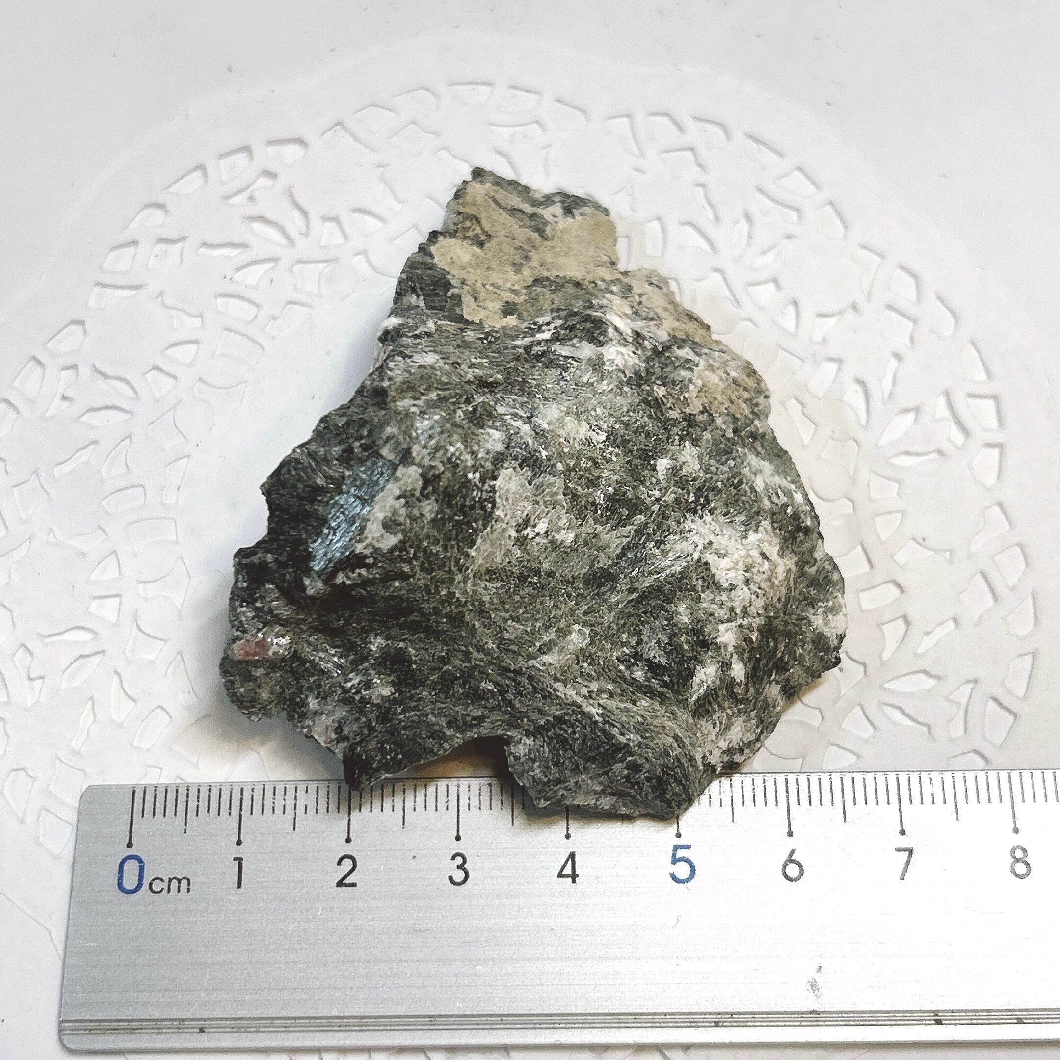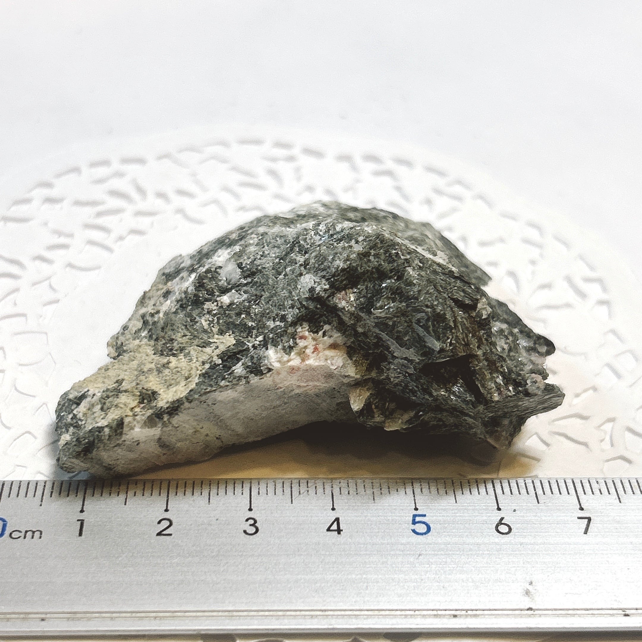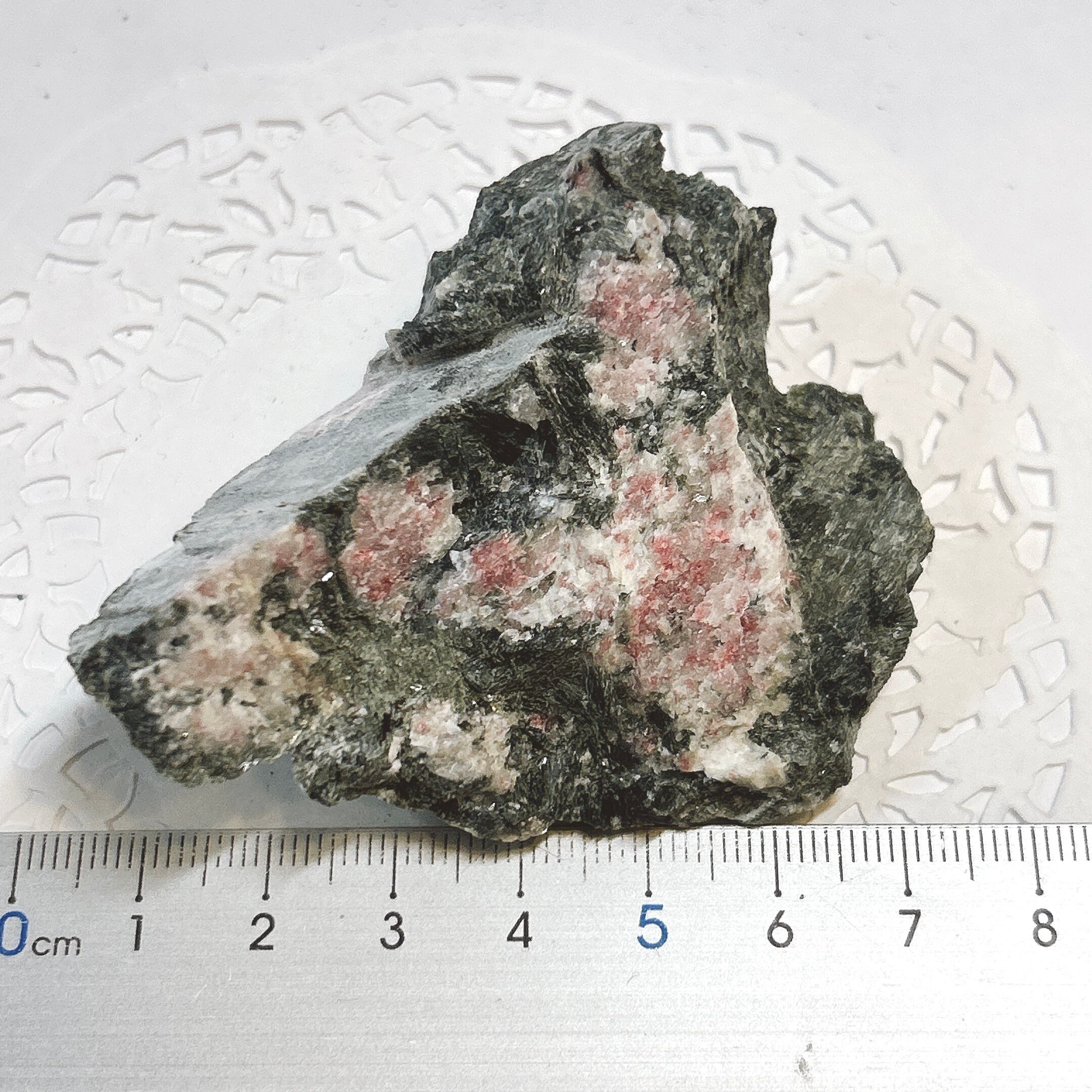母岩中の肌色の部分。緑はアクチノライト