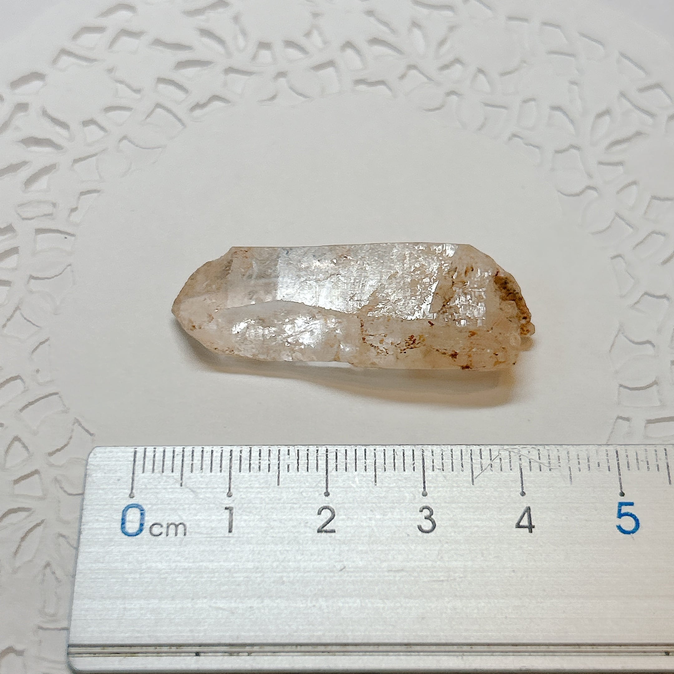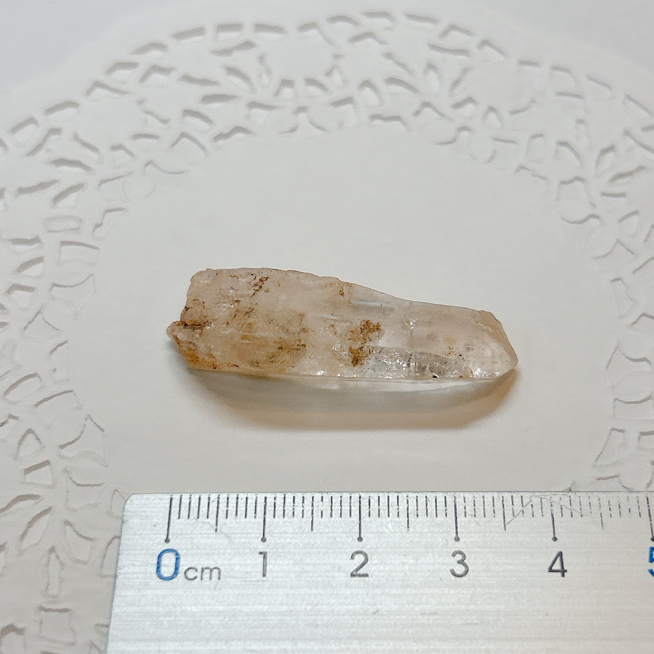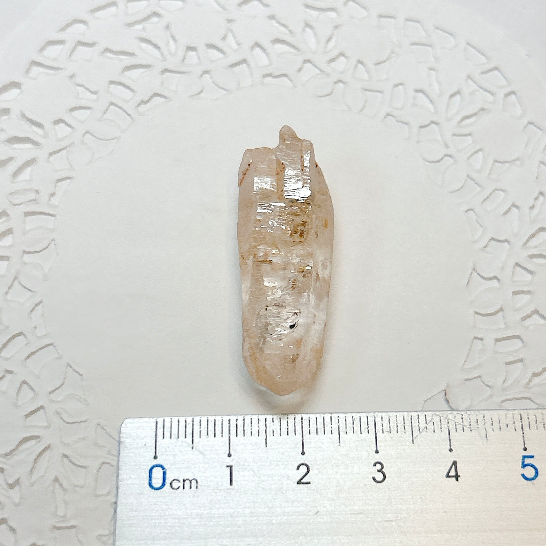 長波紫外線ライトを照射する事により、黄色や青白く蛍光します。2023年にマダガスカルで水晶の品質がよく、蛍光も非常によくわかる良品が発見されました。