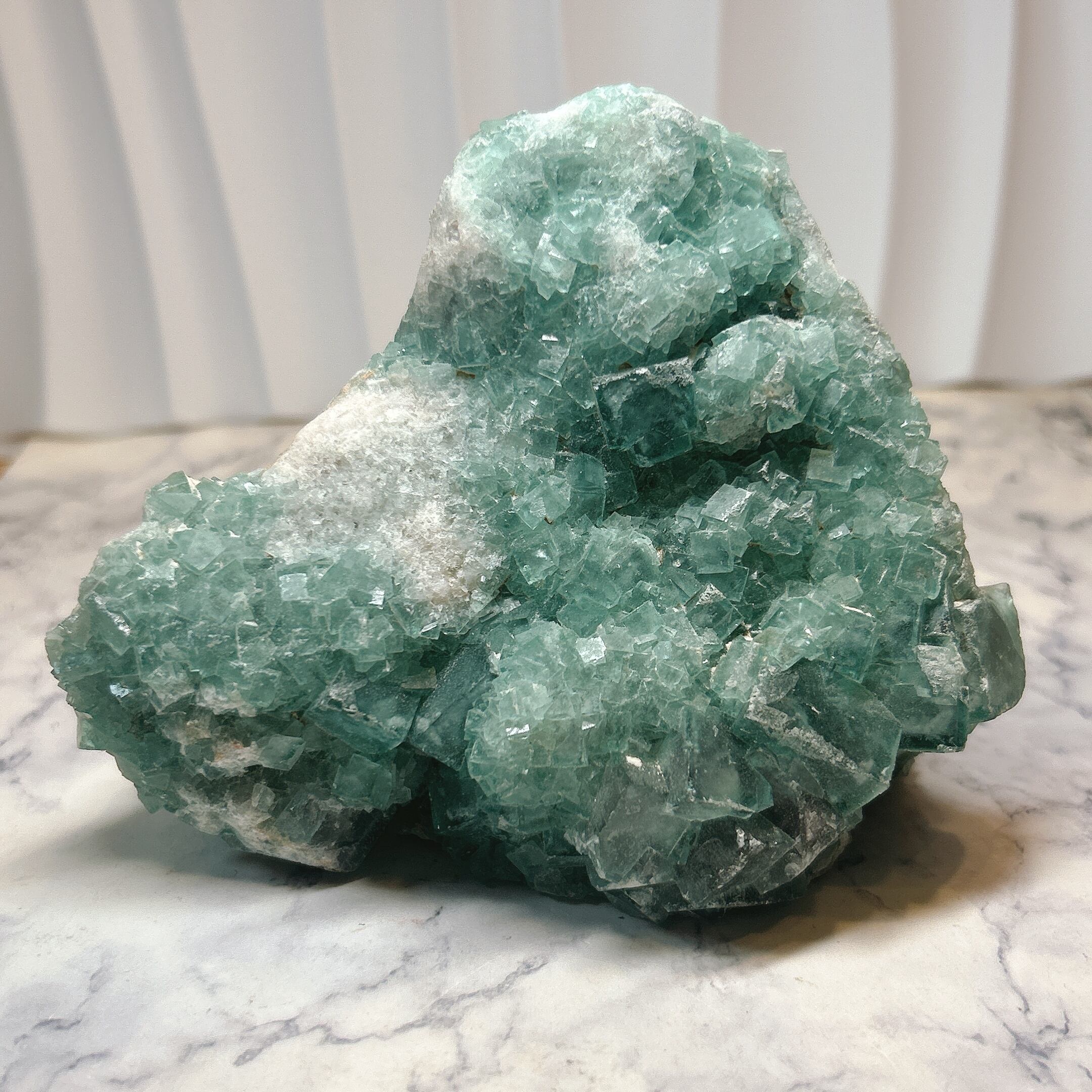 グリーンが濃く、透明感のある美しいフローライト結晶