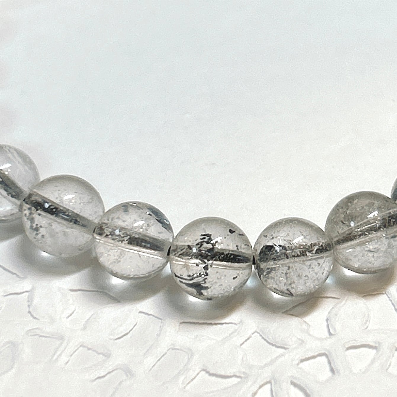水晶の中にスティブナイトが入り込んだレアなブレスレット