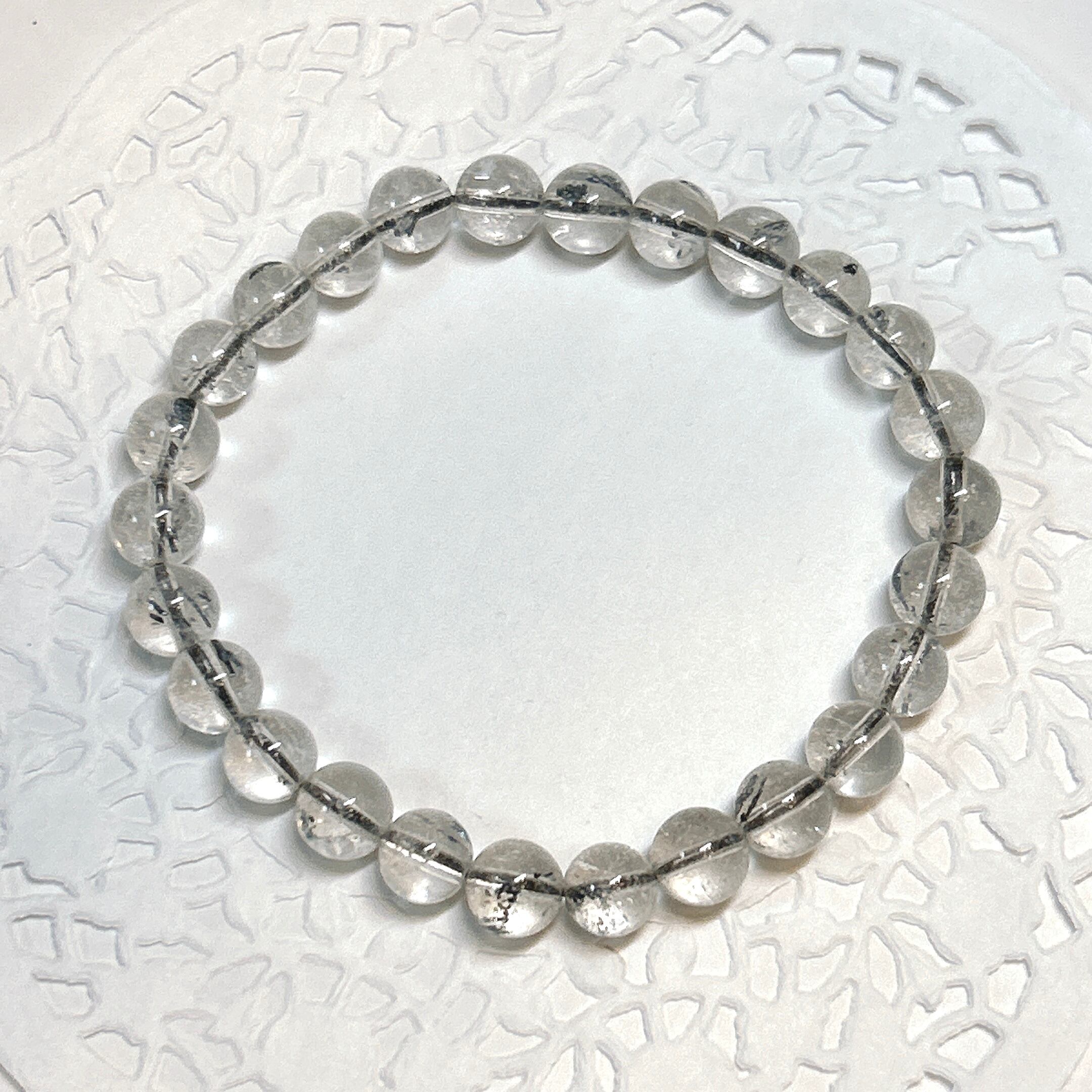 【E17806】スティブナイトinクォーツ8㎜ ブレスレット Stibnite in Quartz bracelet