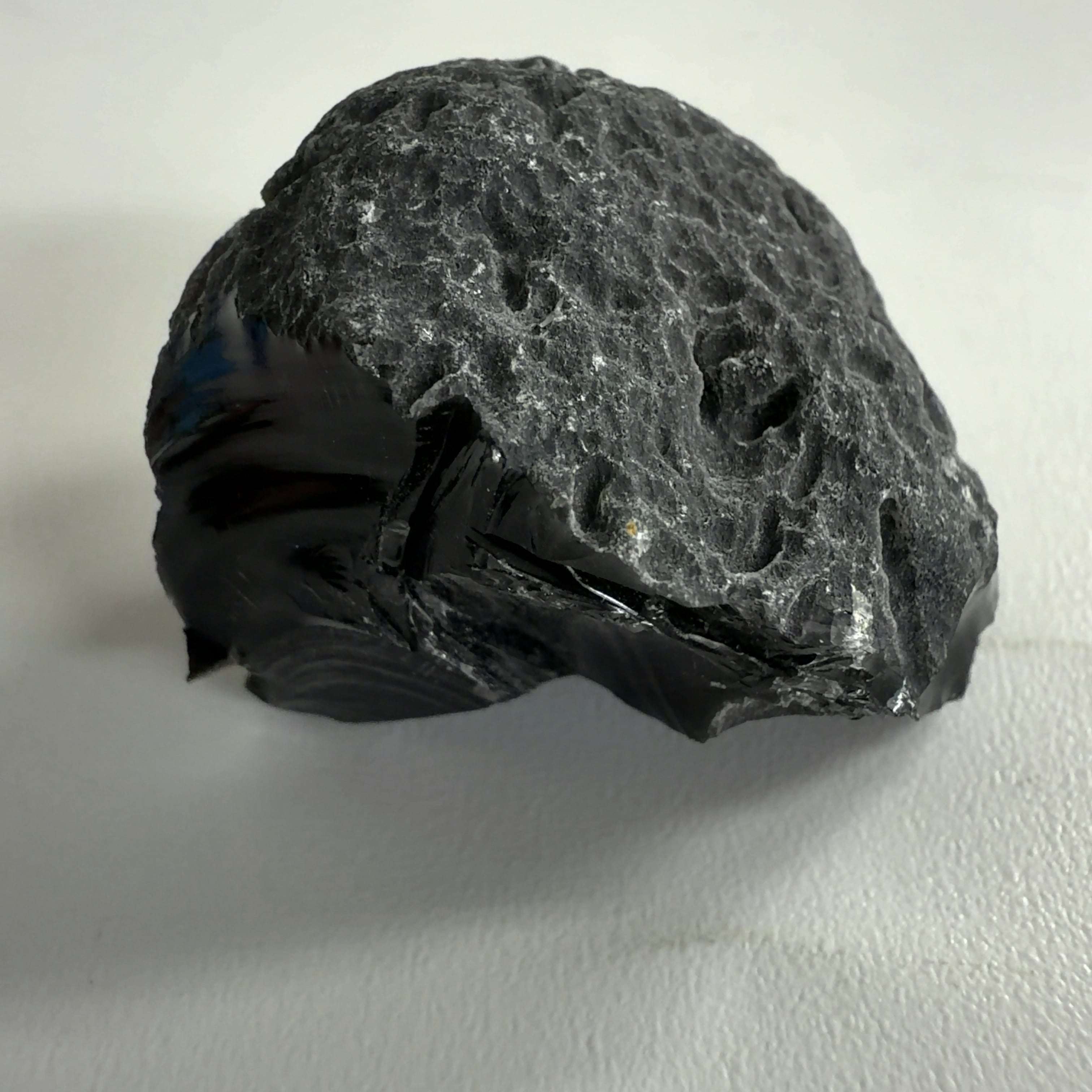 隕石が地球に衝突したときにできるテクタイトに似ているが、火山から噴出したオブシディアン火山弾。