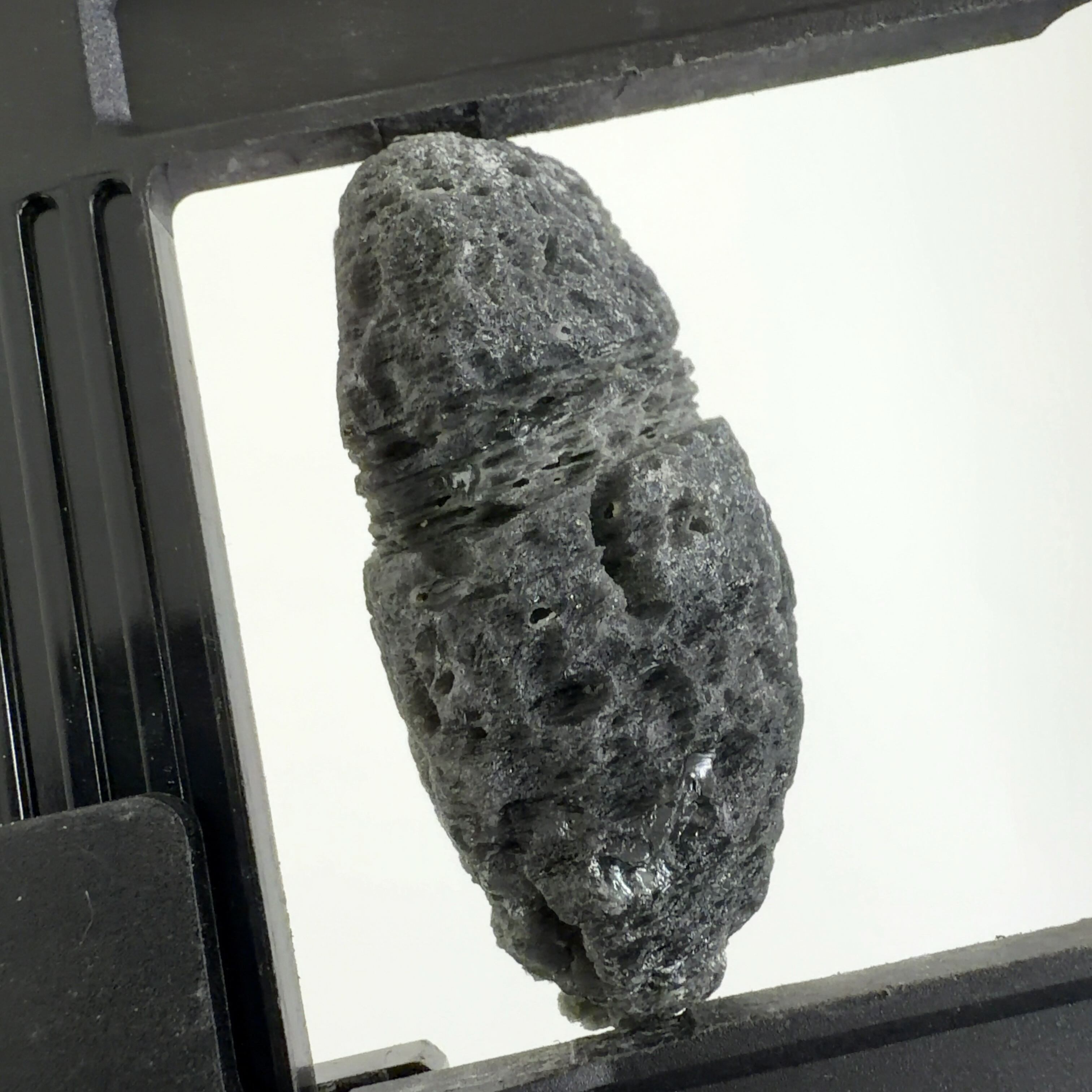 隕石が地球に衝突したときにできるテクタイトに似ているが、火山から噴出したオブシディアン火山弾。