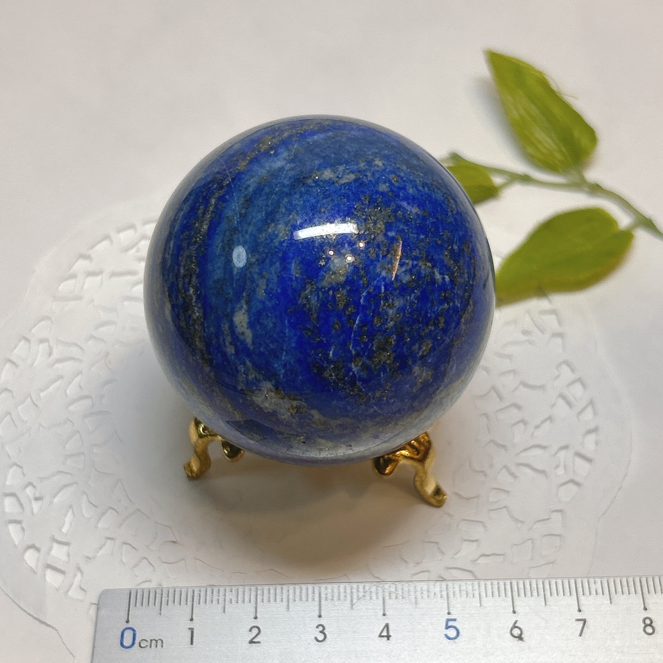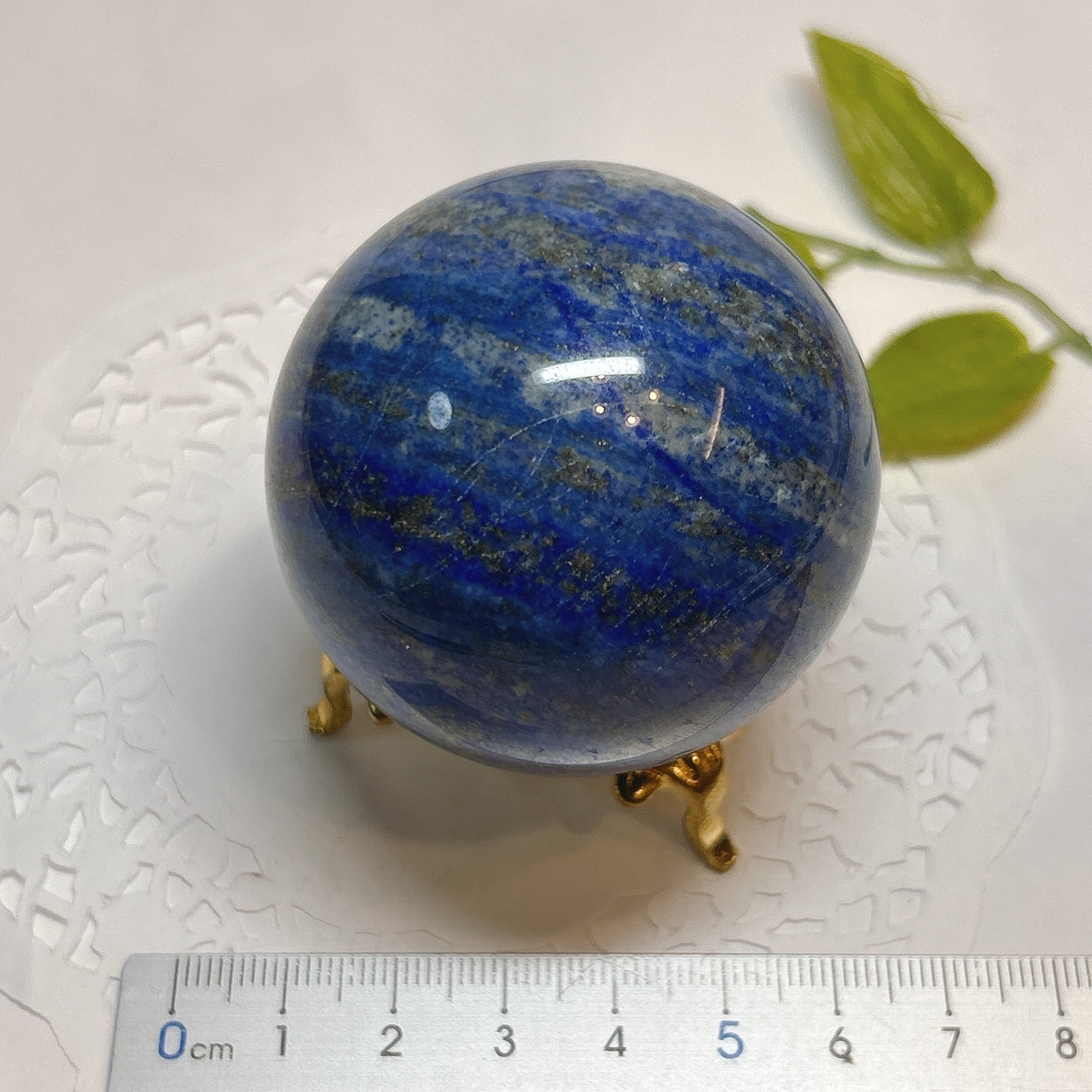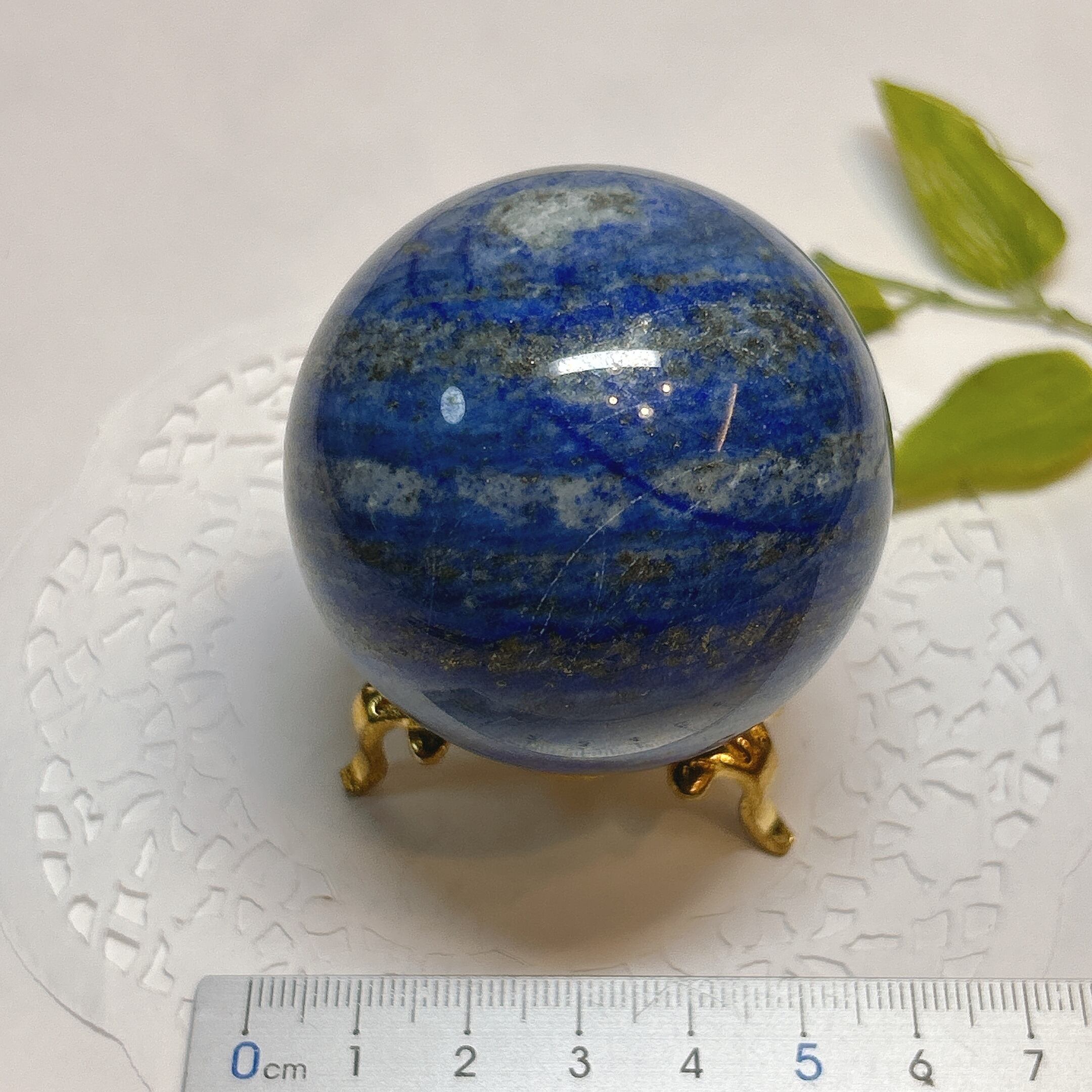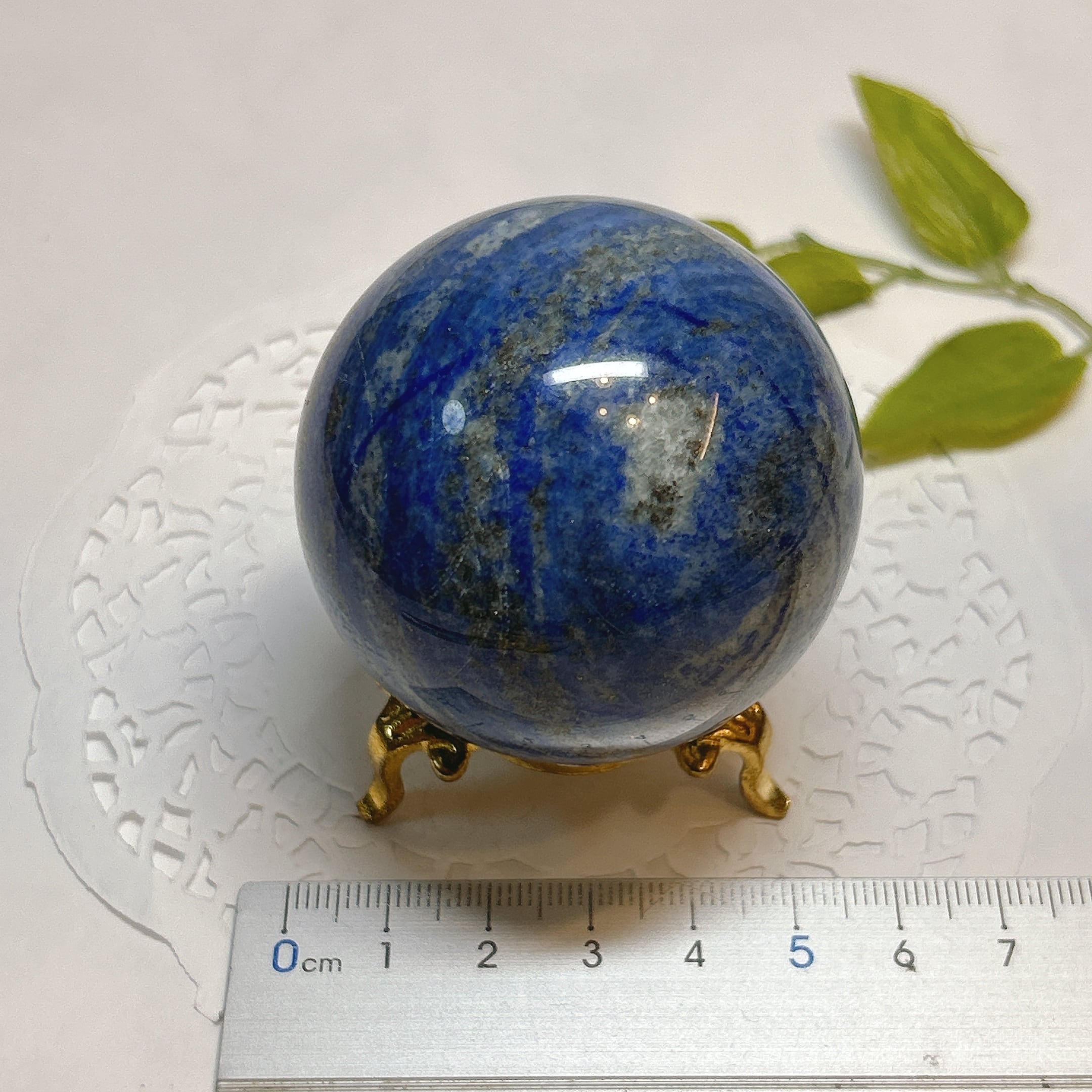 綺麗な瑠璃色と黄鉄鉱のキラキラが美しい球。