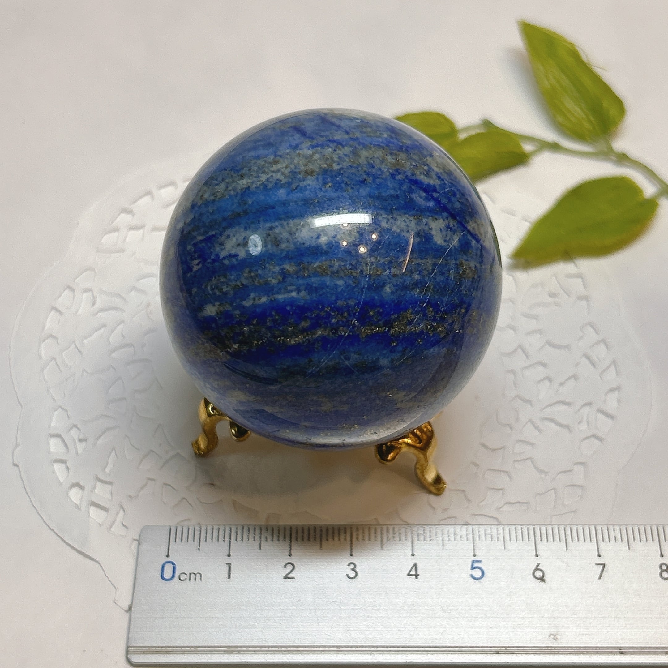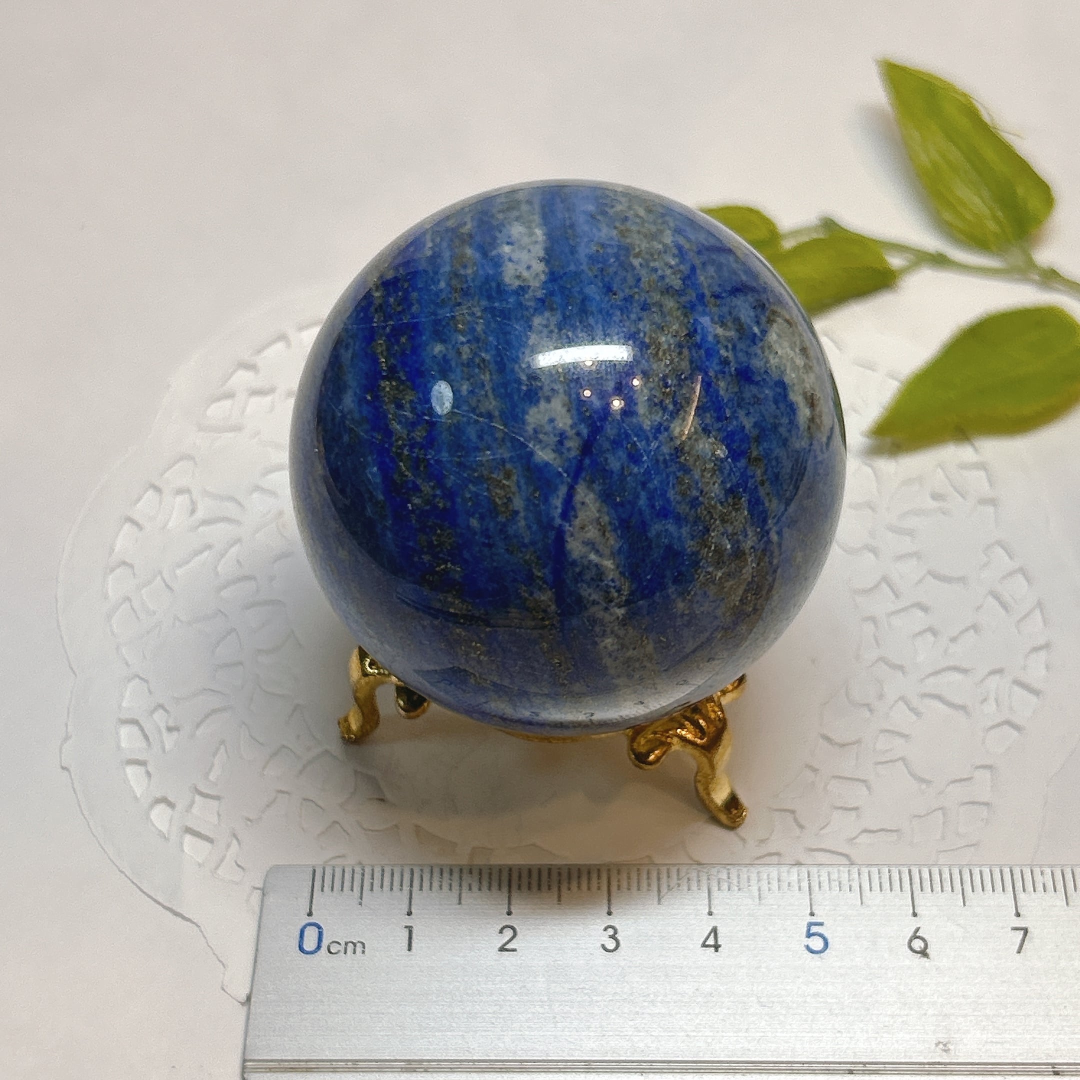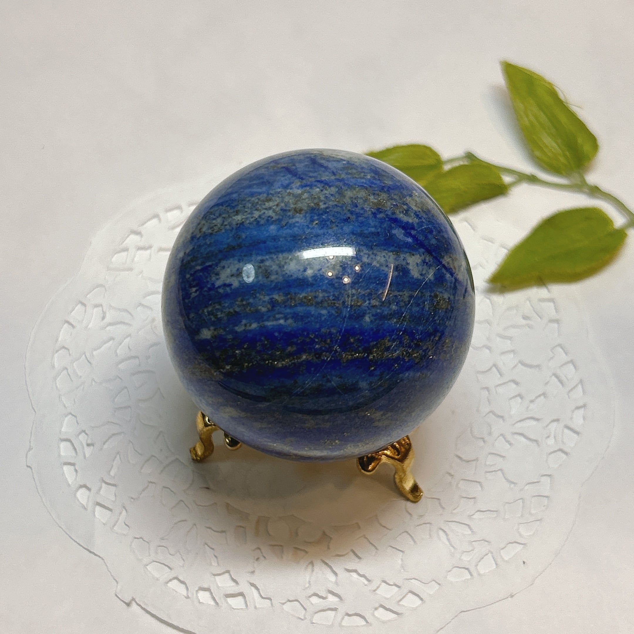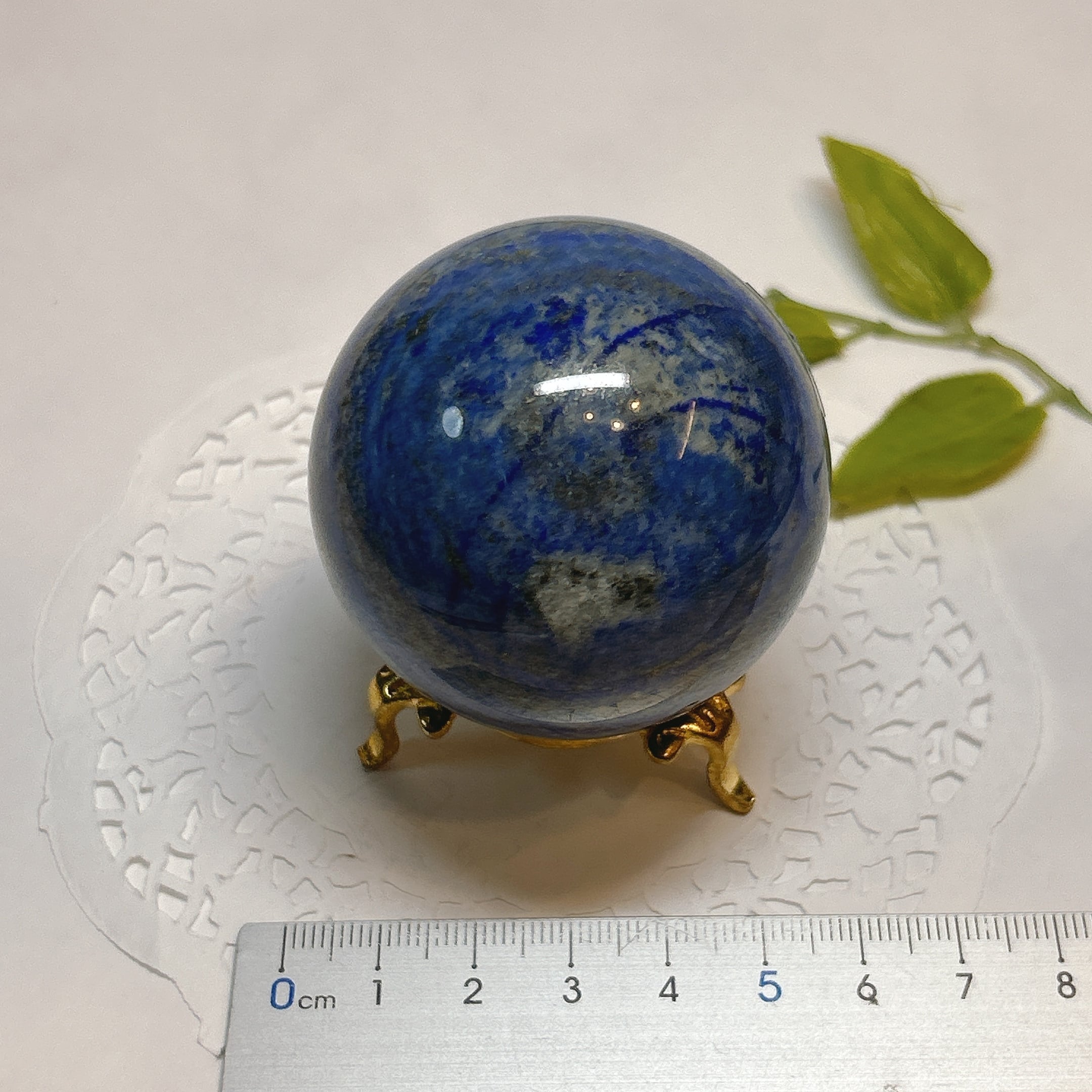 綺麗な瑠璃色と黄鉄鉱のキラキラが美しい球。