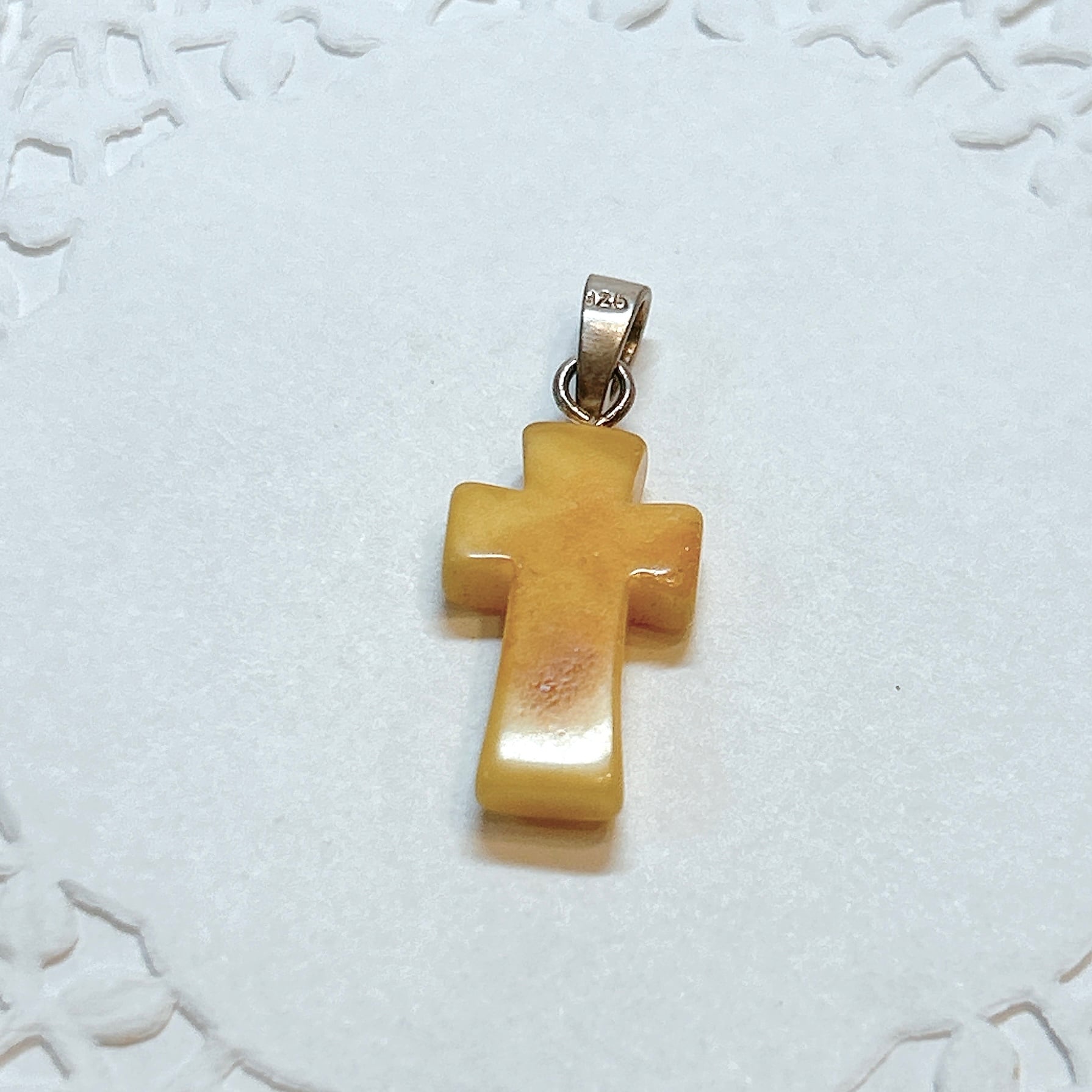 琥珀の十字架ペンダント