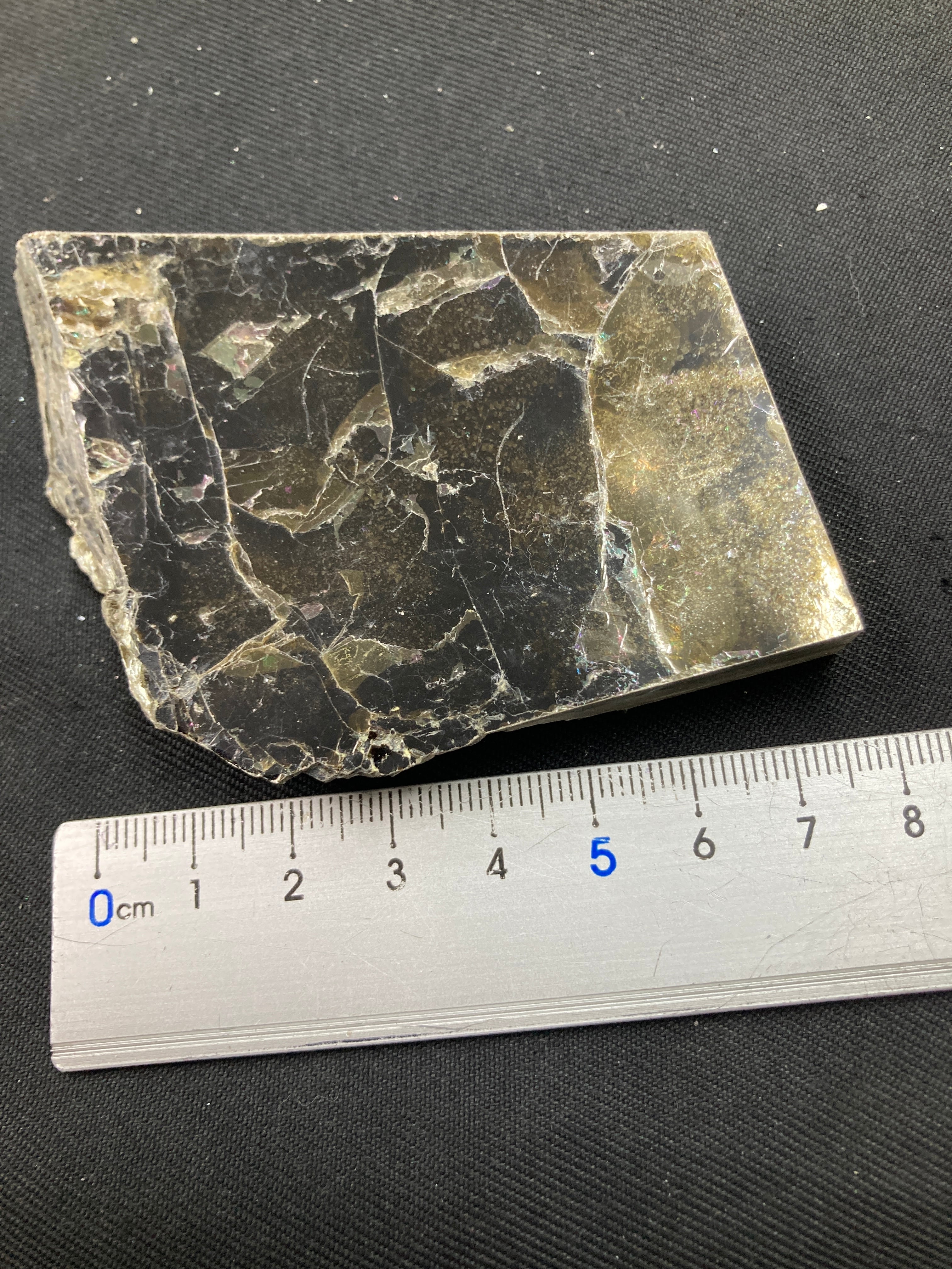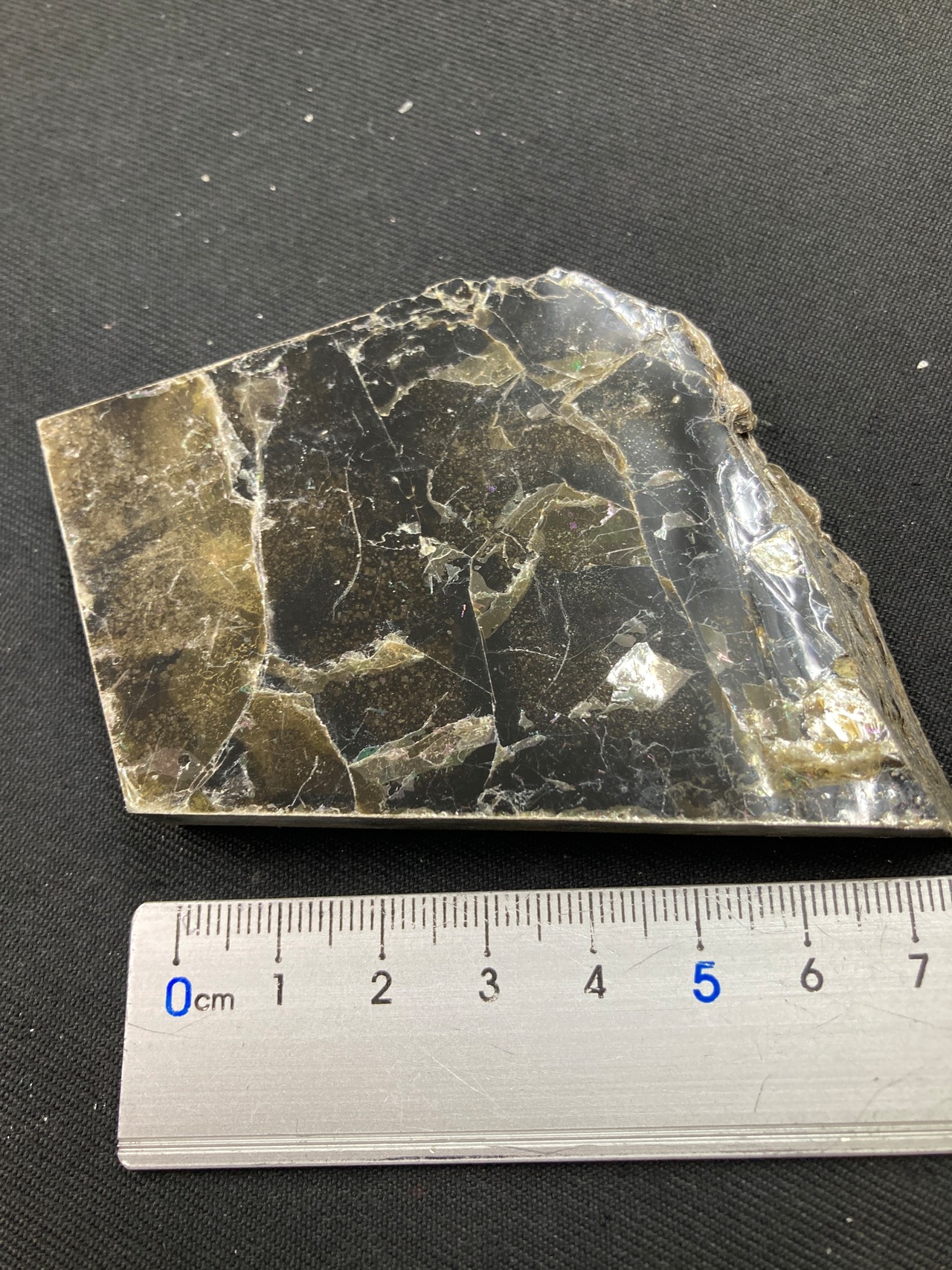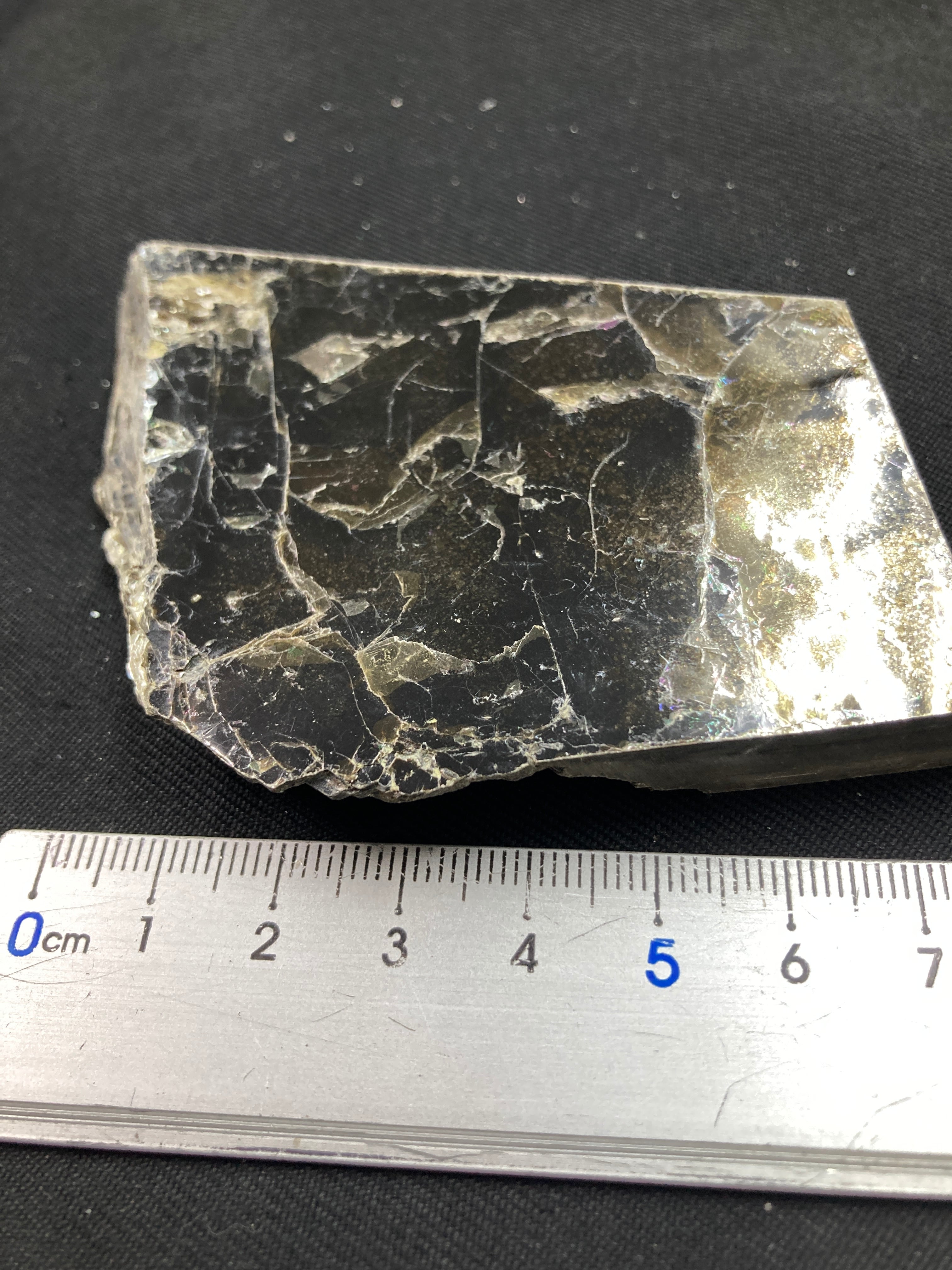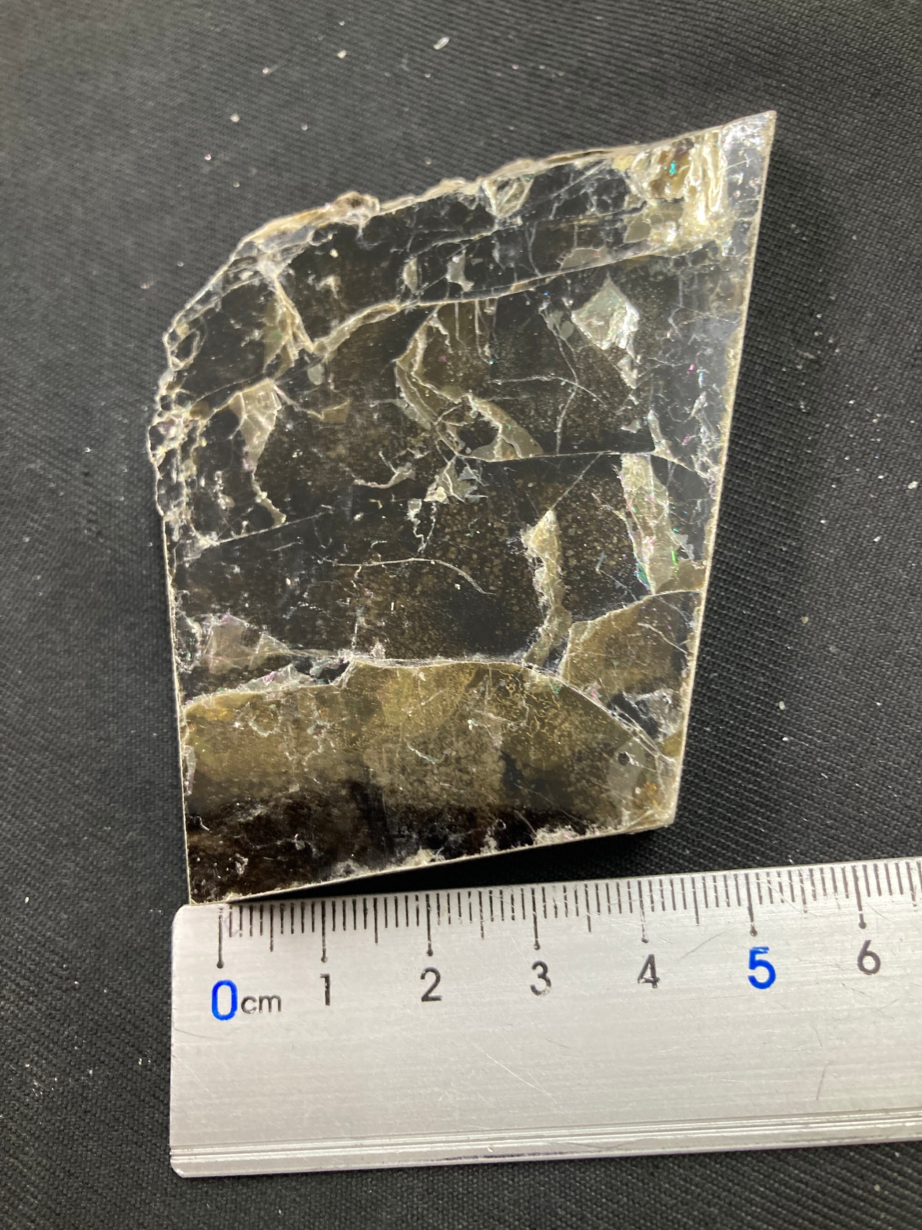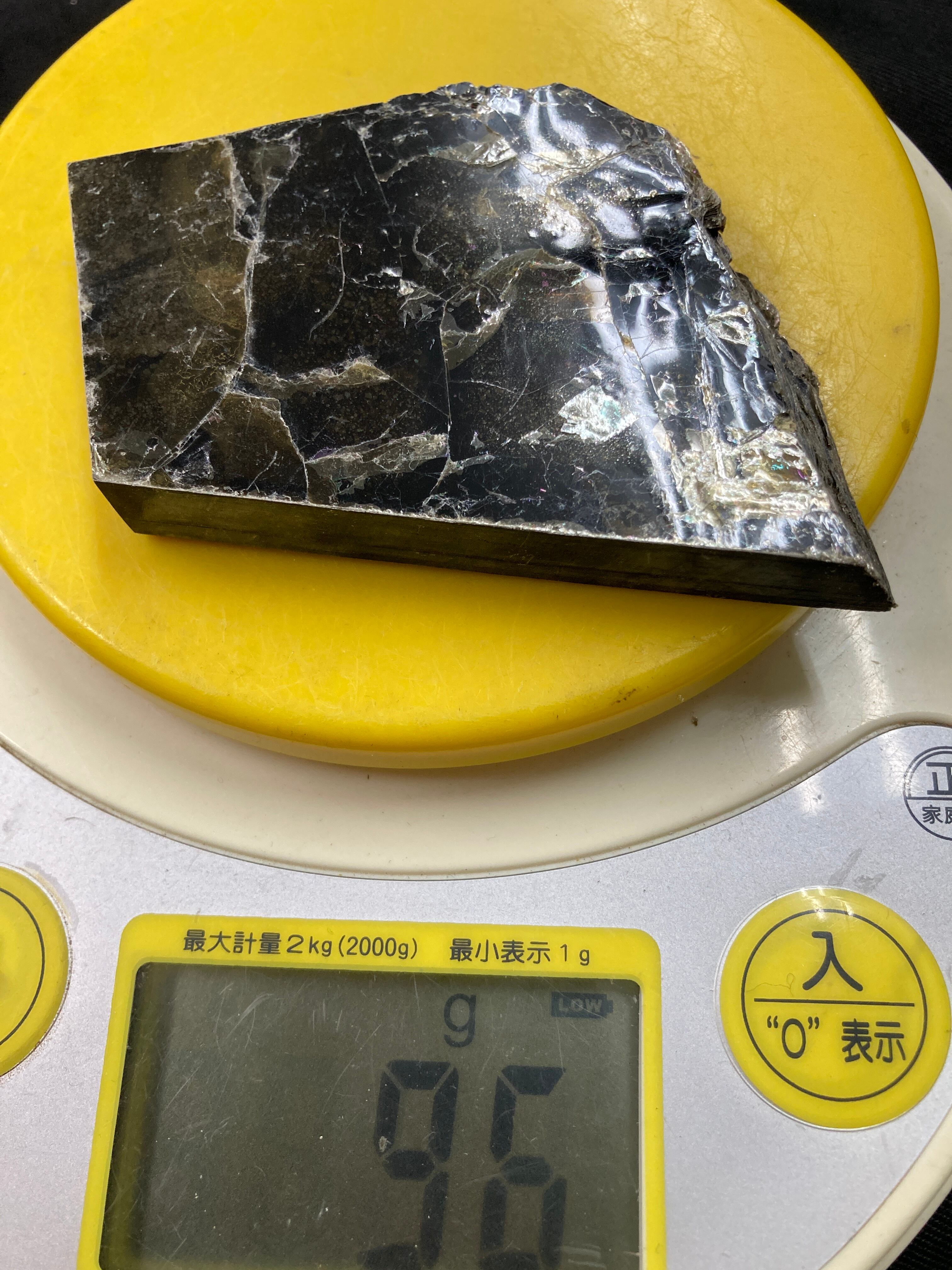 こちらは大きな一枚の金雲母結晶を岩石のカッターで小さく切断したものです。