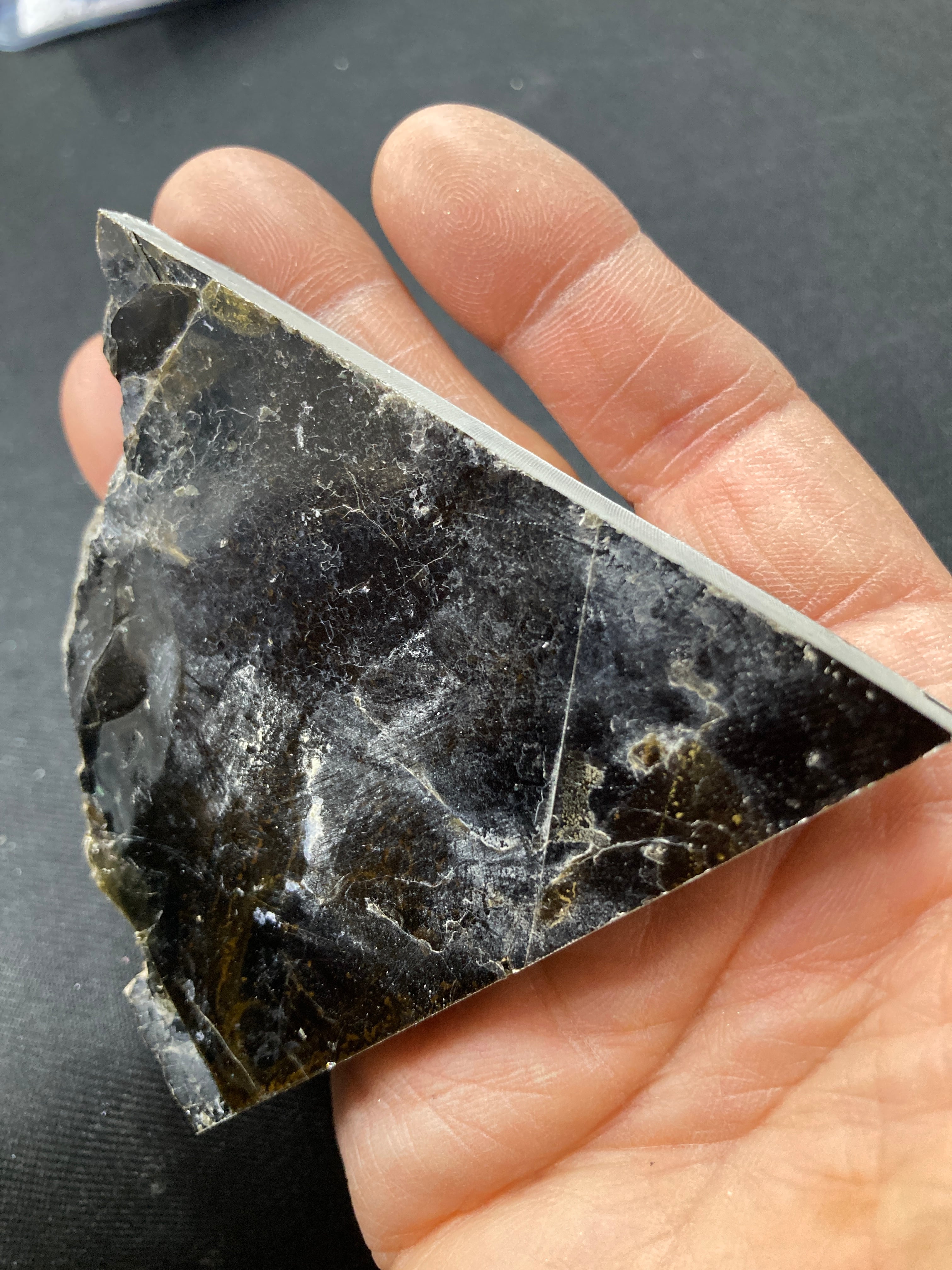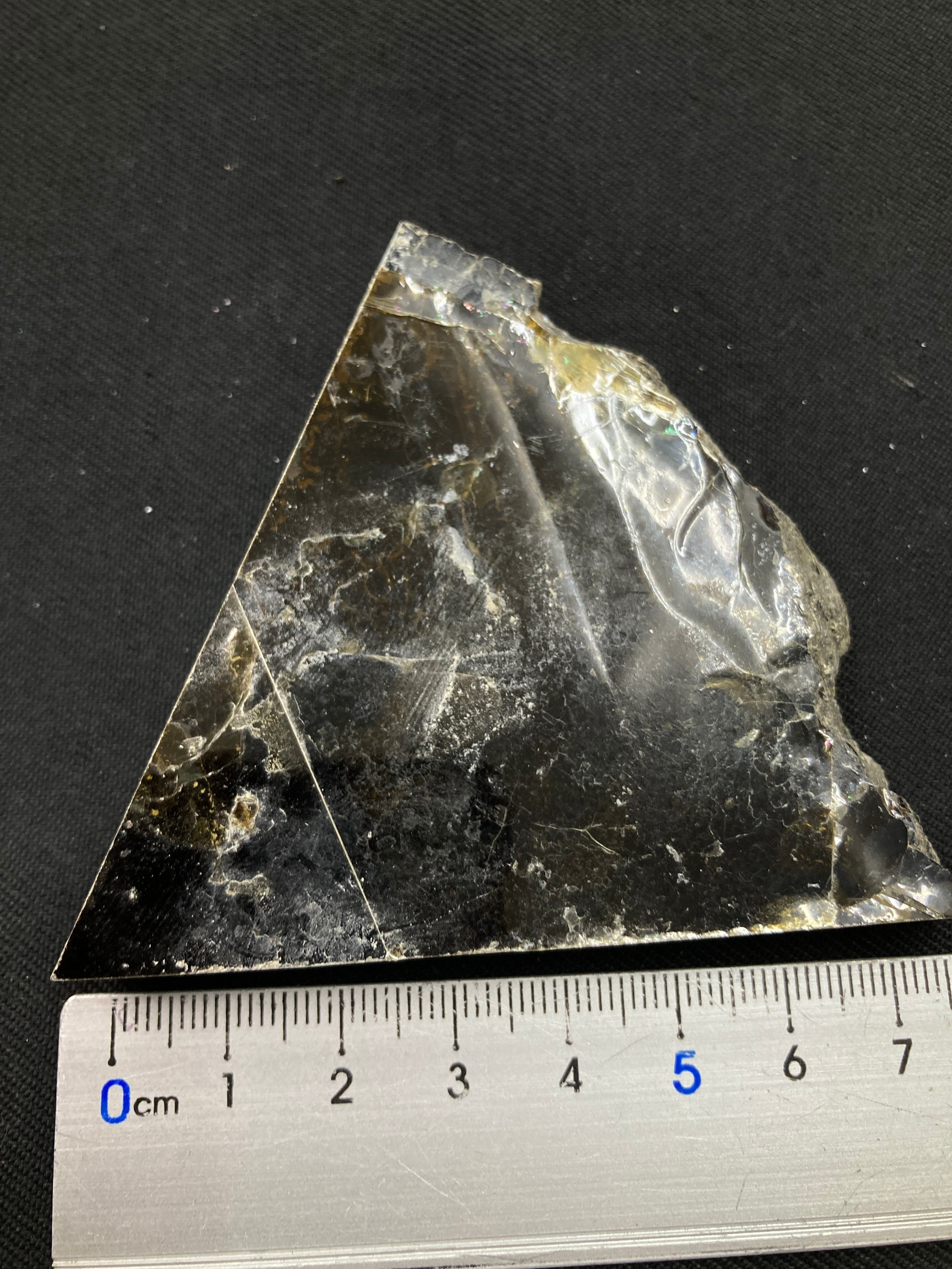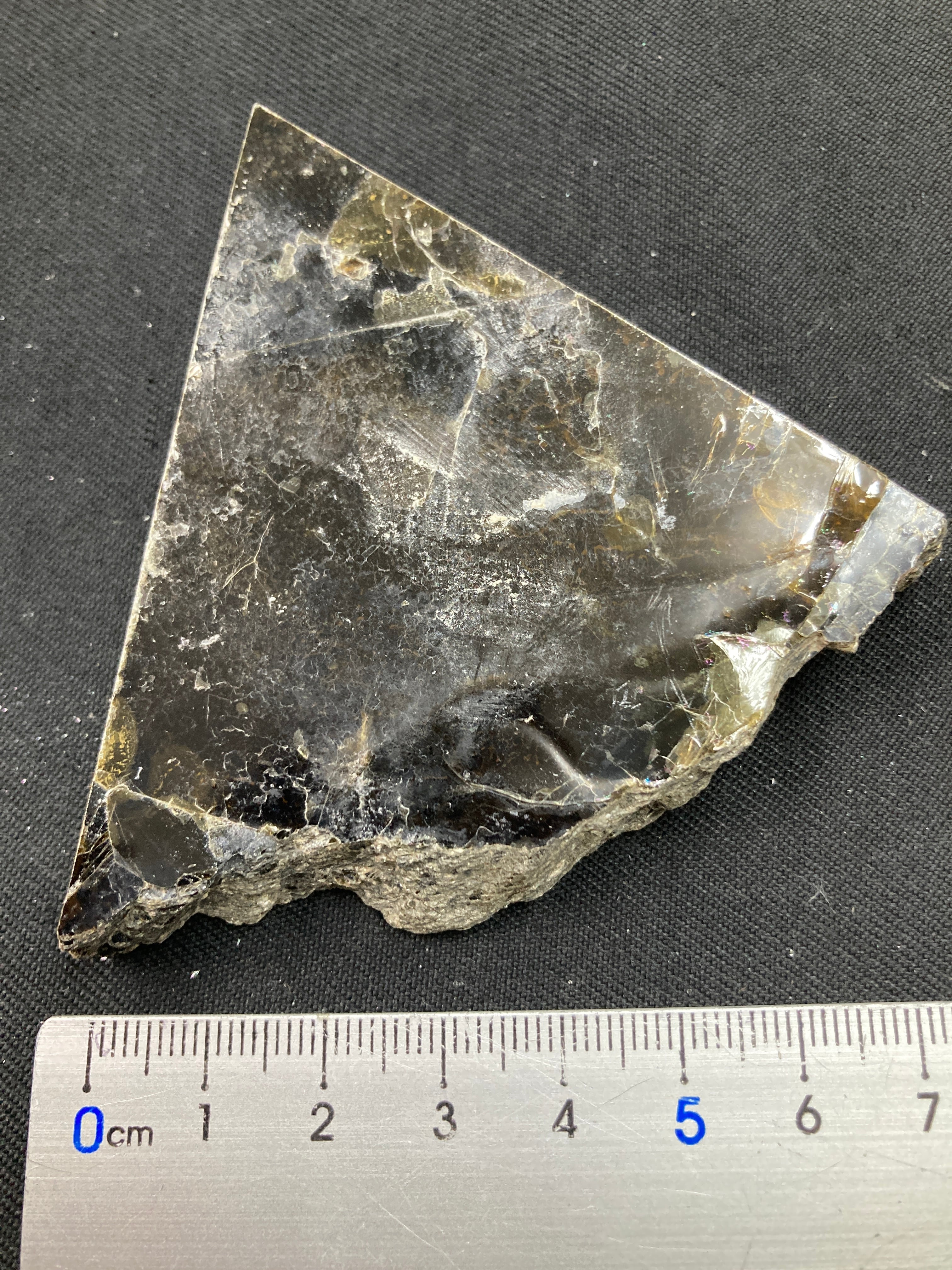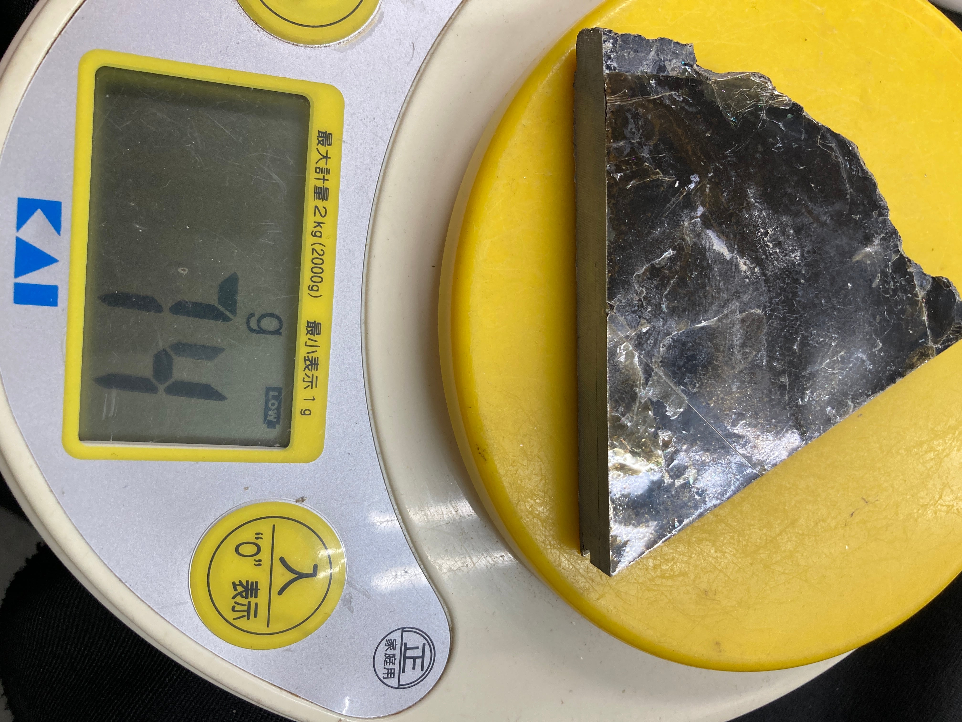 こちらは大きな一枚の金雲母結晶を岩石のカッターで小さく切断したものです。