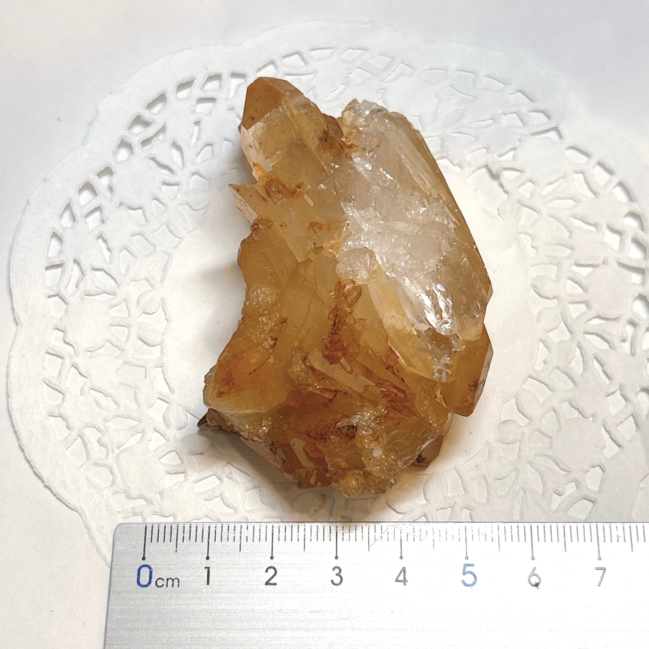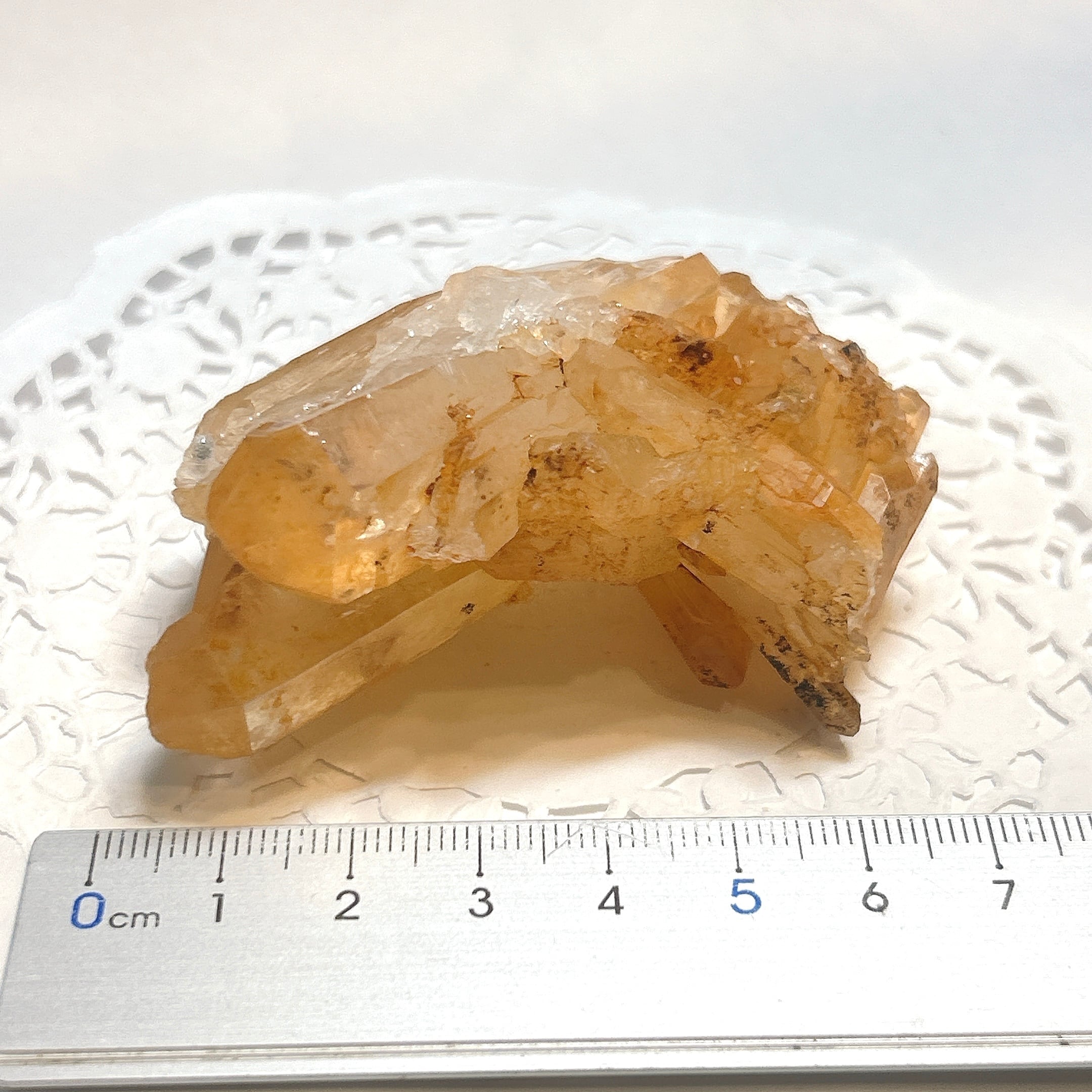 表面に酸化鉄が付着することでオレンジに色付いた天然水晶