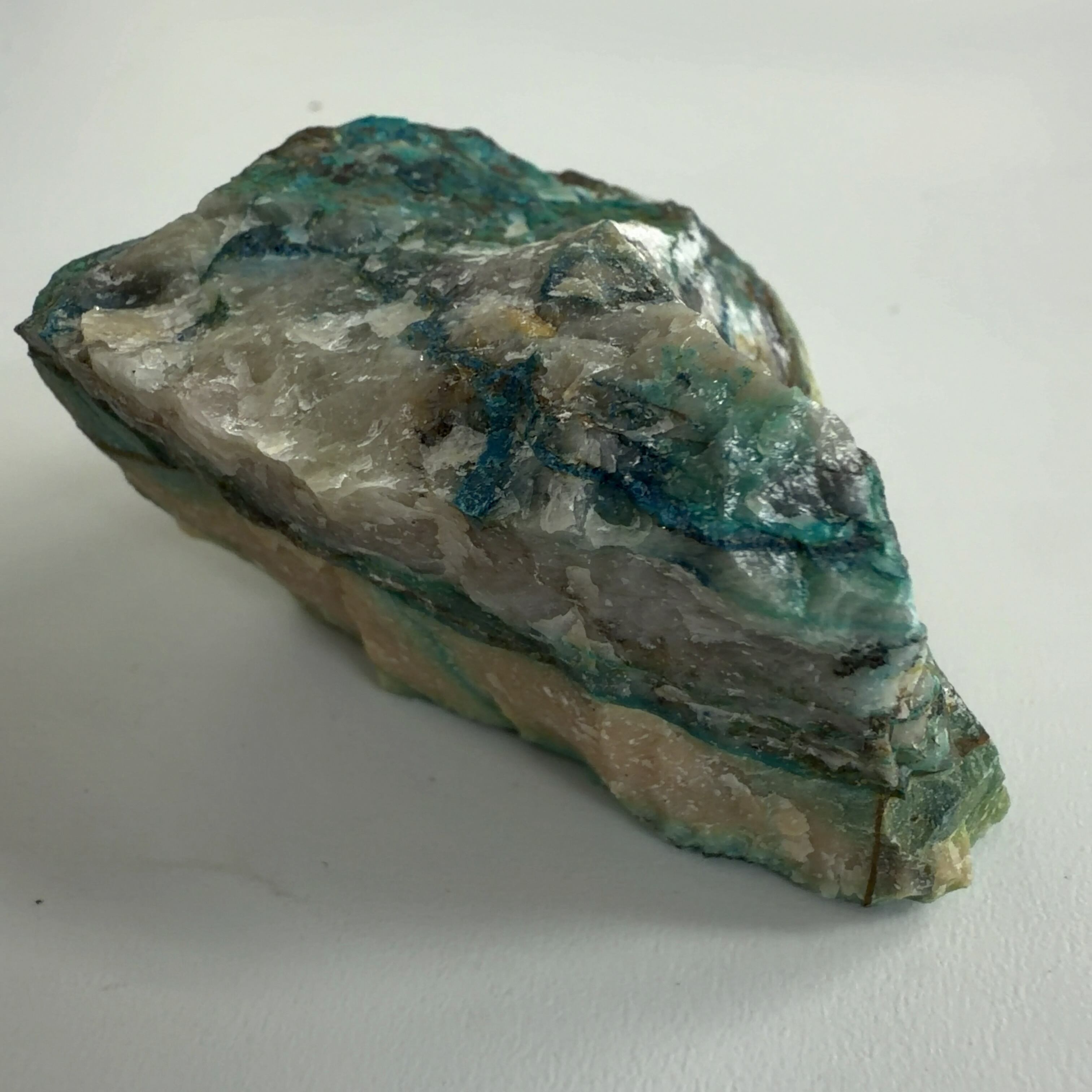 銅の二次鉱物で、マラカイトの成分を含んだ状態で産出される鉱物で知られています。