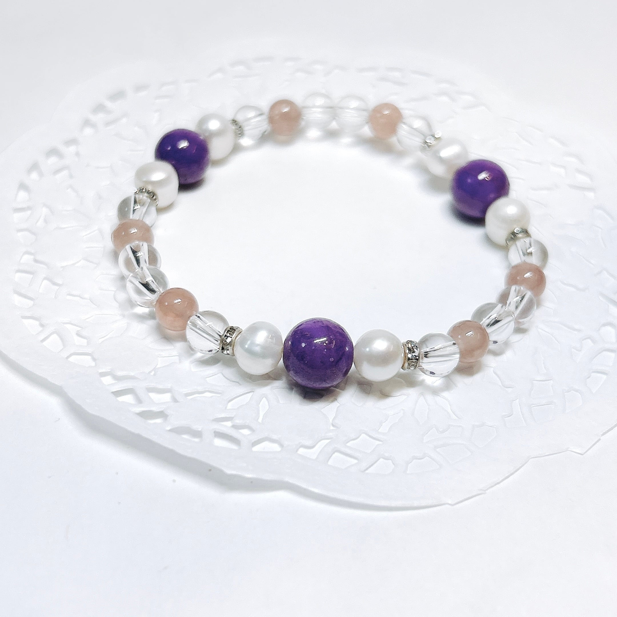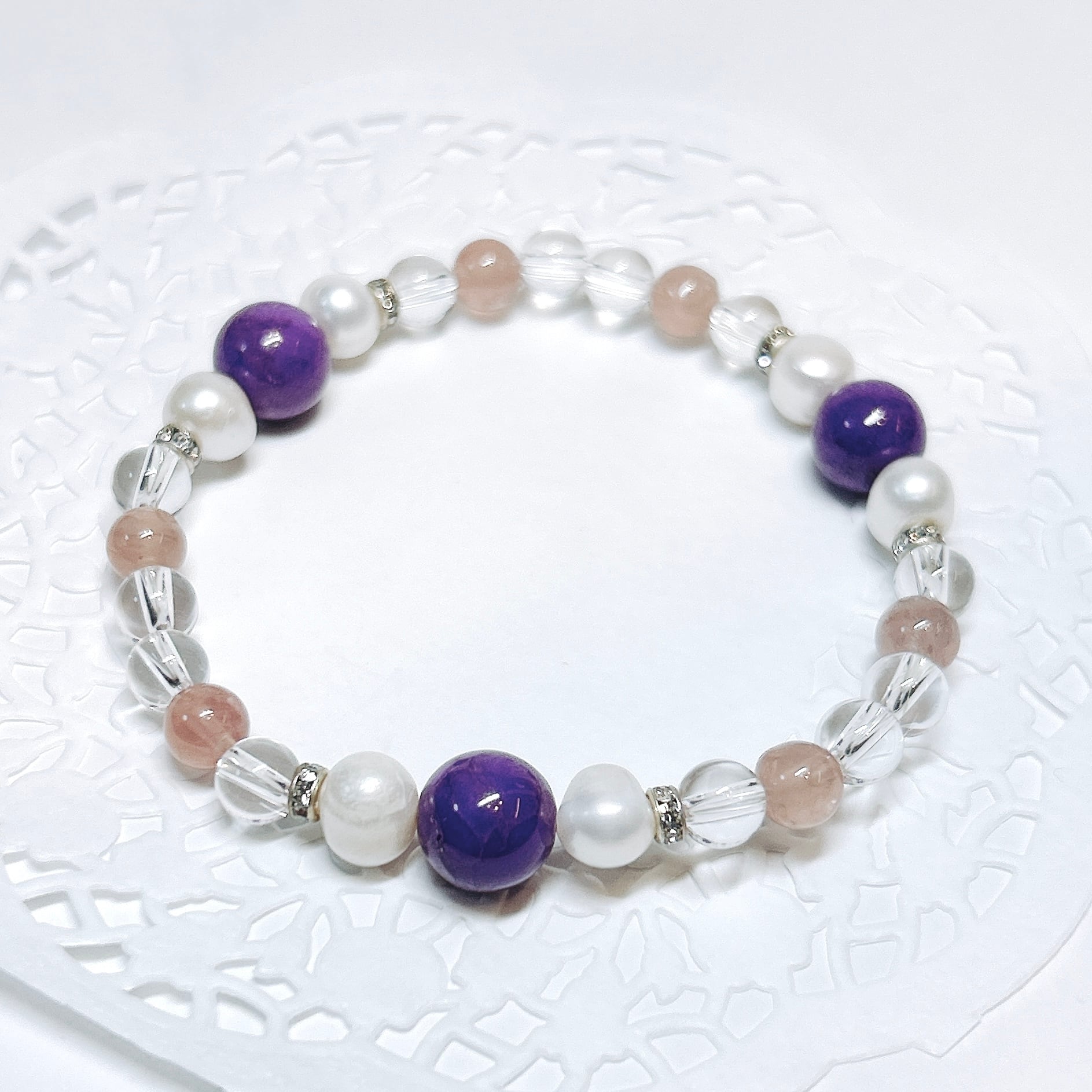 【E18117】フォスフォシデライト ディープローズクォーツ 水晶 淡水パール ブレスレット 天然石 オリジナルブレスレット
