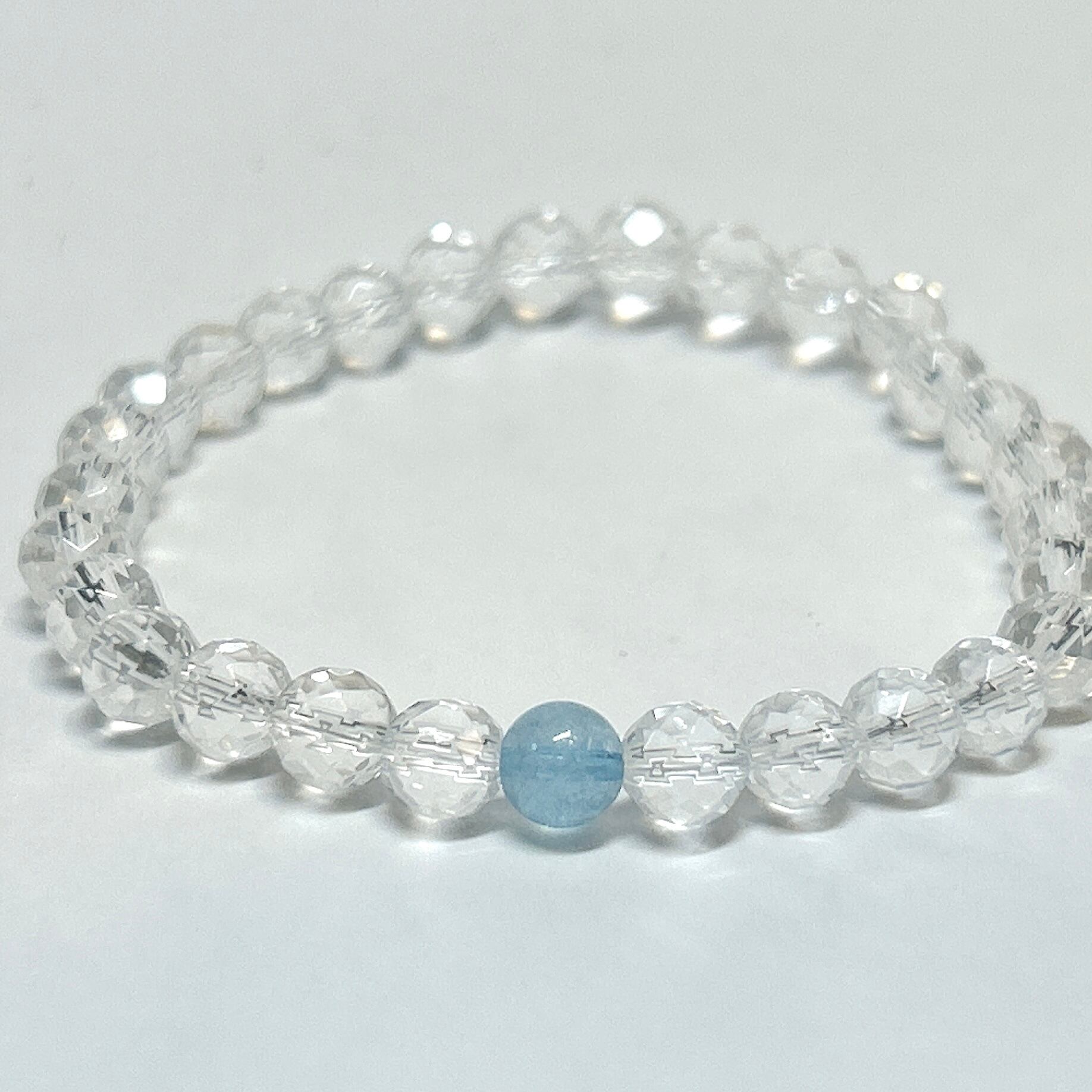 【E18122】アクアマリン 3月誕生石 水晶 ブレスレット 天然石 オリジナルブレスレット