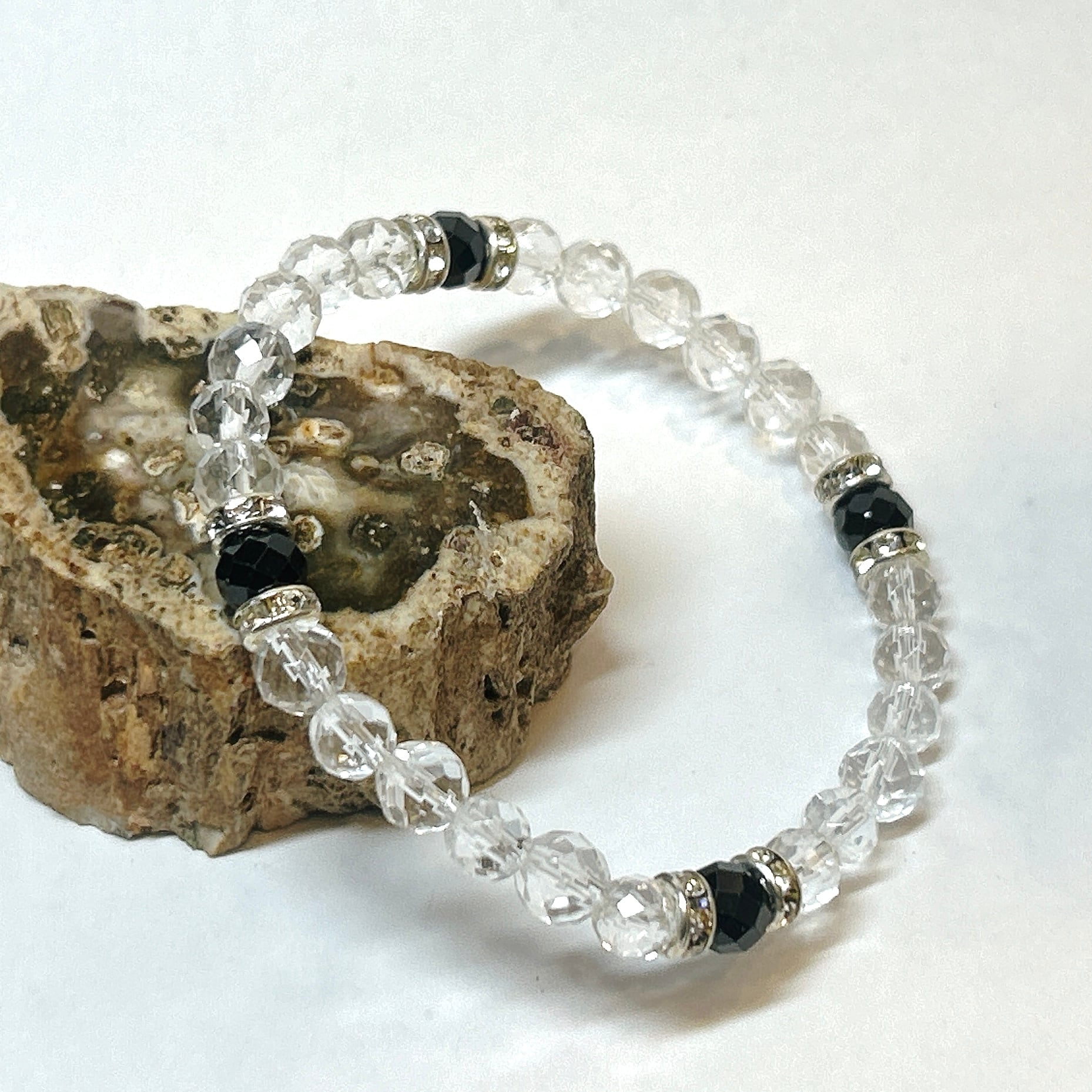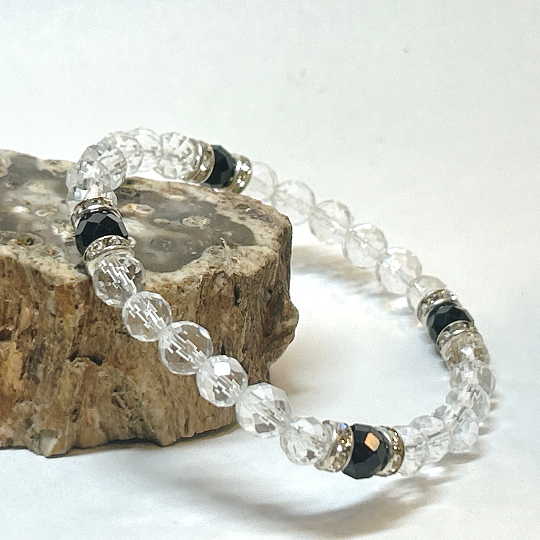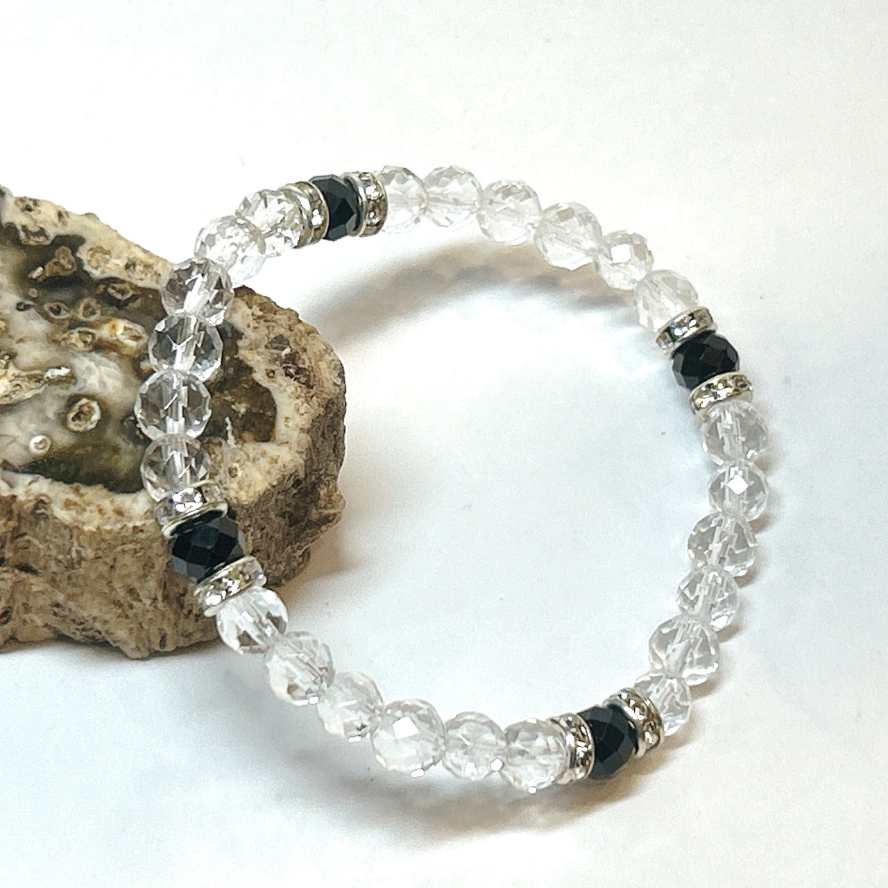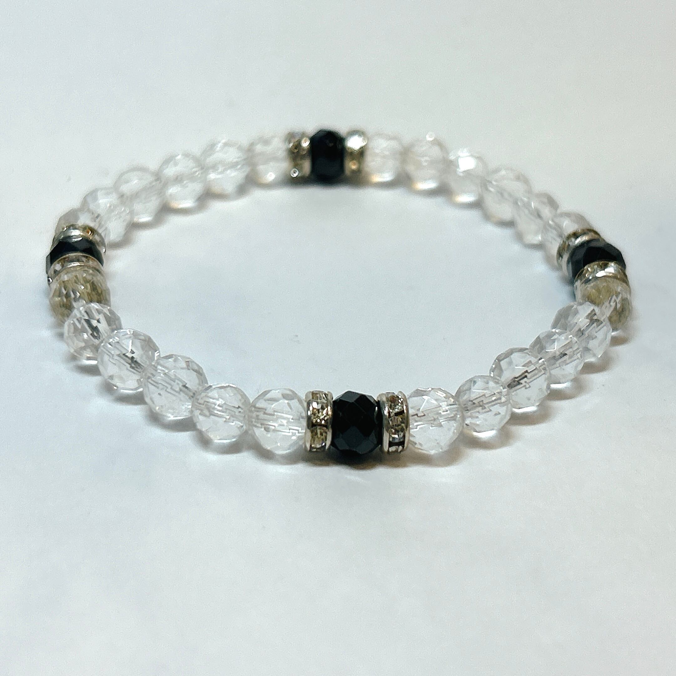 【E18125】ブラックスピネル 8月誕生石 水晶 ブレスレット 天然石 オリジナルブレスレット