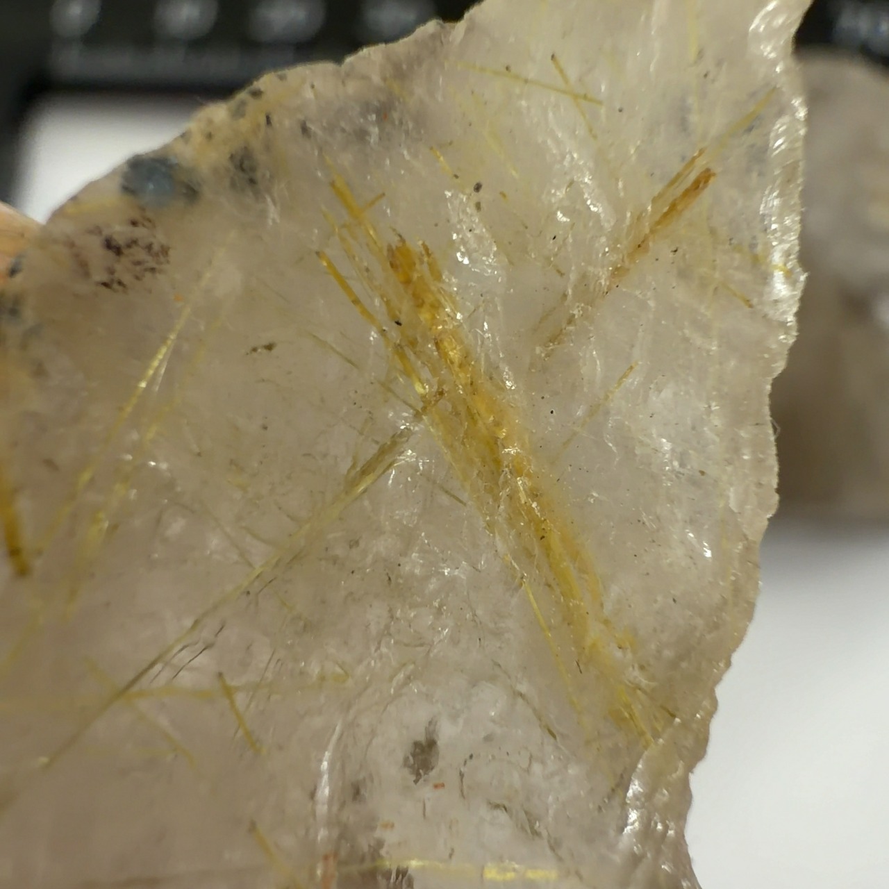 金色ノルチルが入った水晶。キンセンが入るという縁起物。