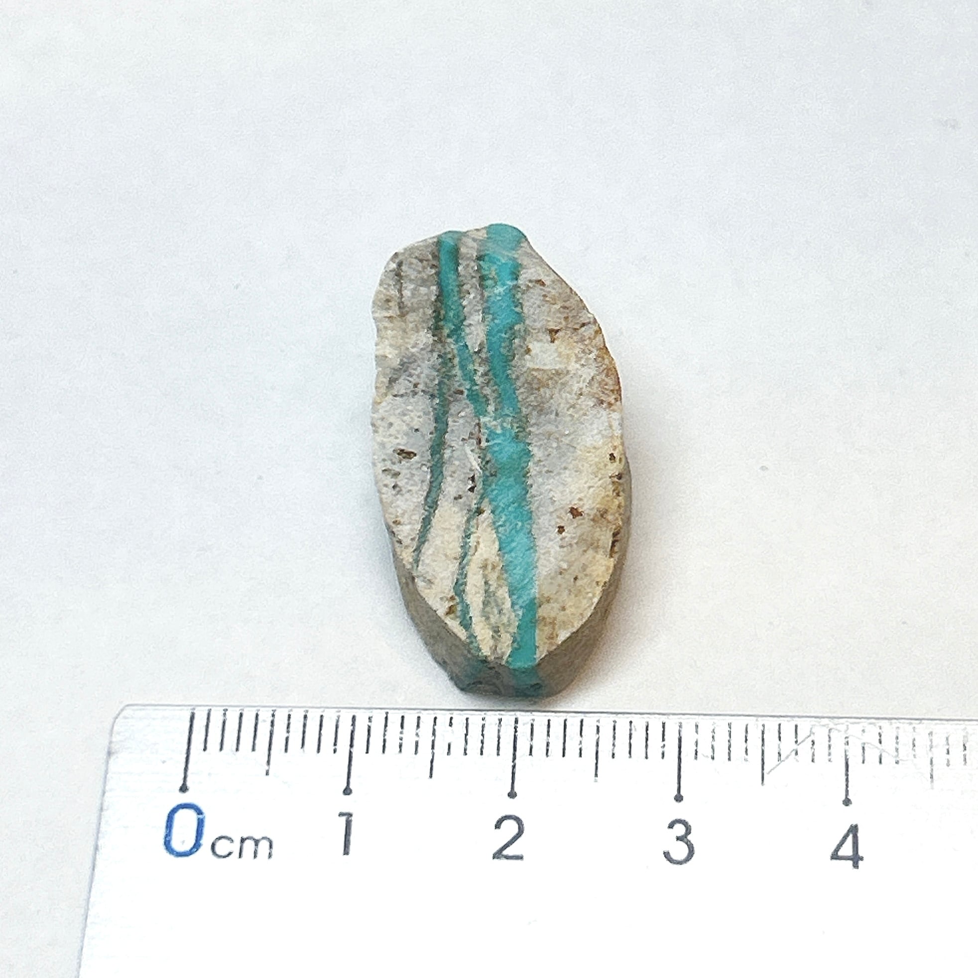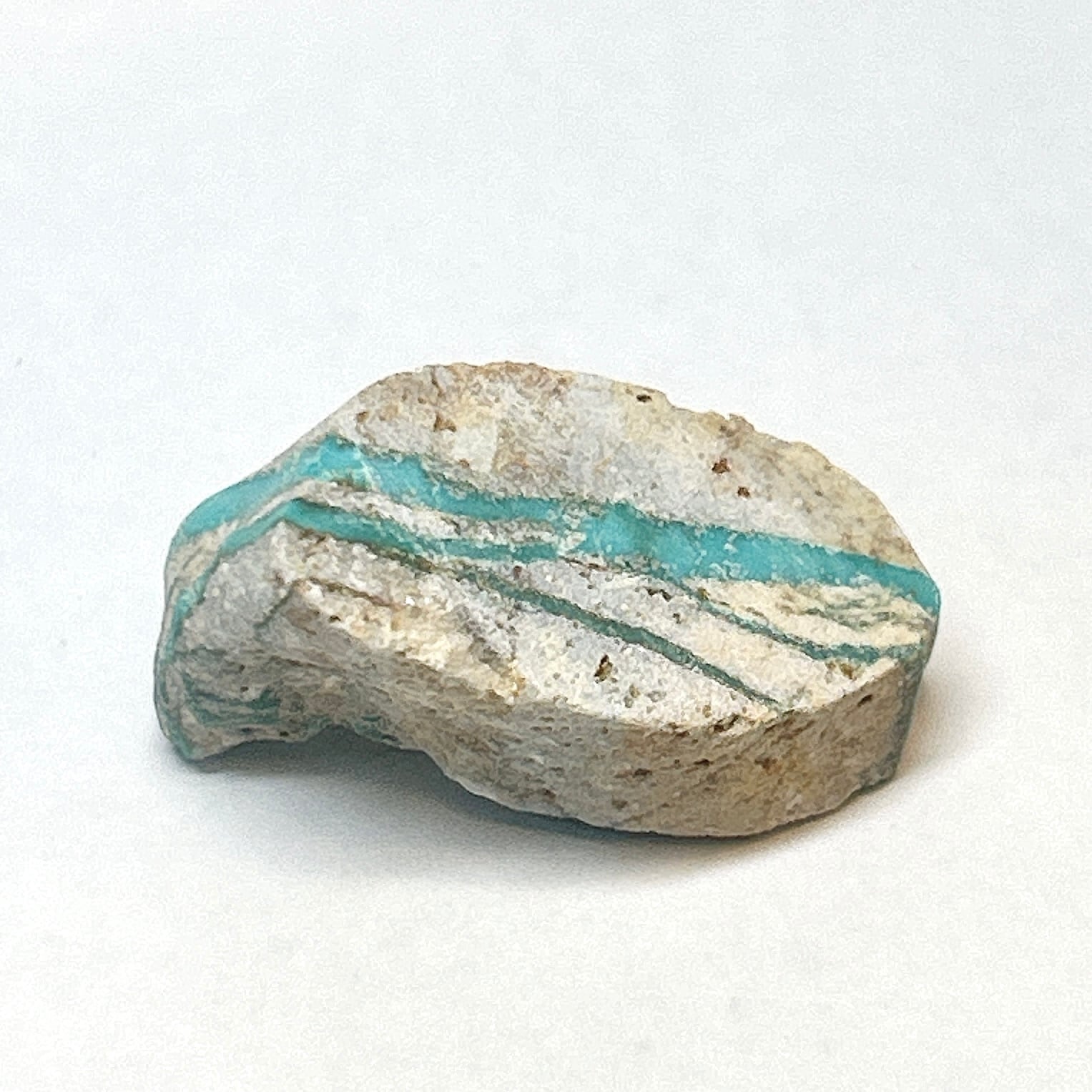 コーカサス山脈から産出する美しいトルコ石。肌色の母岩に細い層になっているものが多いが母岩ごと磨いているものが多い。
