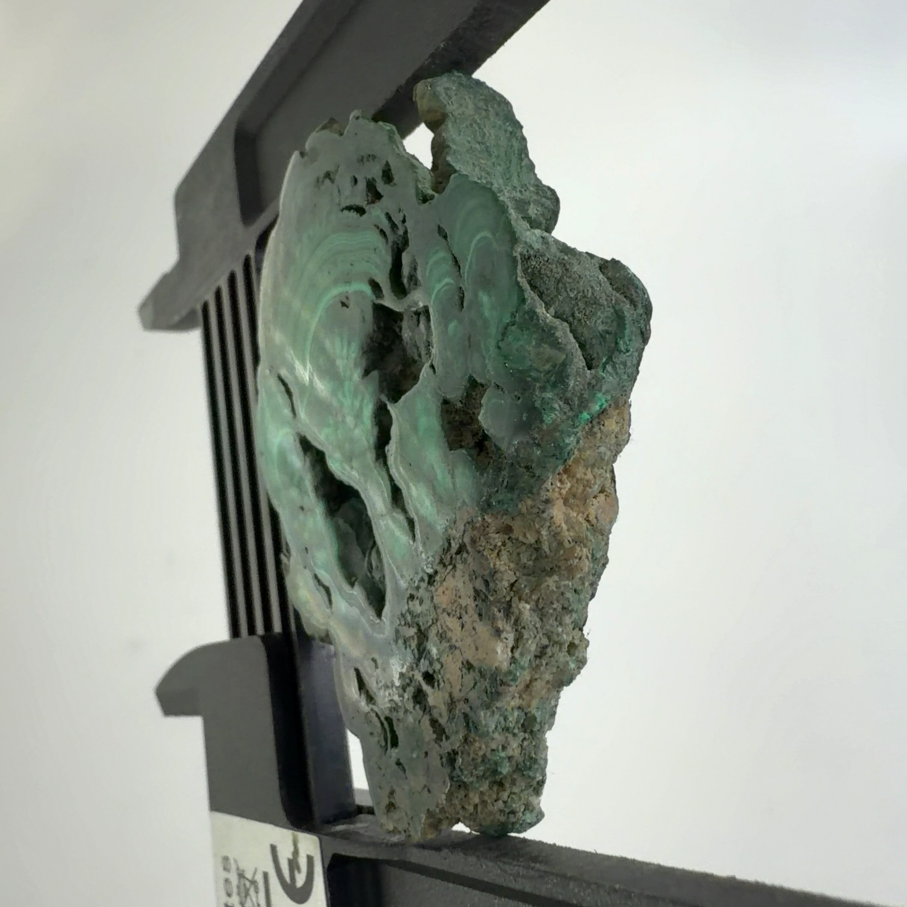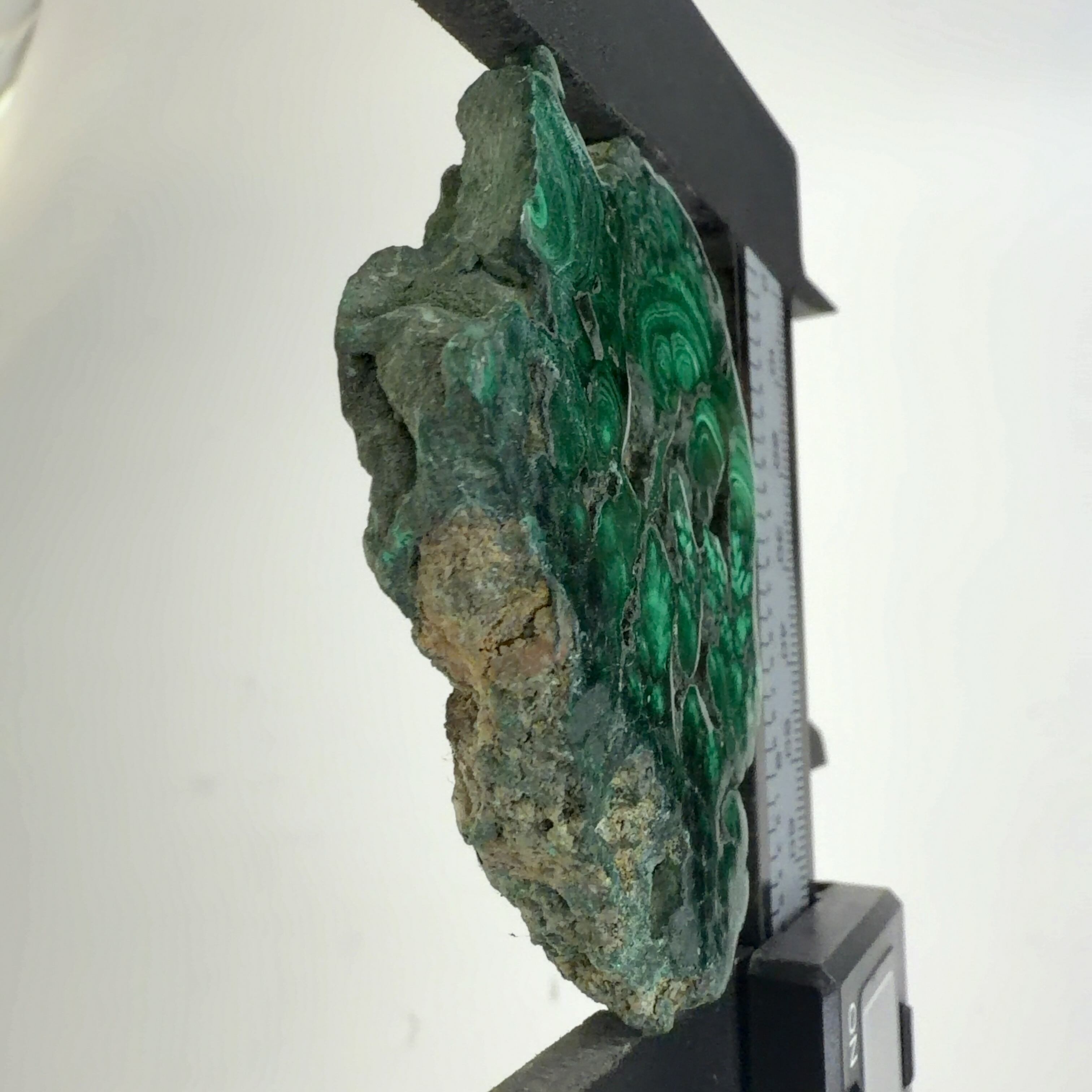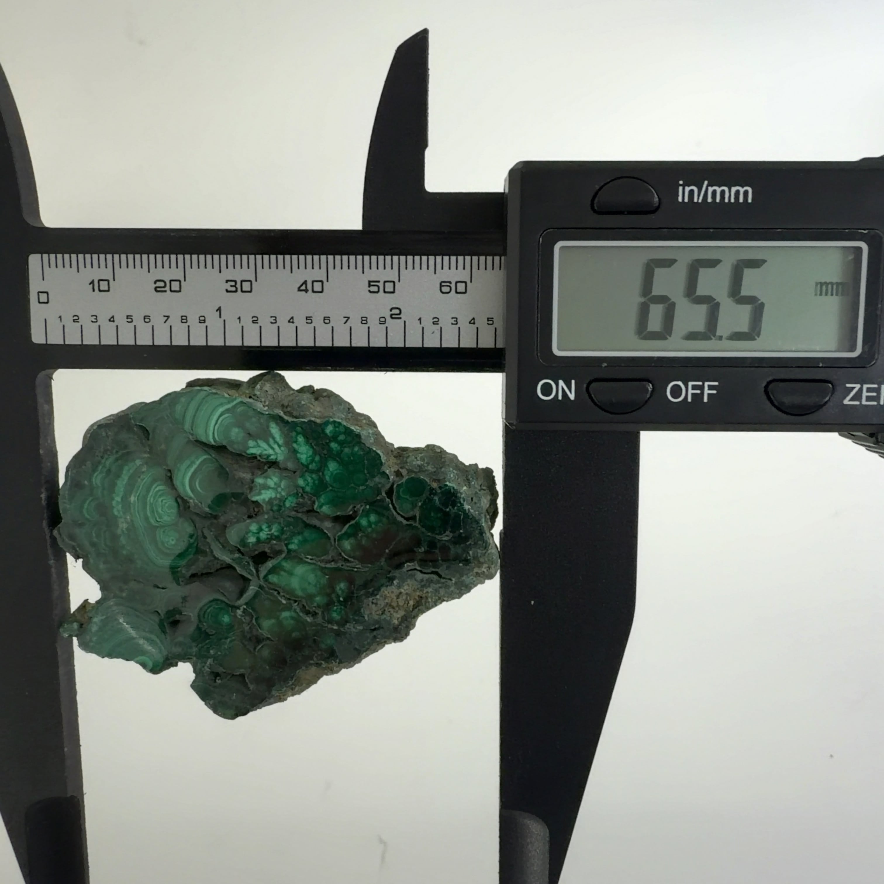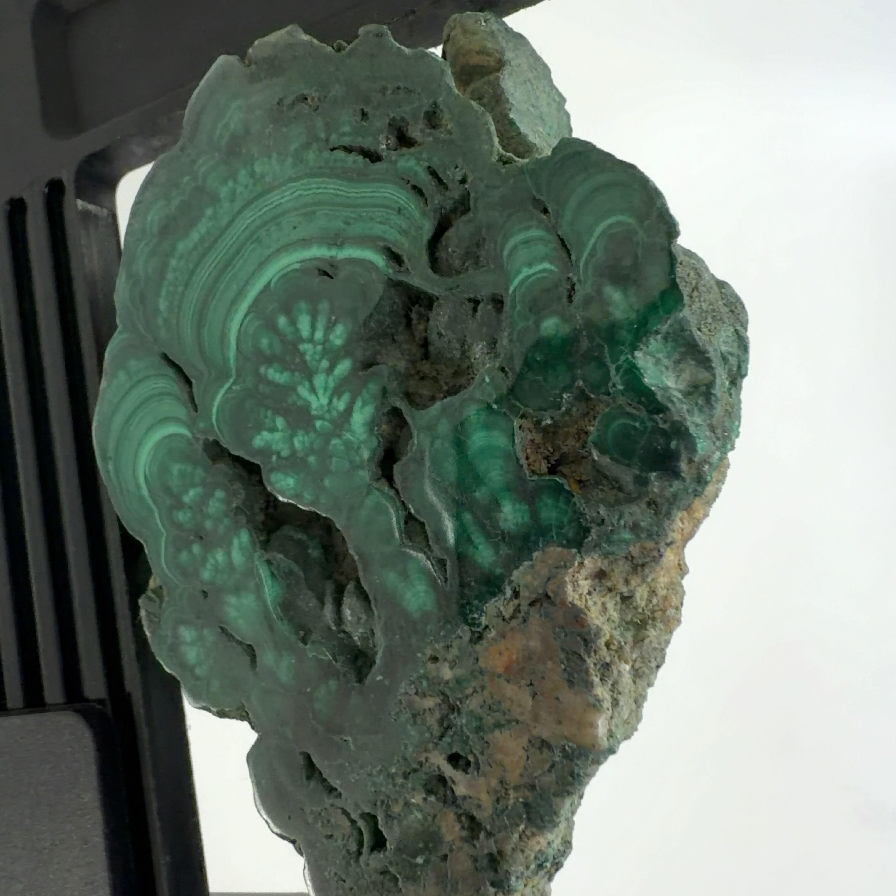 水に溶けた黄銅鉱と水に溶けた二酸化炭素が反応してできる鉱物で、斜めから光を反射させると孔雀の羽のように見えるので和名は孔雀石と名付けられています。