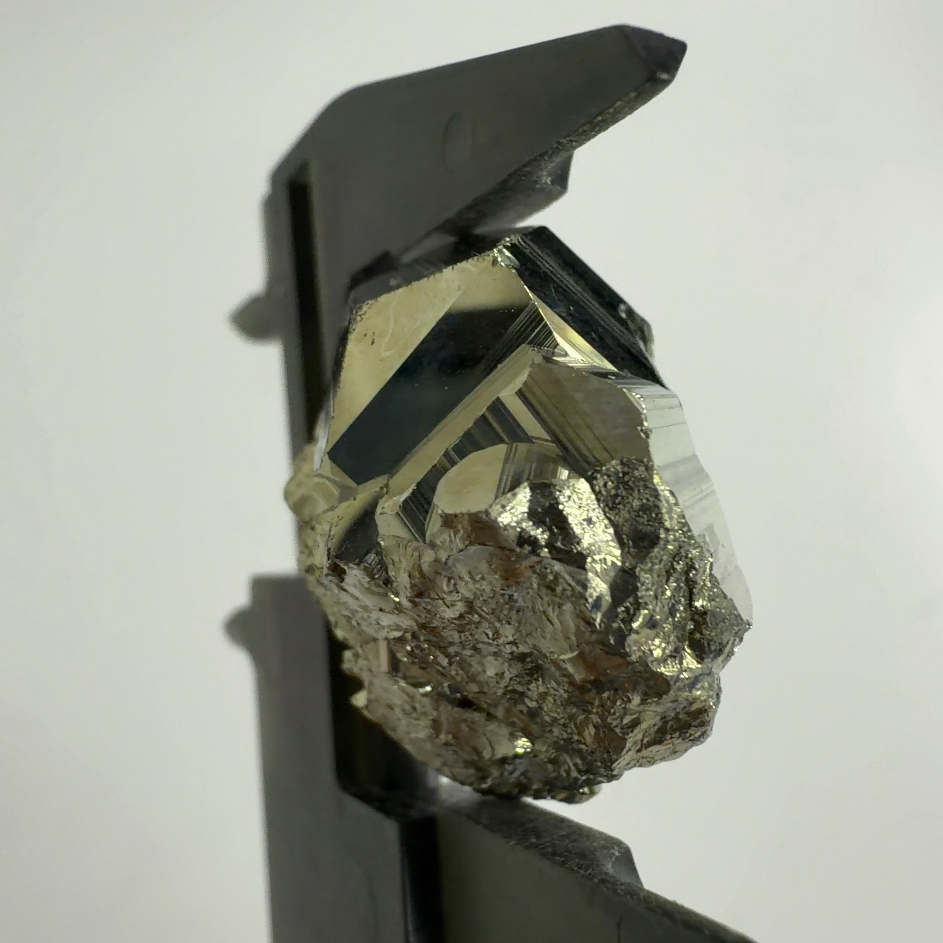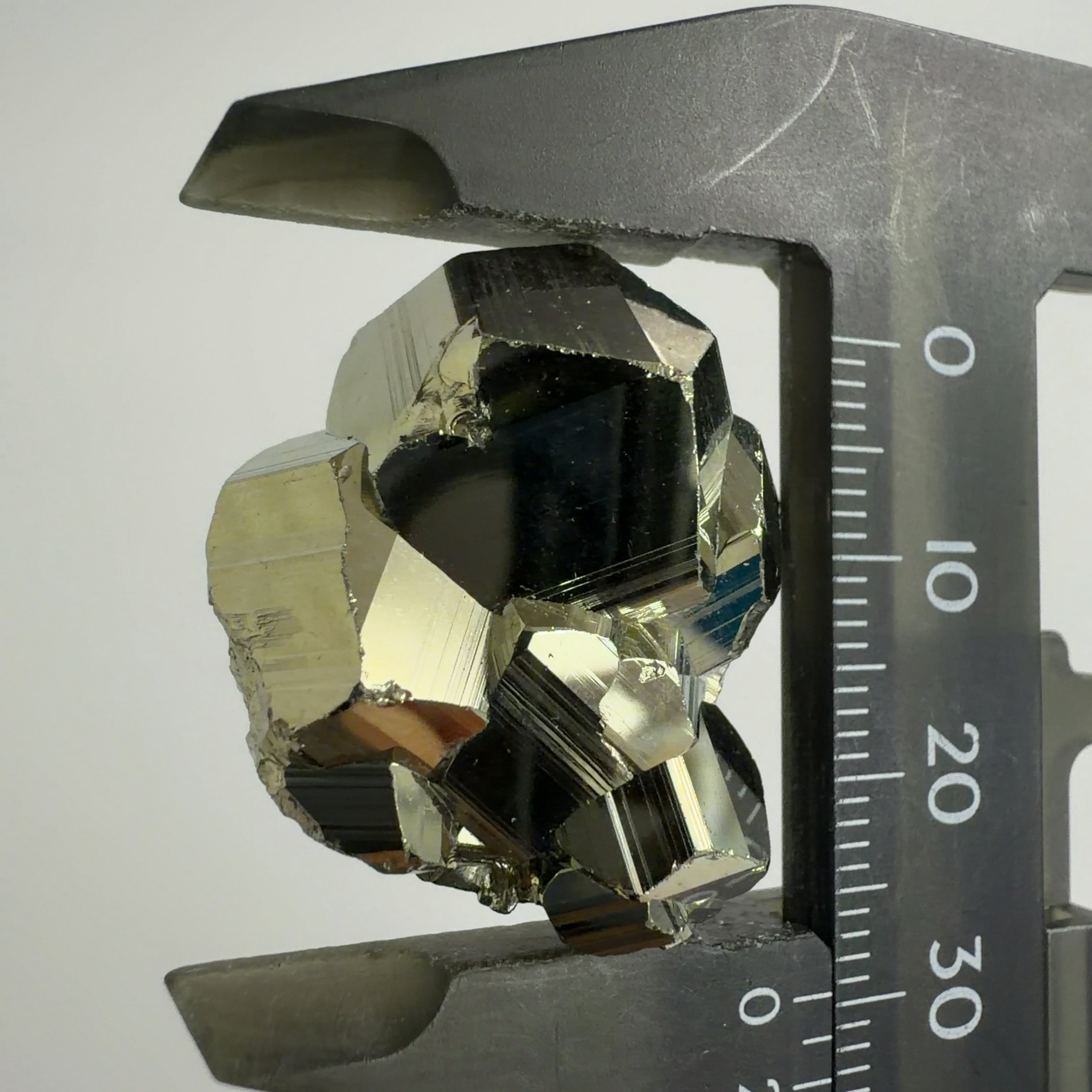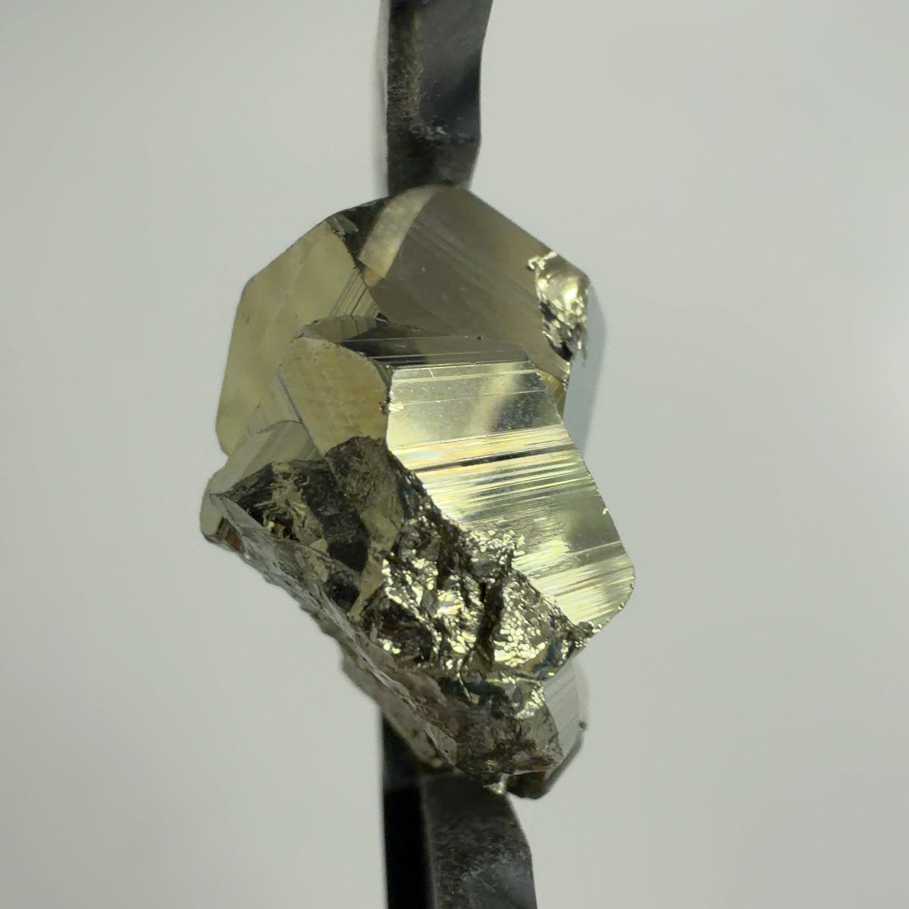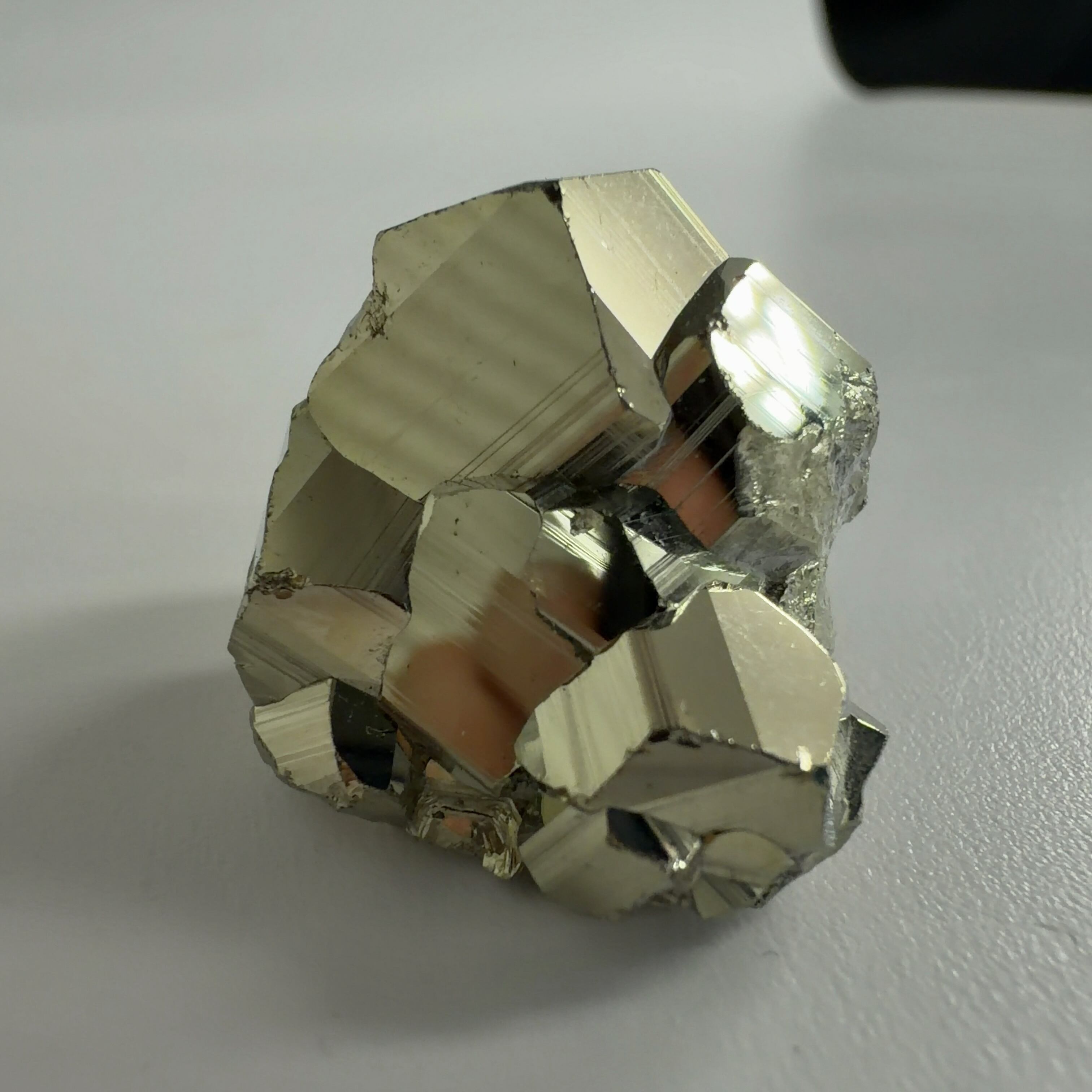 硫黄と鉄の化合物。黄金色の美しい光沢および、立方体、五画十二面体、八面体、二十四面体、又はそれらが合わさった形など様々な結晶をするので標本として人気があります。