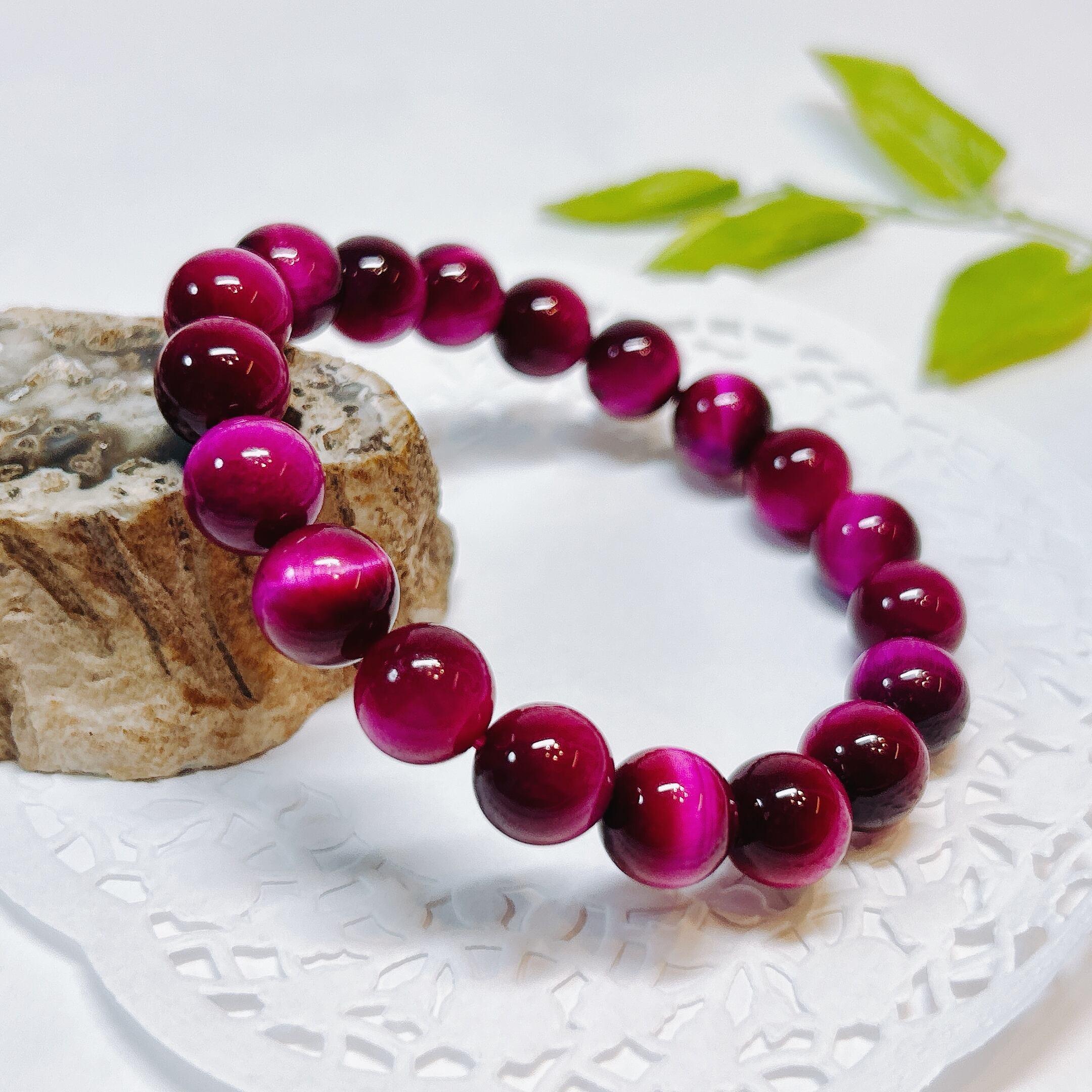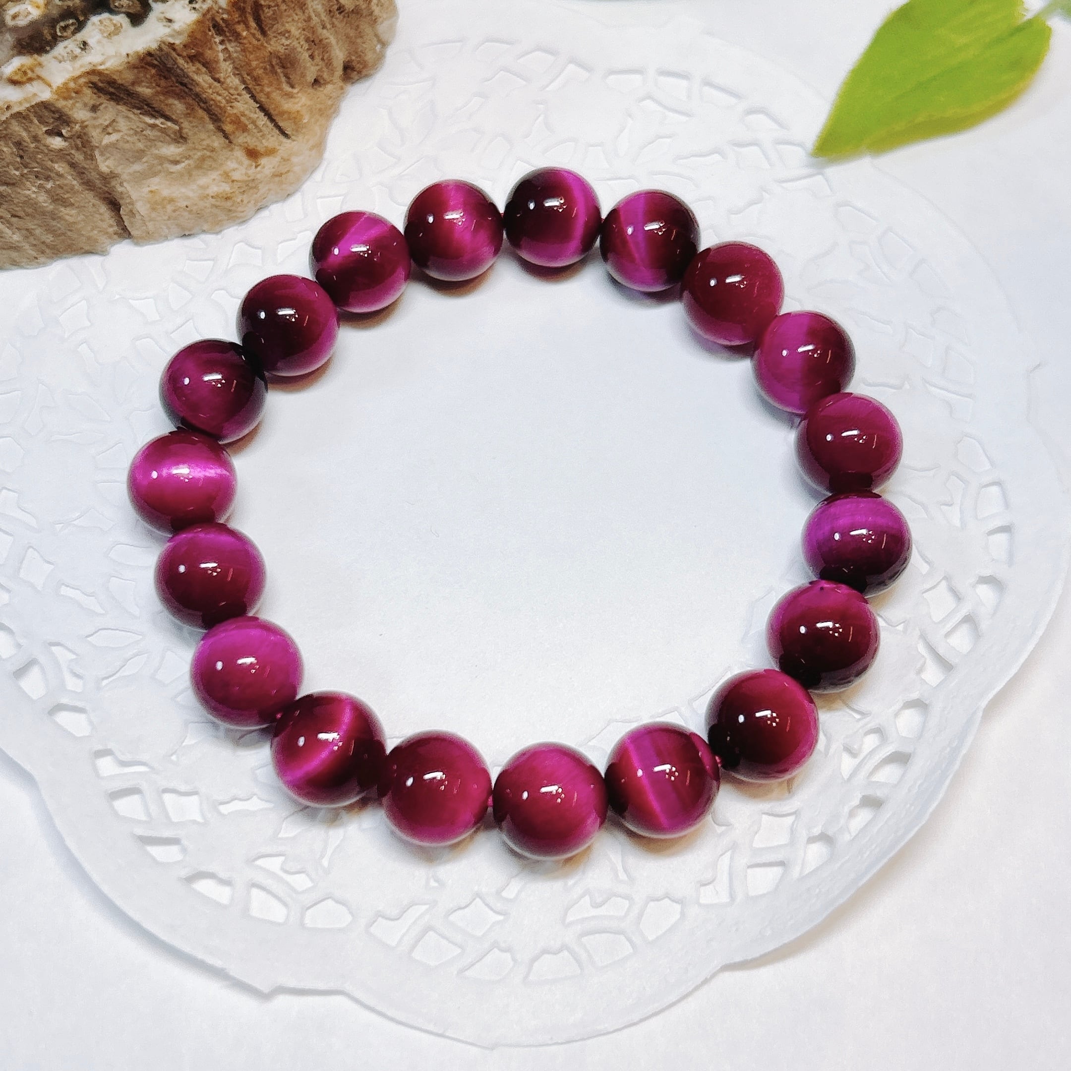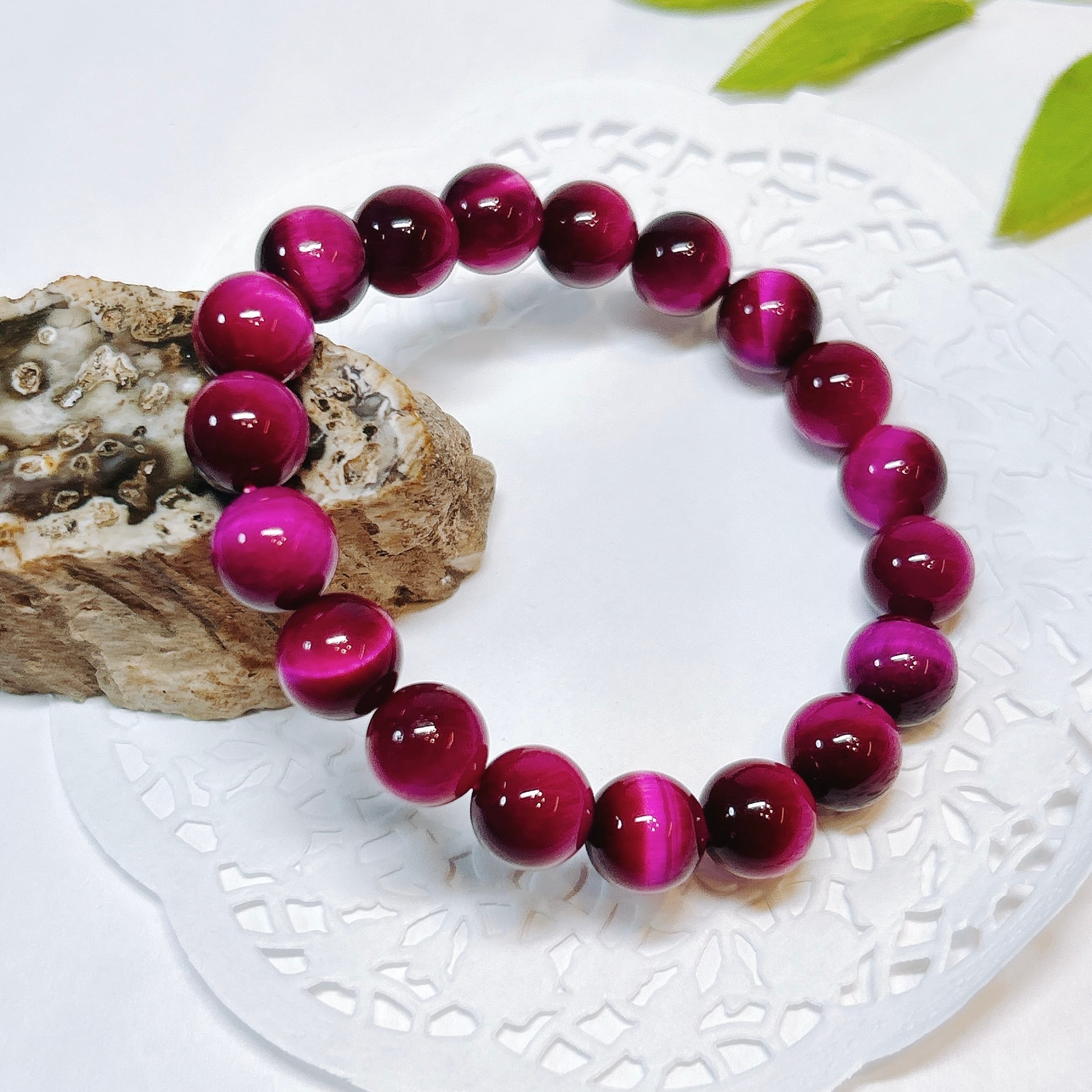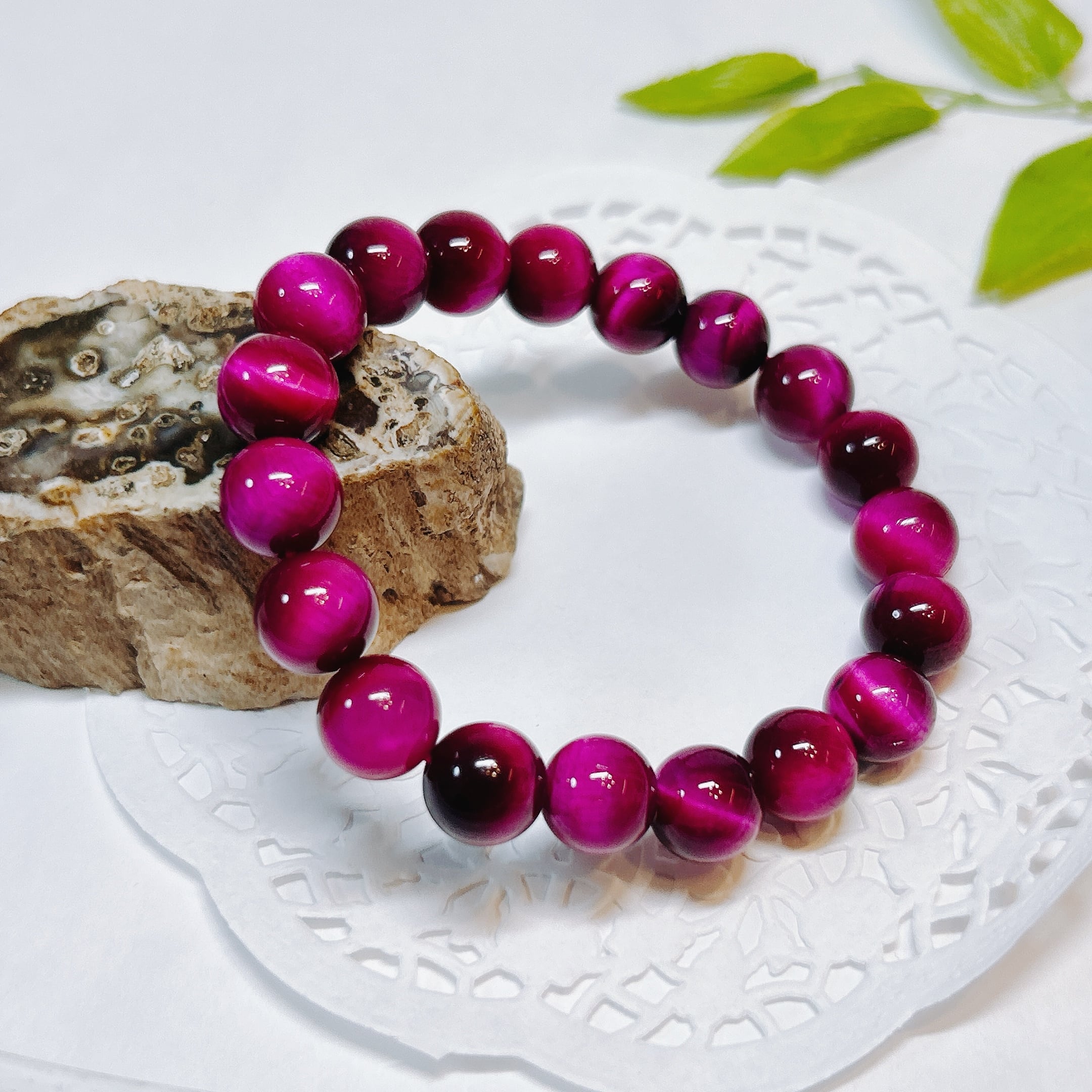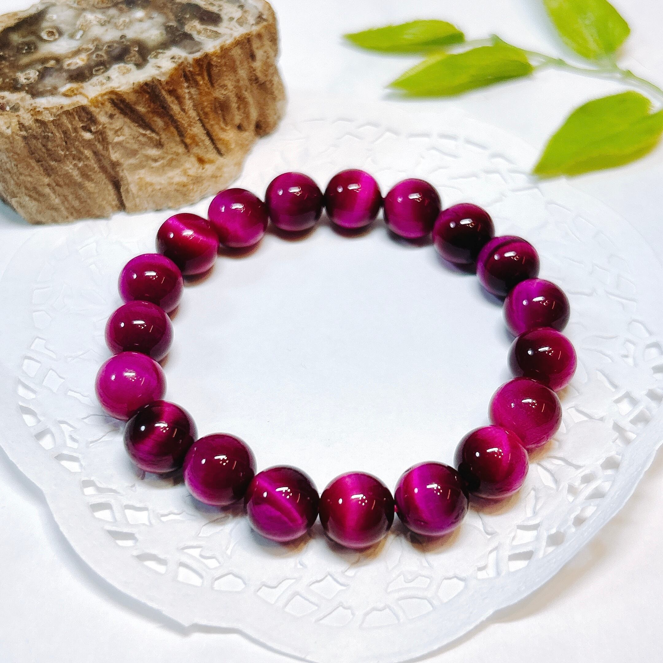 鮮やかなピンクが華やかなピンクタイガーアイブレスレット(着色)