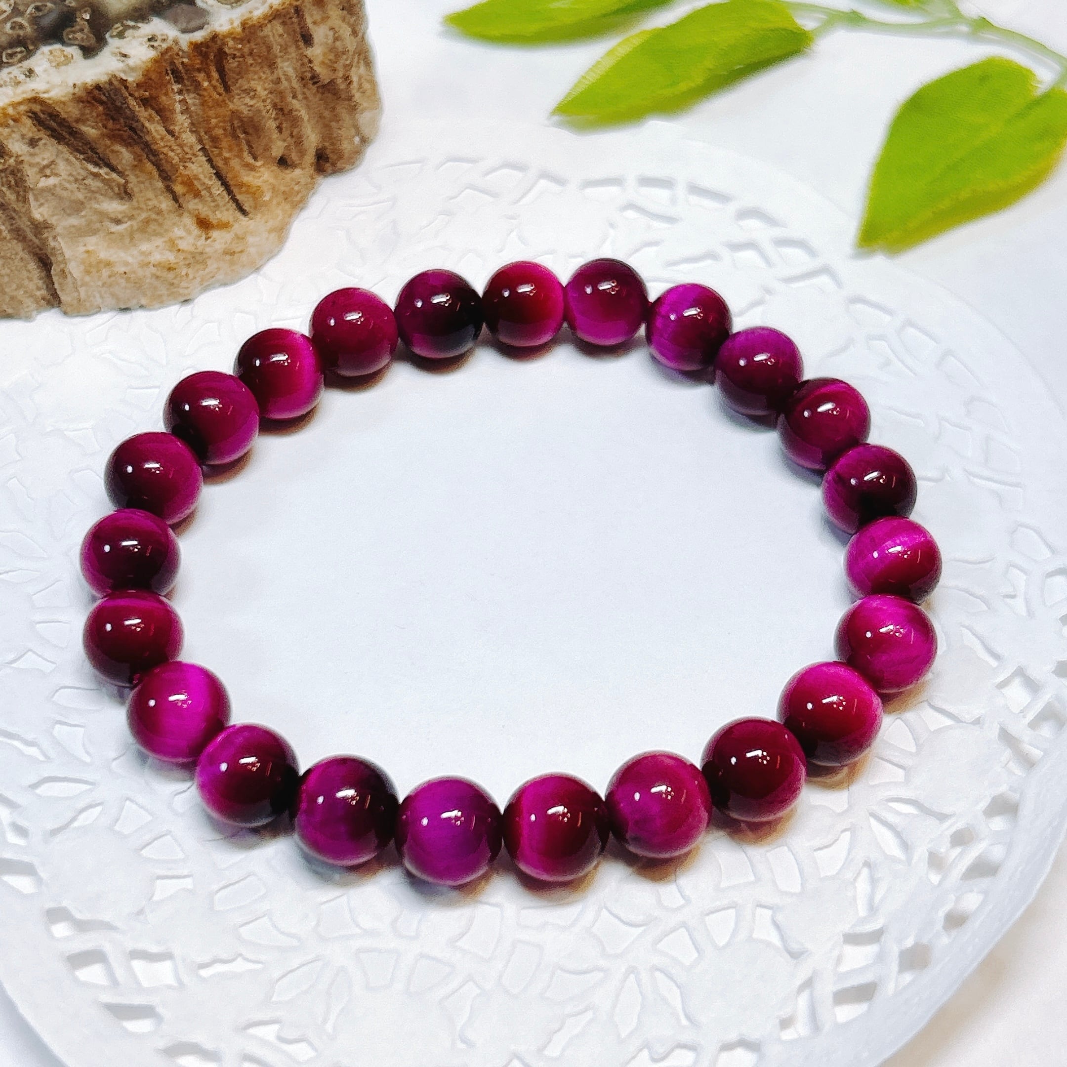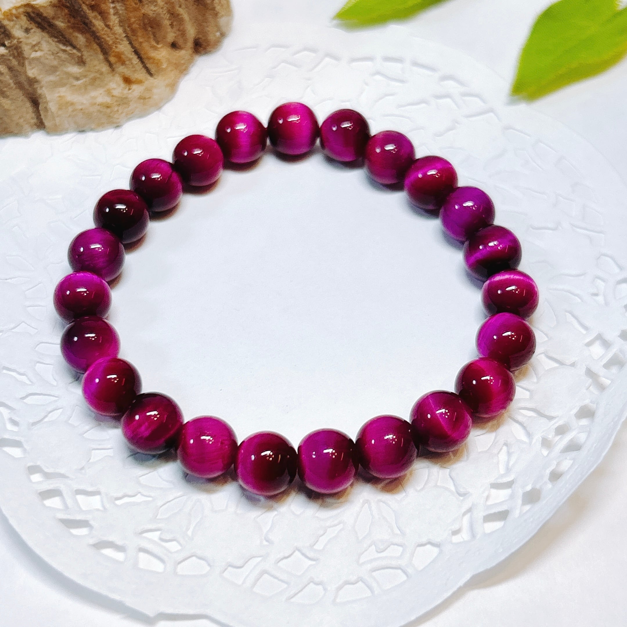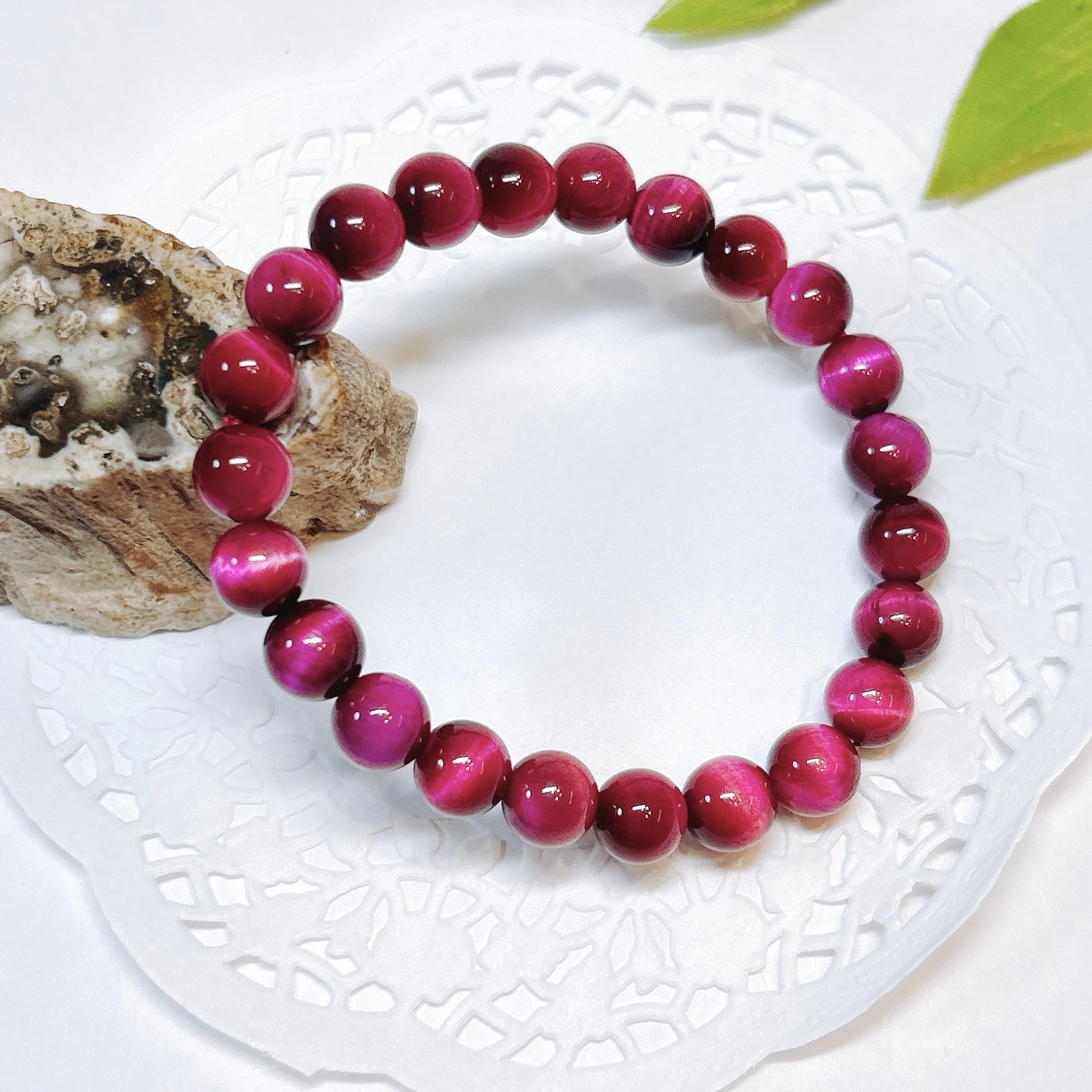 鮮やかなピンクが華やかなピンクタイガーアイブレスレット(着色)