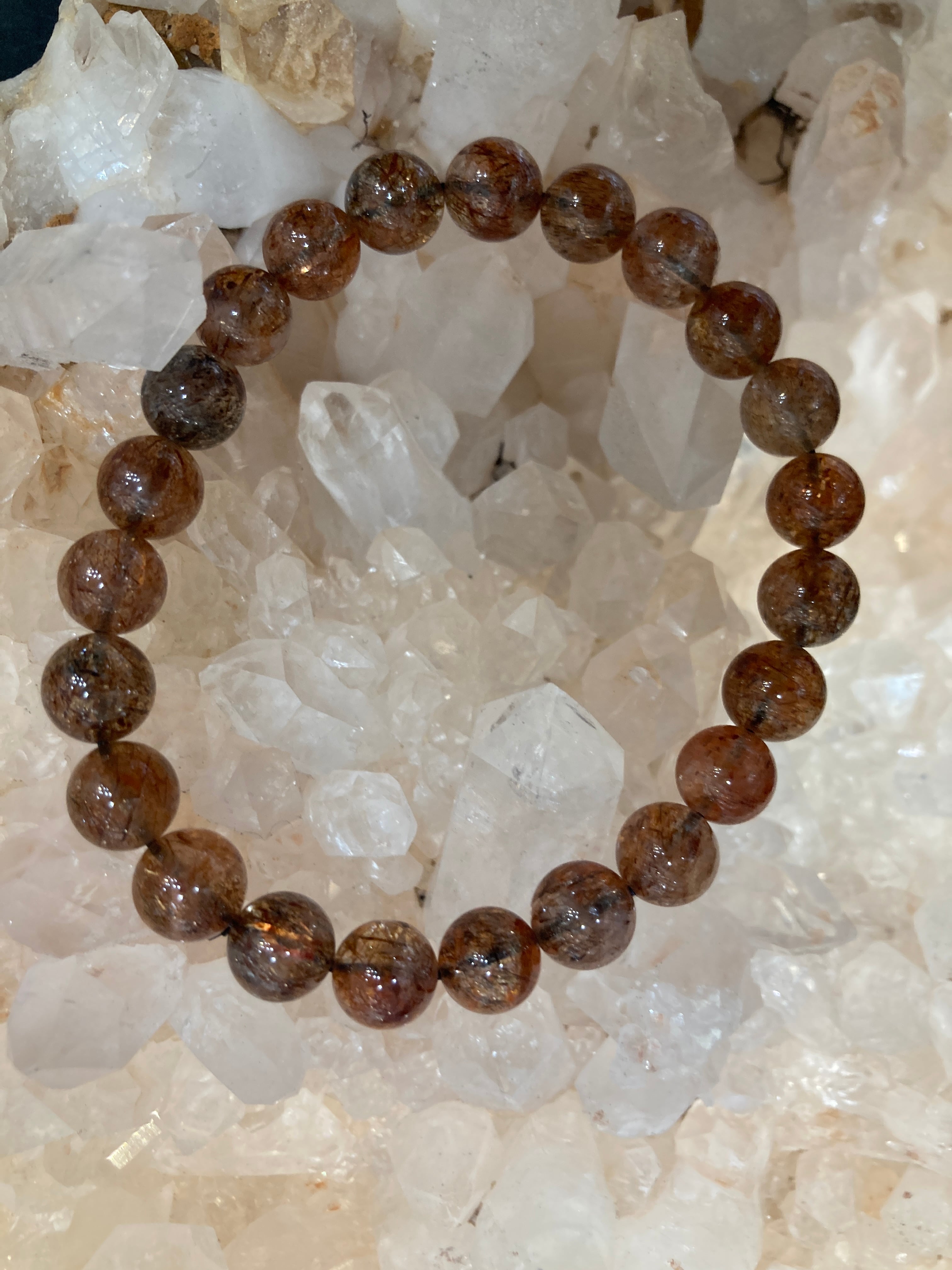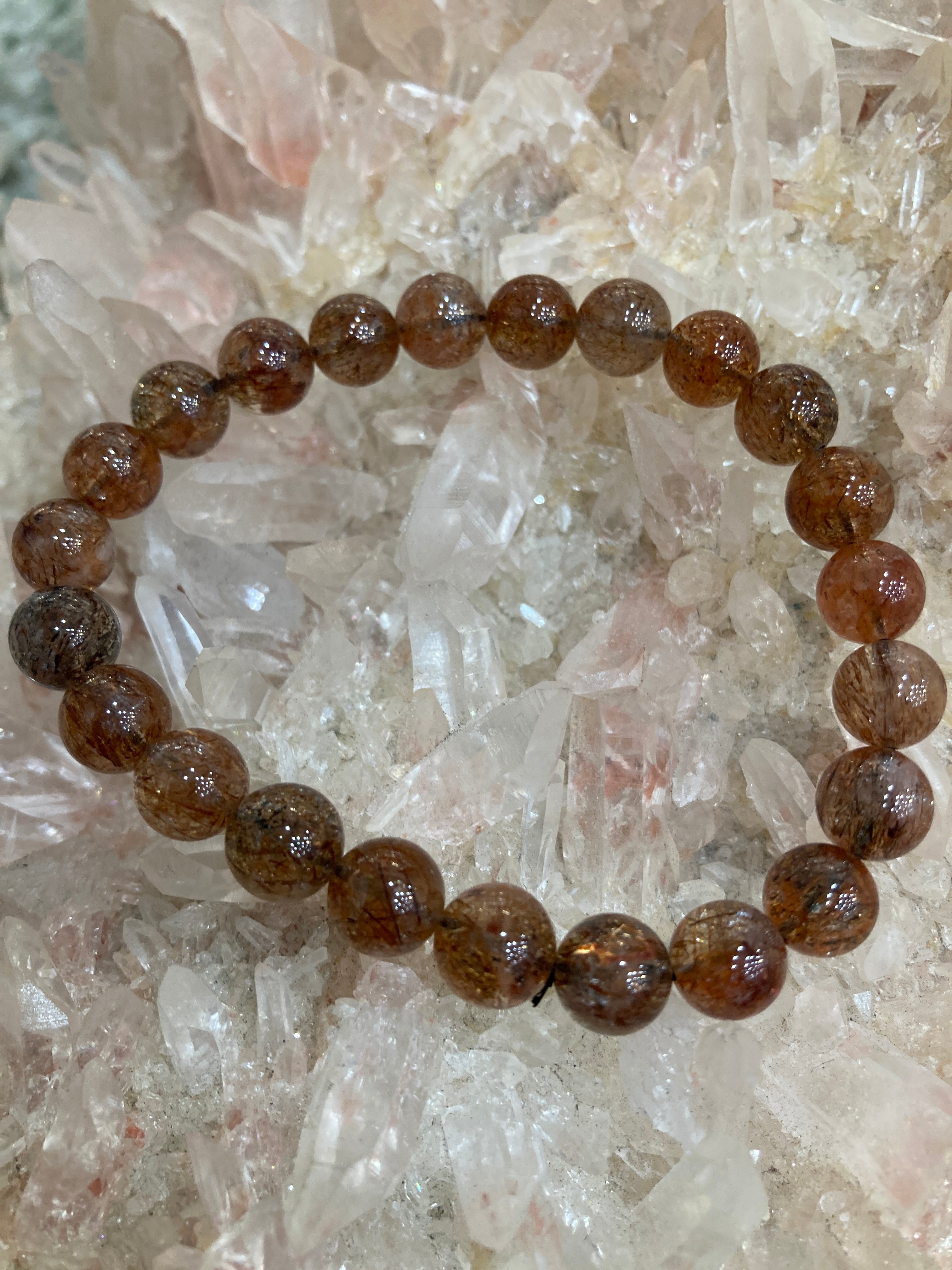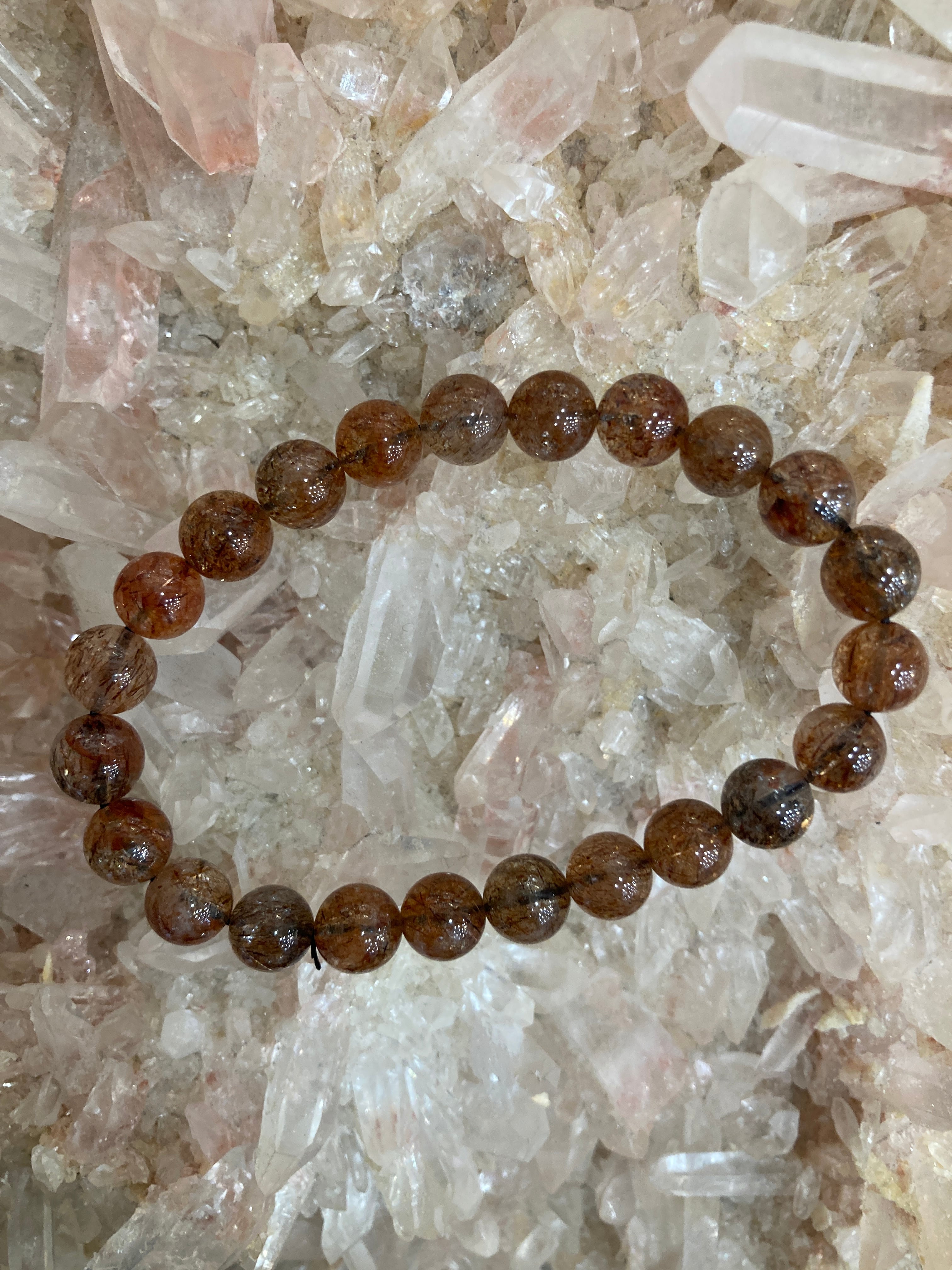 【E32609】 フォリエーテッドマイカinクォーツ 8.5mm ブレスレット フォリエーテッド マイカ イン クォーツ 天然石 パワーストーン アクセサリー