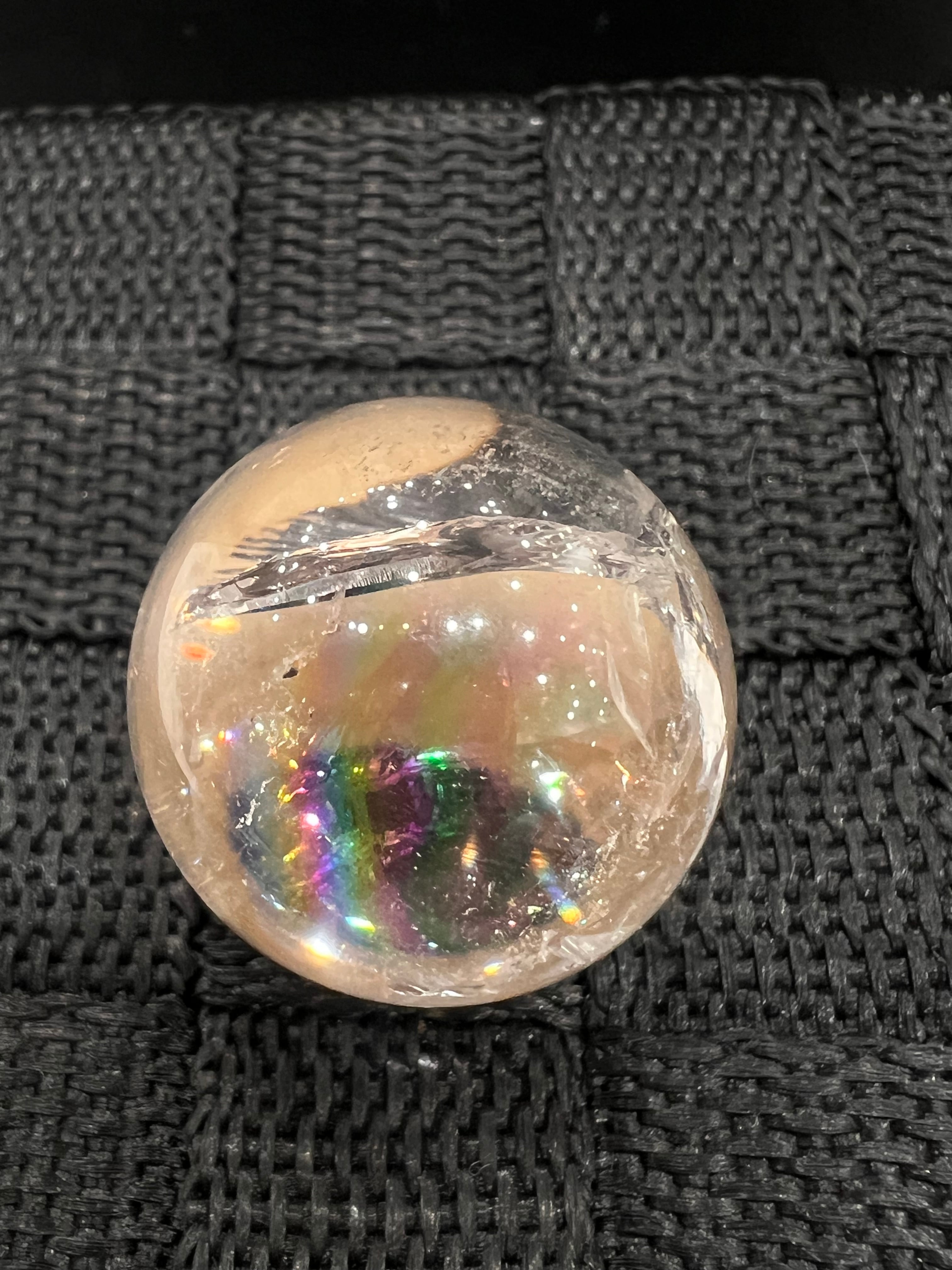 【E28061】 ✲虹入り約27mm ✲アイリス ✲天然水晶球 ✲スフィア ✲球 ✲水晶 ✲クォーツ ✲天然石 ✲パワーストーン