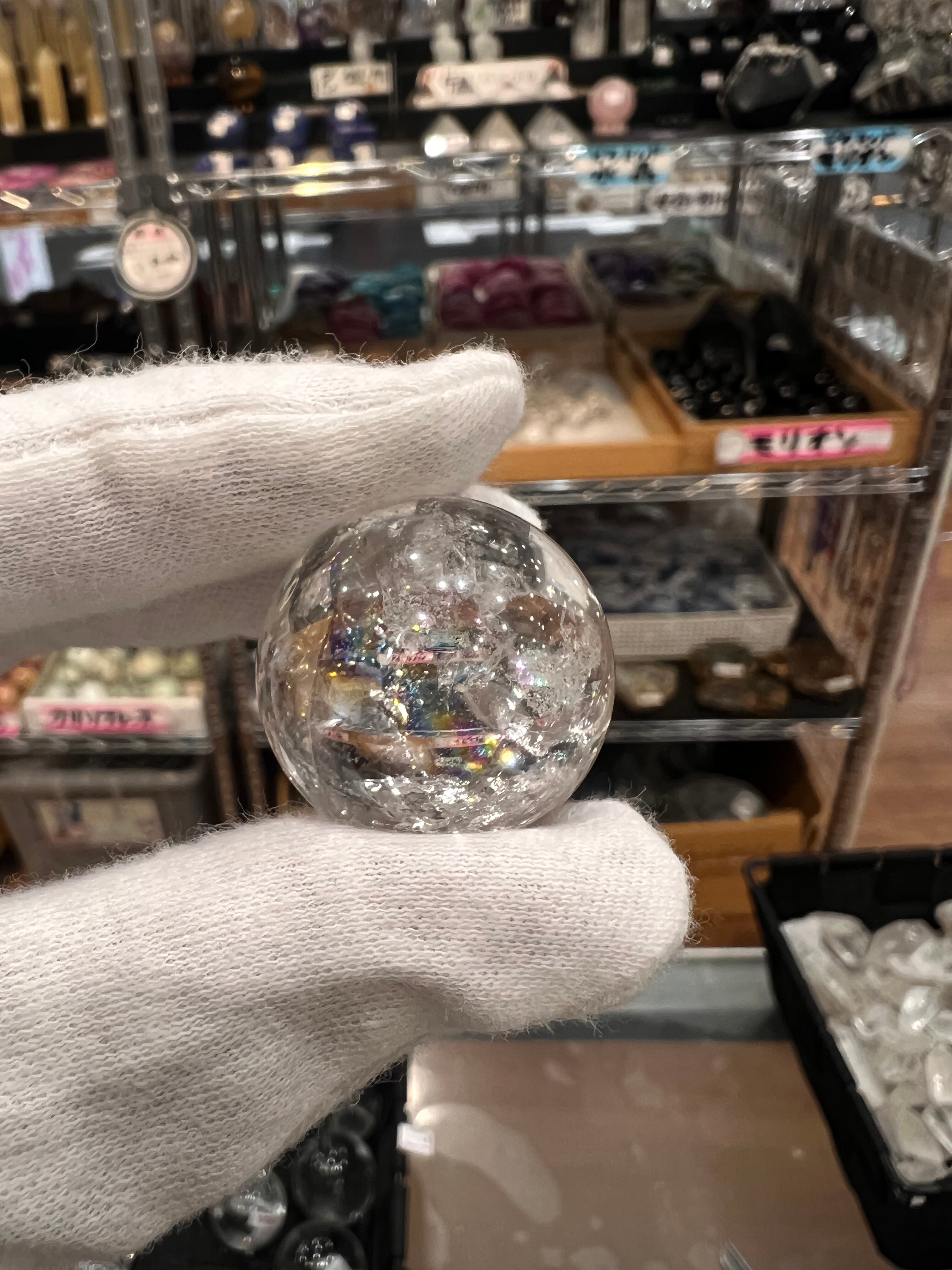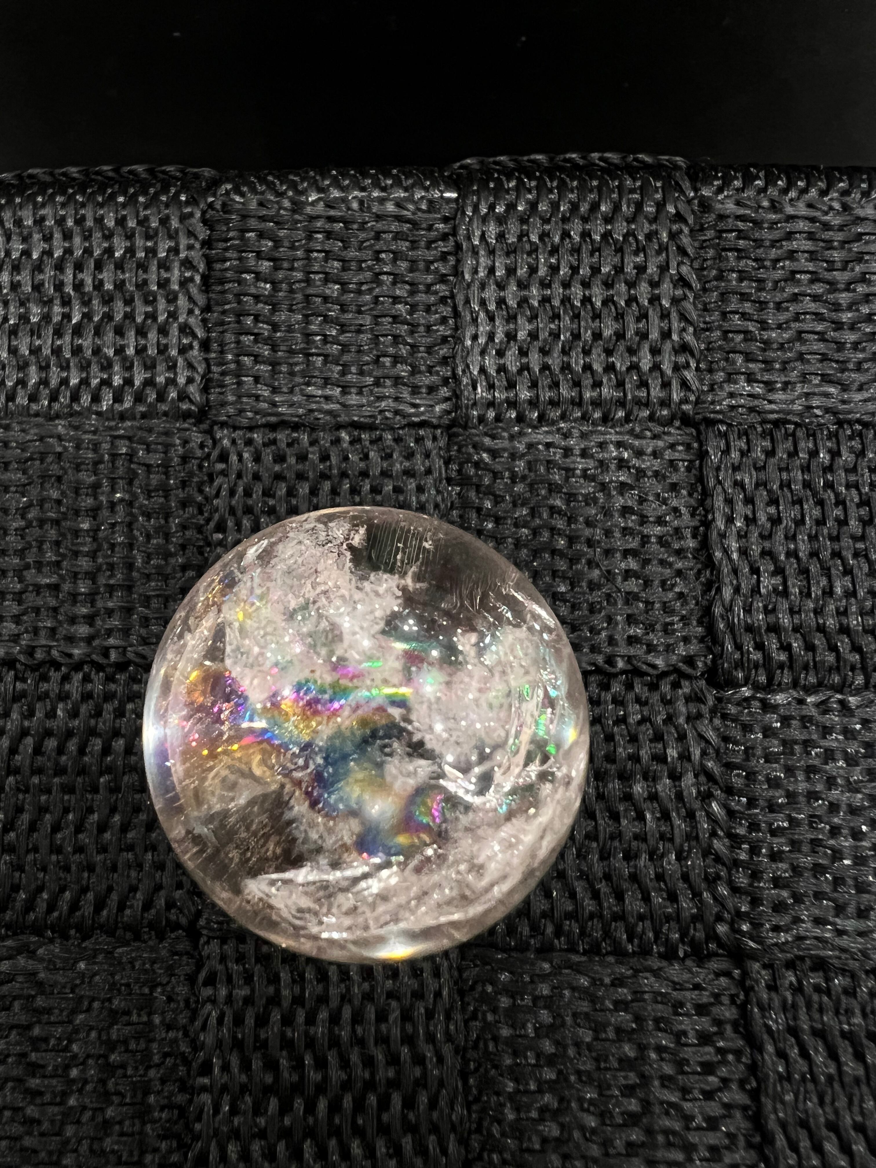 【E28065】 ✲虹入り約27mm ✲アイリス ✲天然水晶球 ✲スフィア ✲球 ✲水晶 ✲クォーツ ✲天然石 ✲パワーストーン