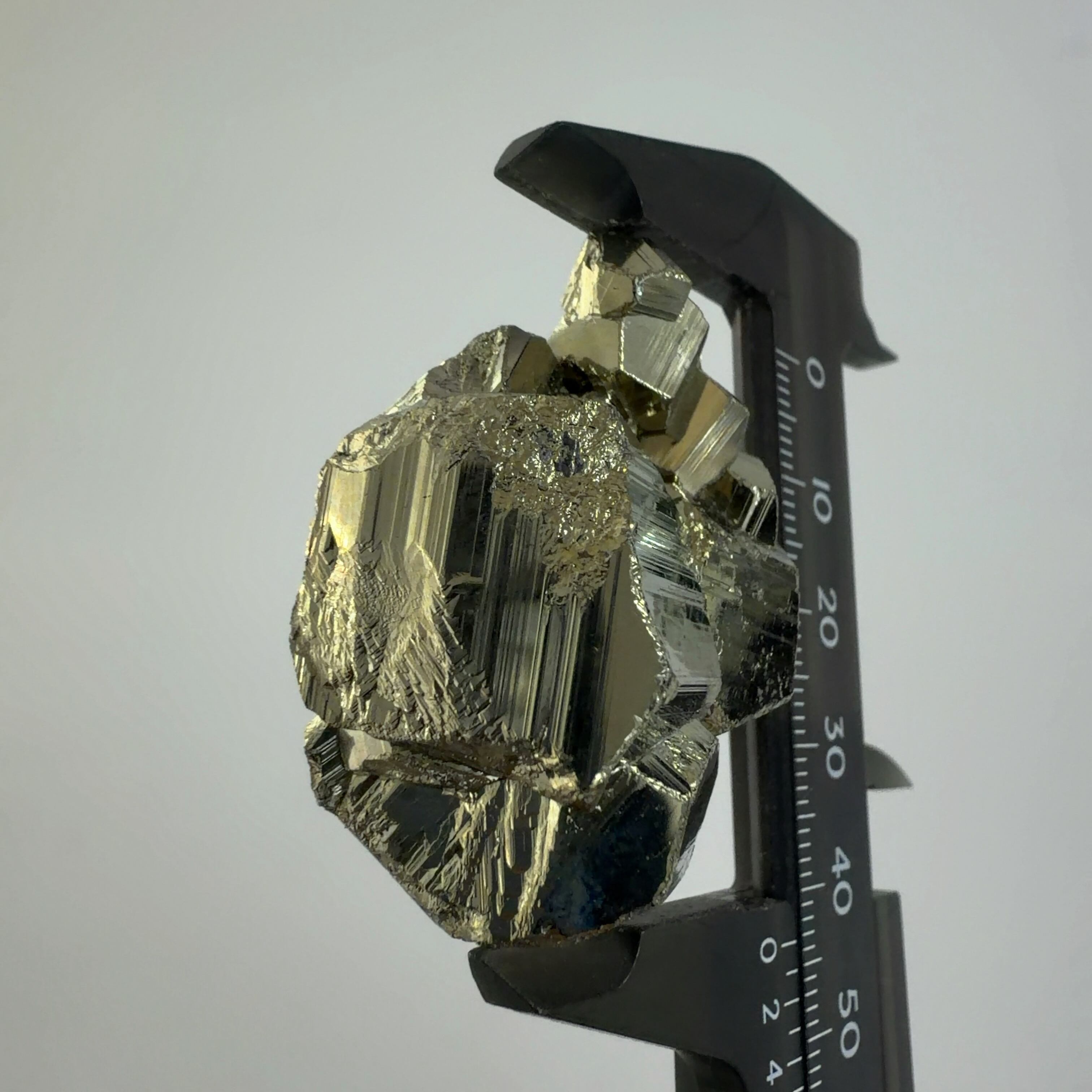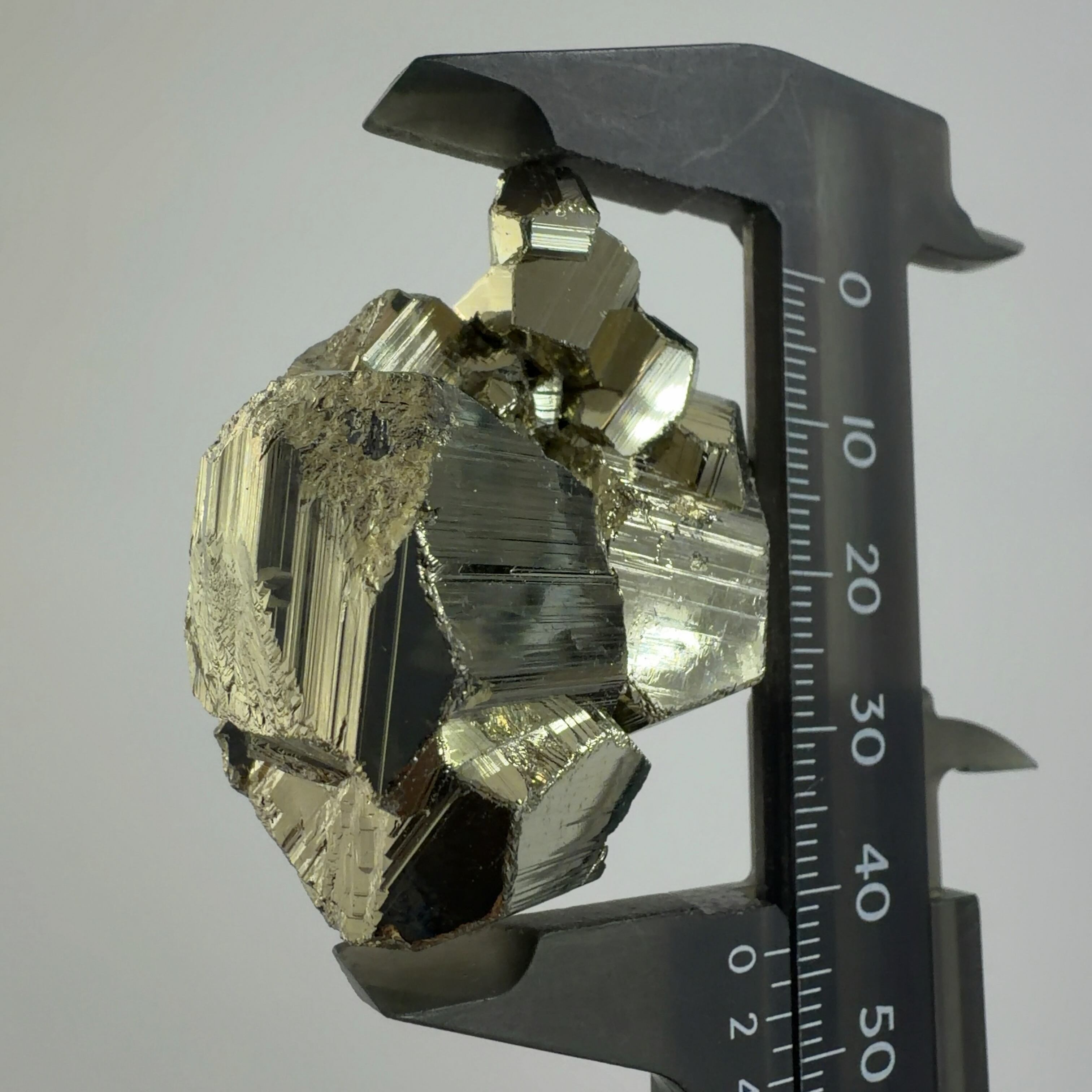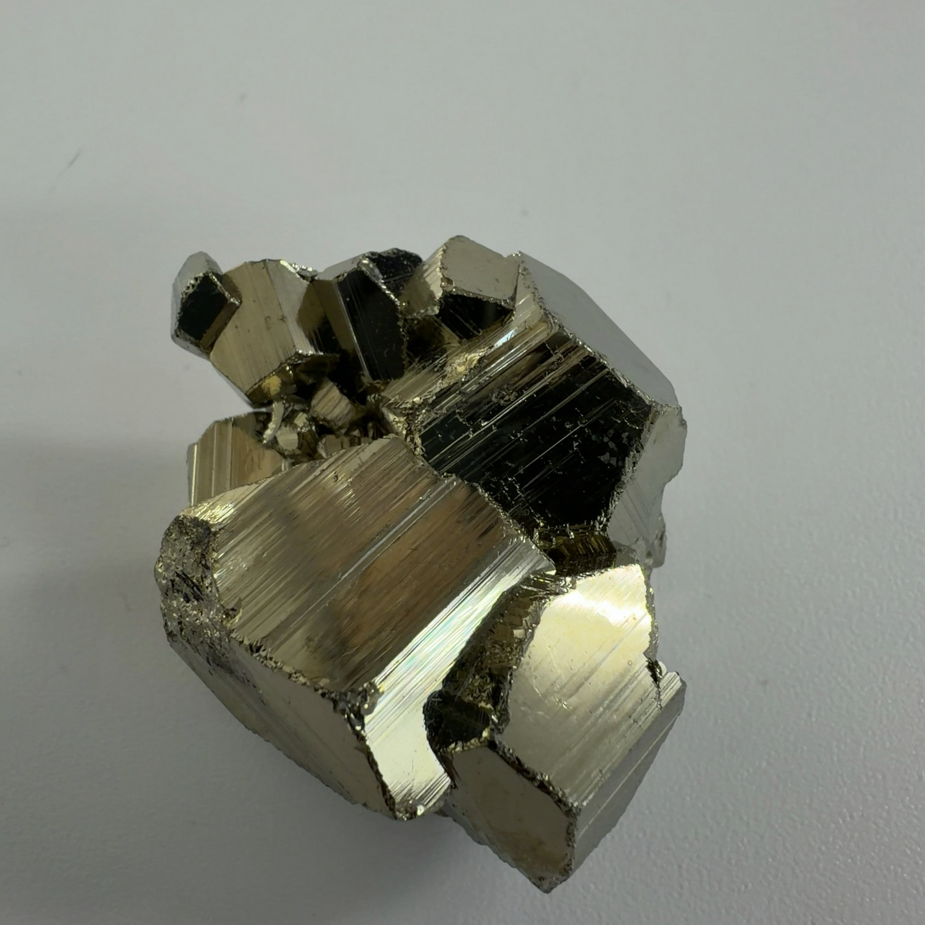硫黄と鉄の化合物。黄金色の美しい光沢および、立方体、五画十二面体、八面体、二十四面体、又はそれらが合わさった形など様々な結晶をするので標本として人気があります。