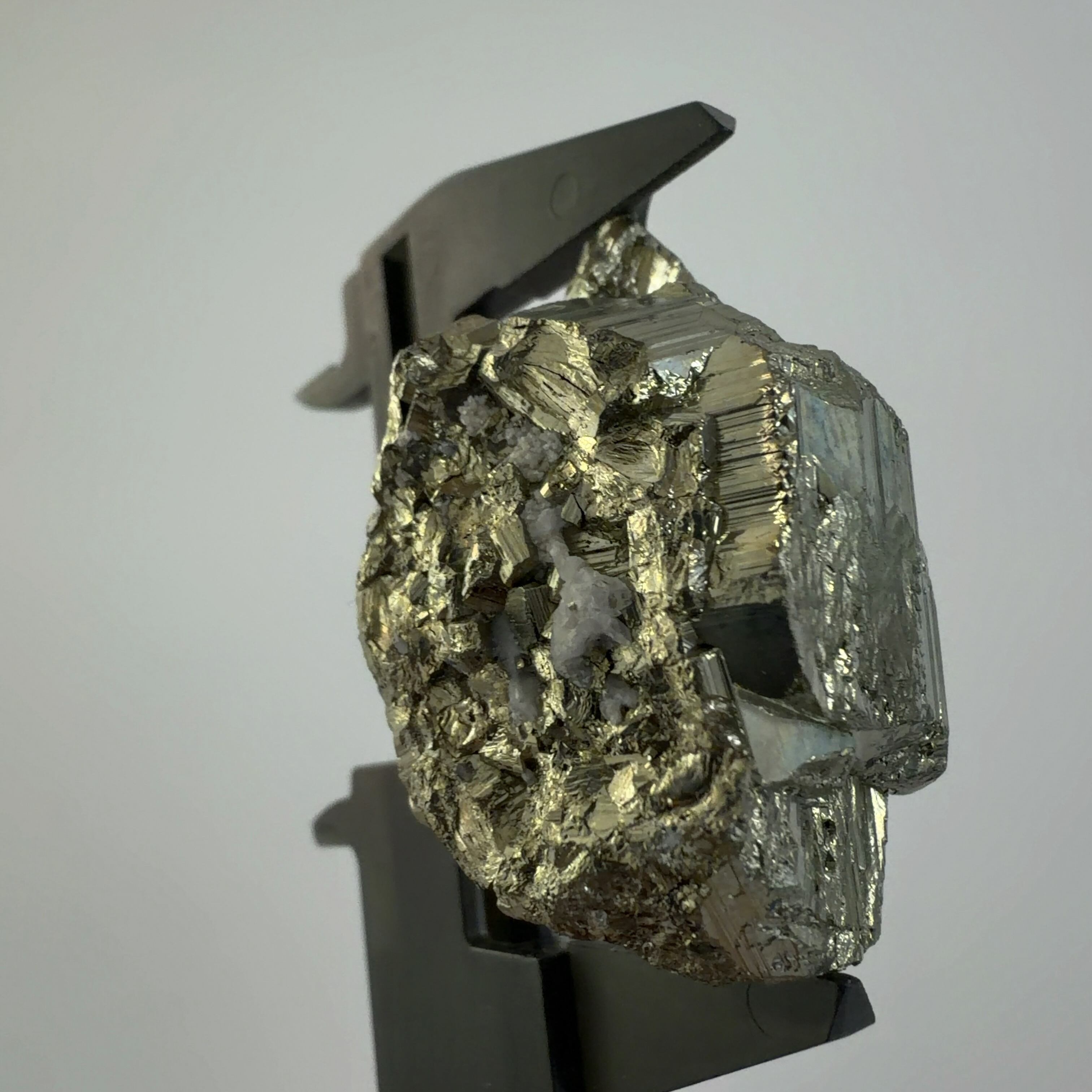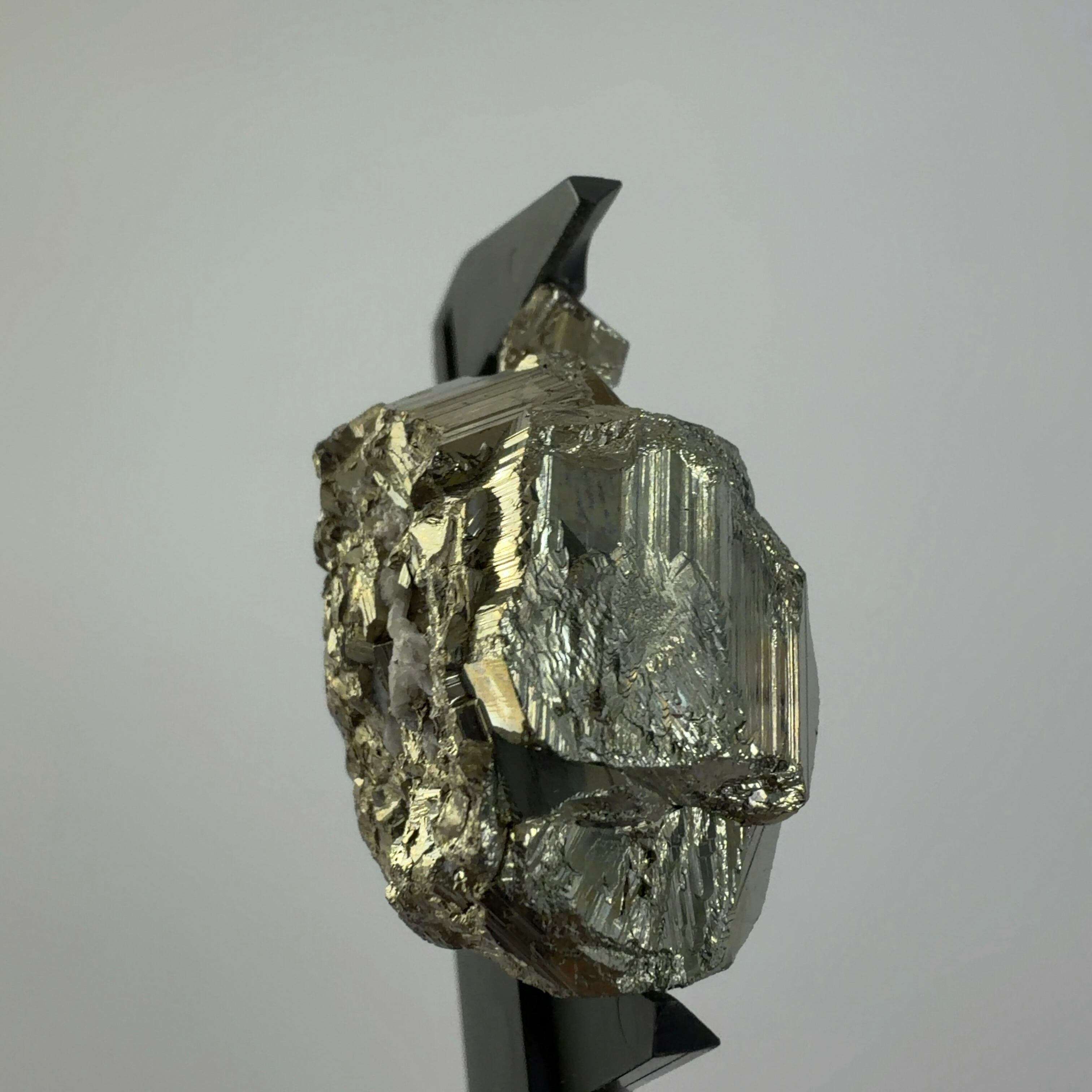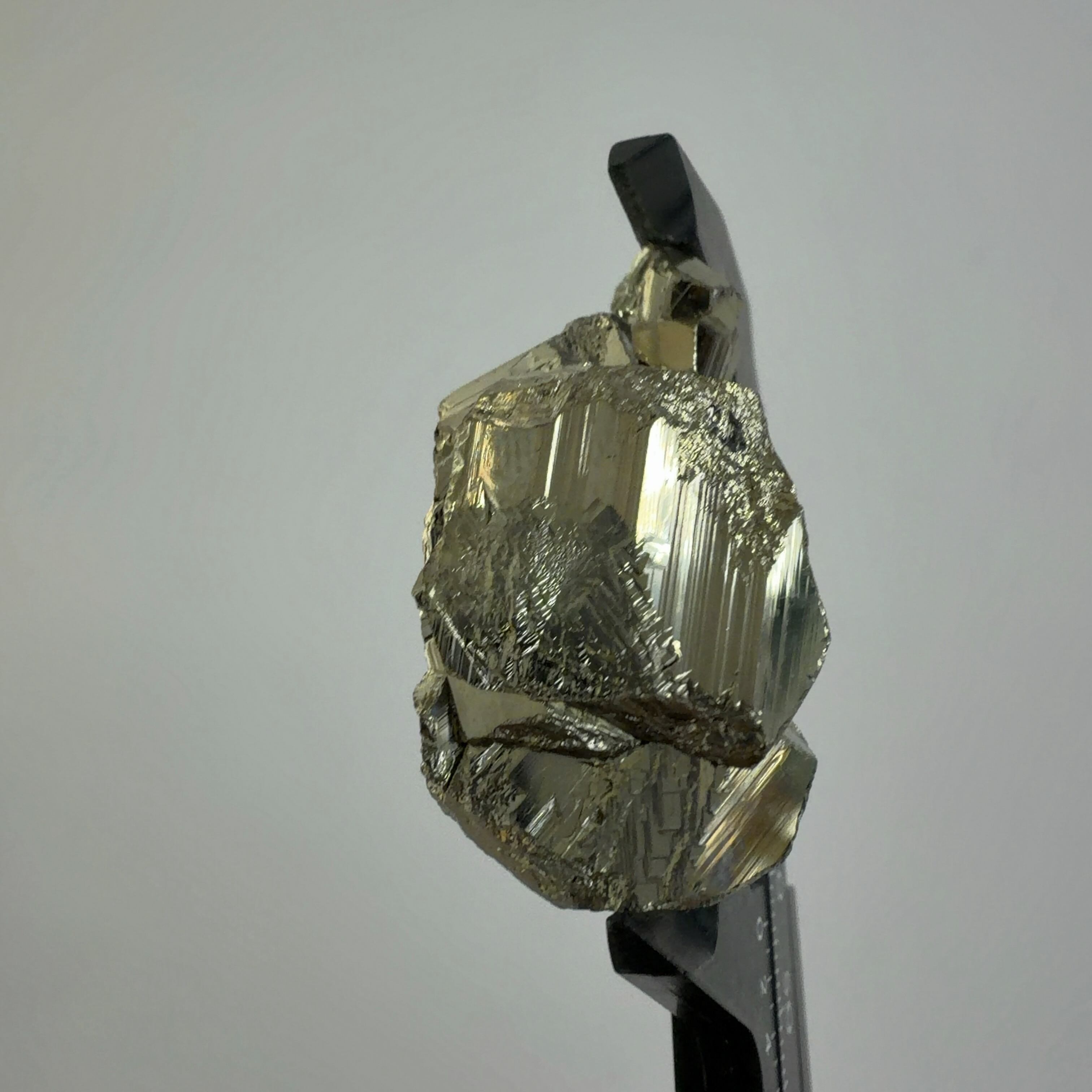 硫黄と鉄の化合物。黄金色の美しい光沢および、立方体、五画十二面体、八面体、二十四面体、又はそれらが合わさった形など様々な結晶をするので標本として人気があります。