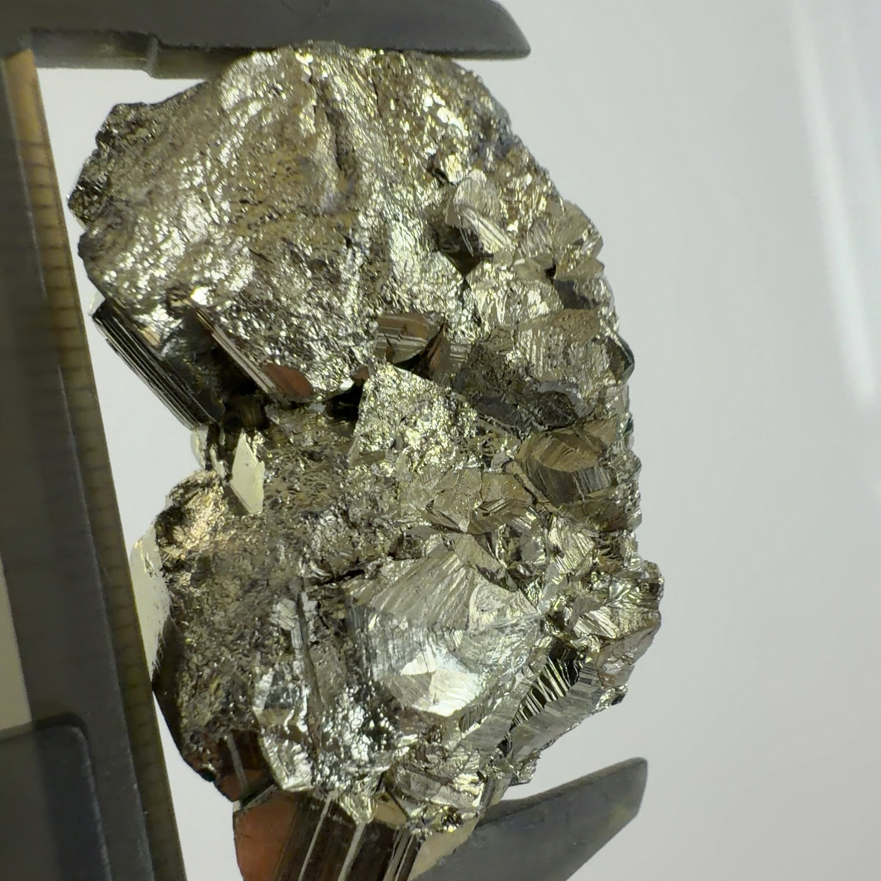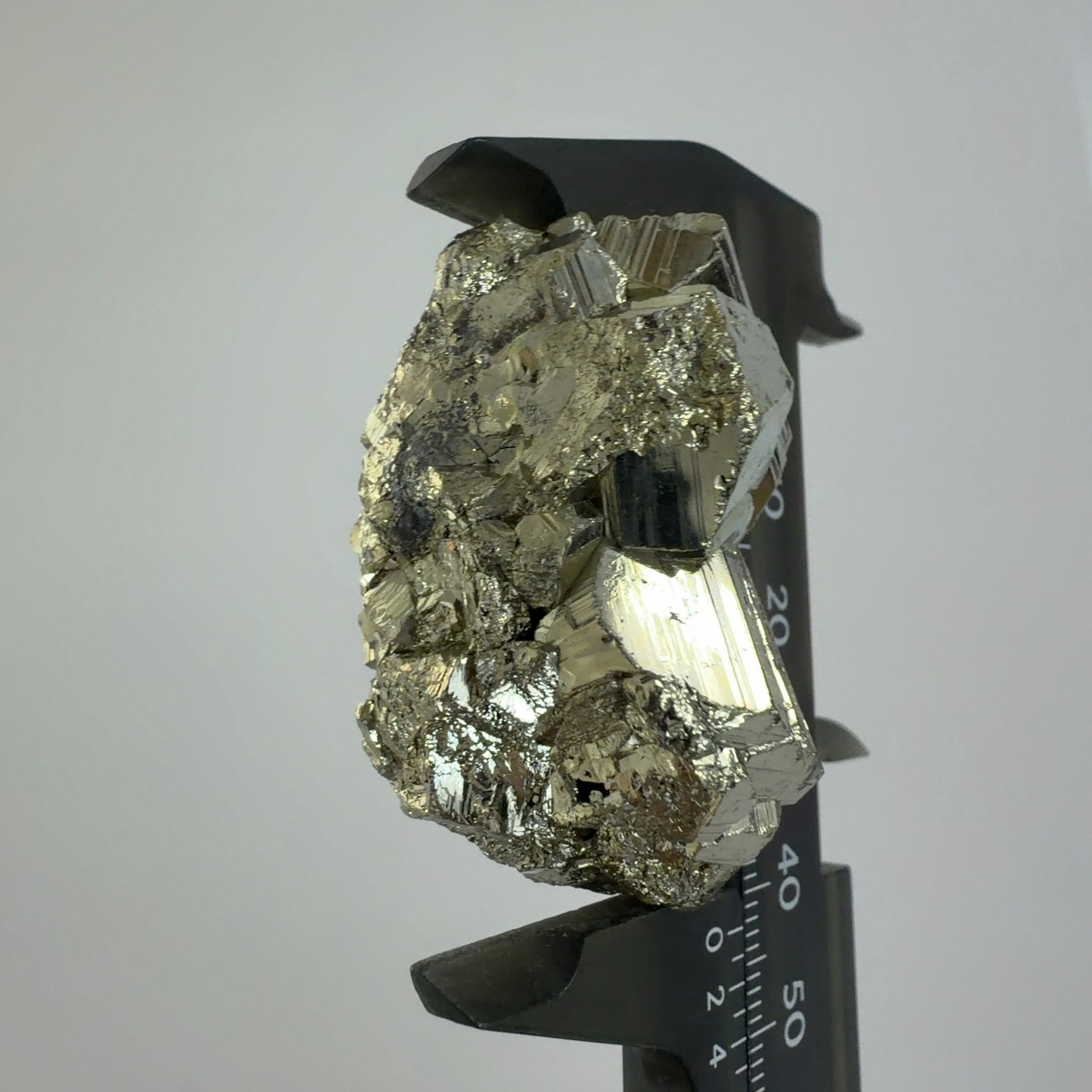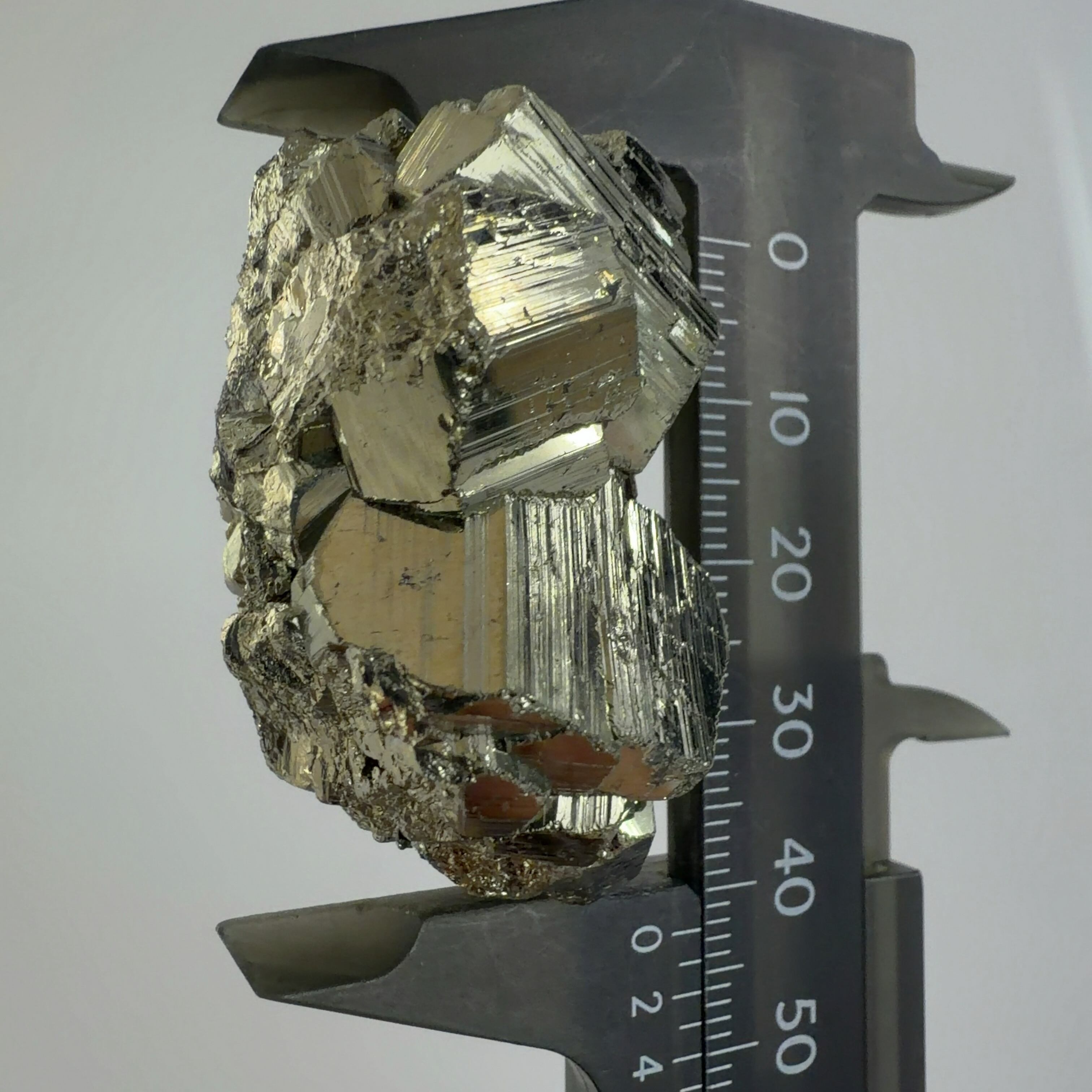 硫黄と鉄の化合物。黄金色の美しい光沢および、立方体、五画十二面体、八面体、二十四面体、又はそれらが合わさった形など様々な結晶をするので標本として人気があります。