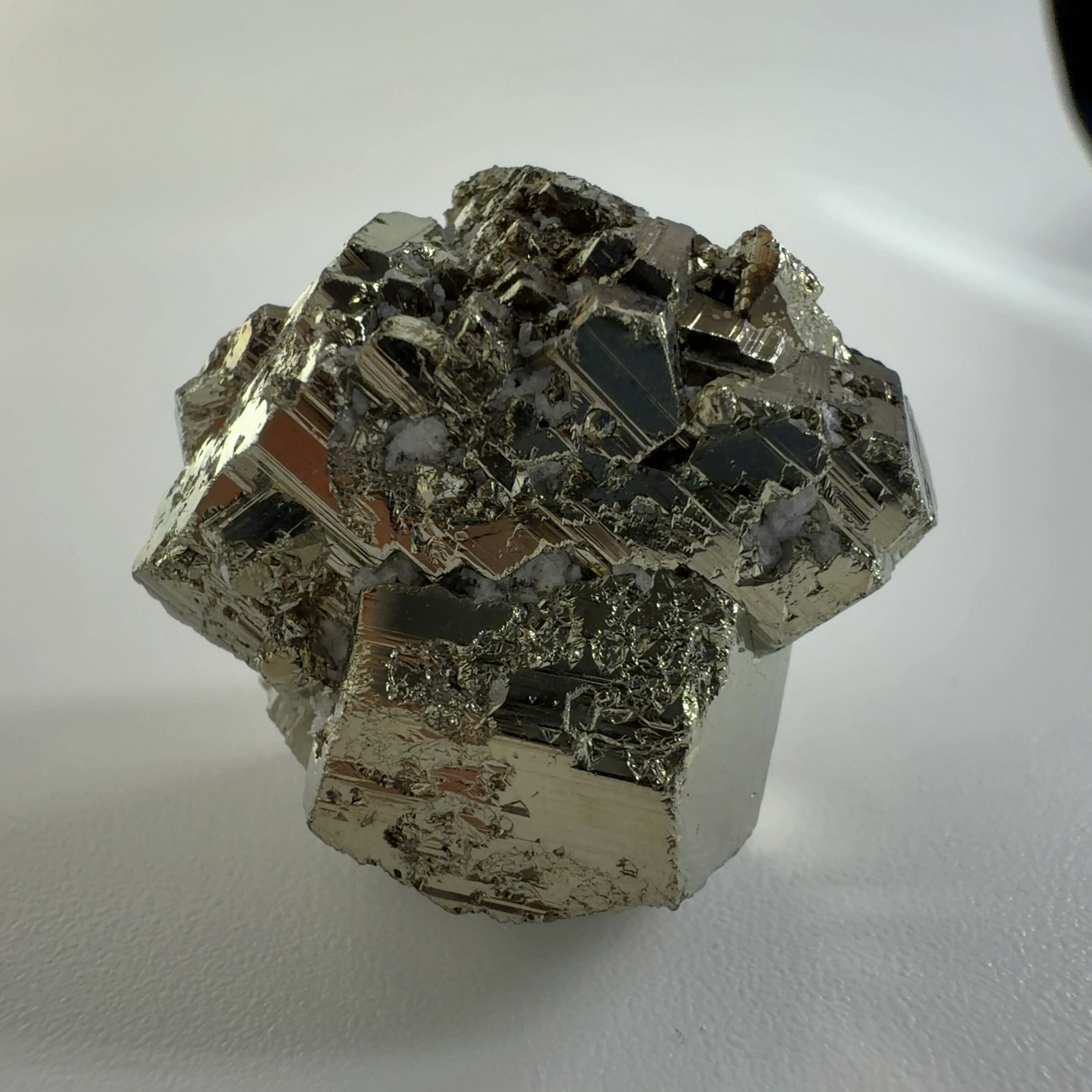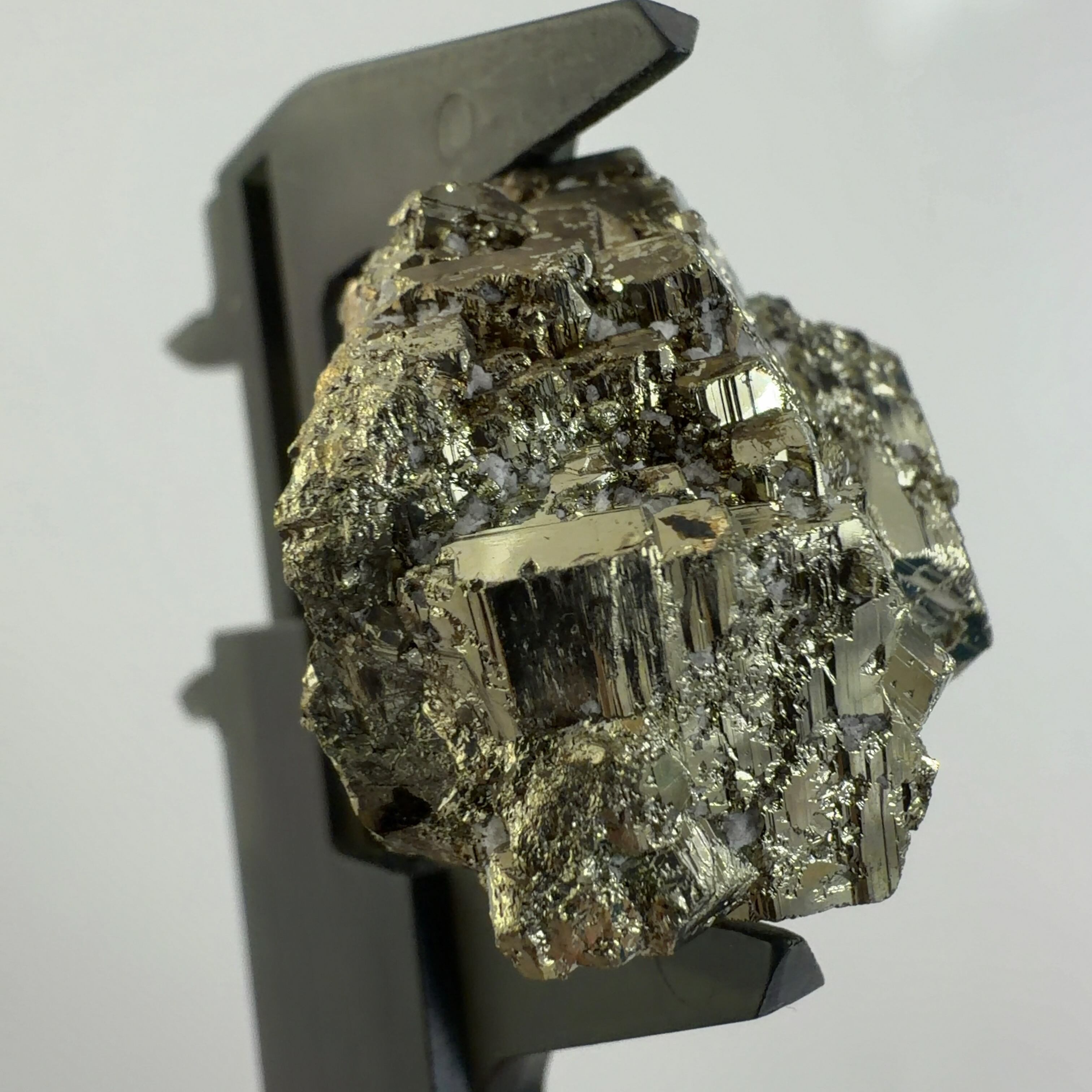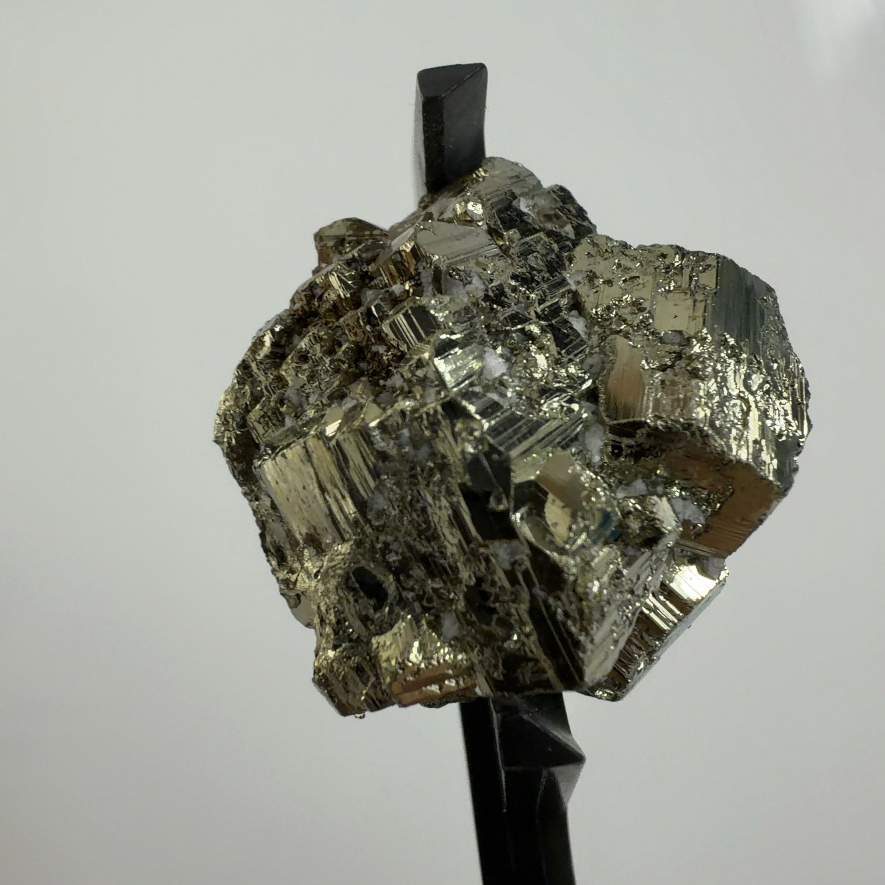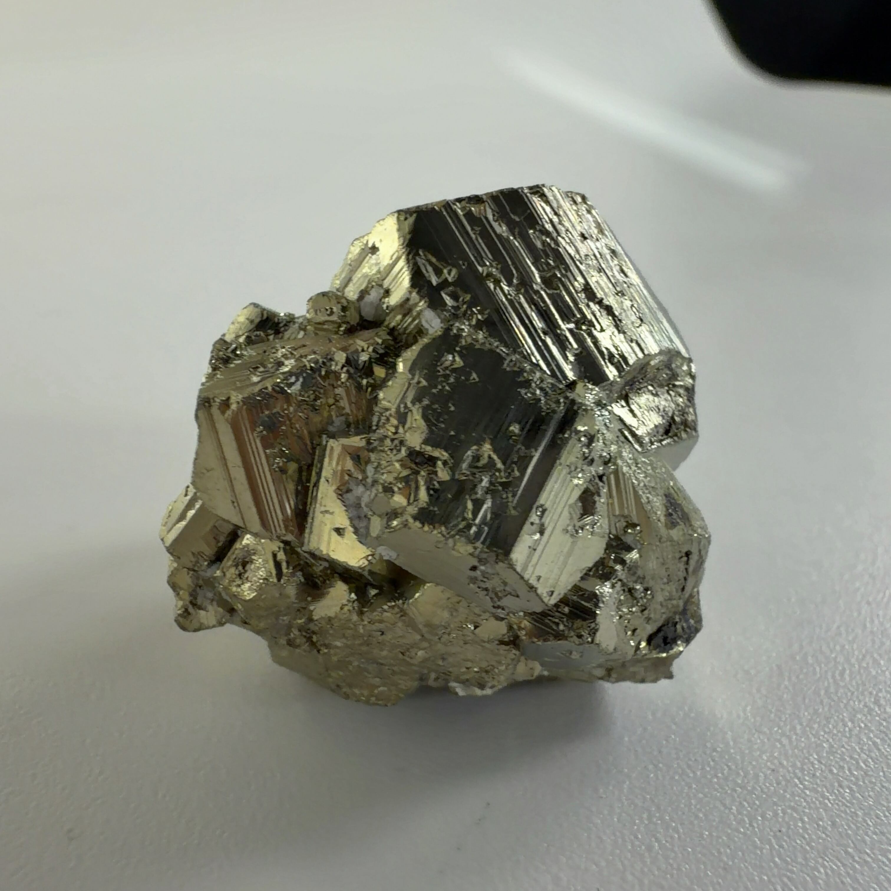 硫黄と鉄の化合物。黄金色の美しい光沢および、立方体、五画十二面体、八面体、二十四面体、又はそれらが合わさった形など様々な結晶をするので標本として人気があります。