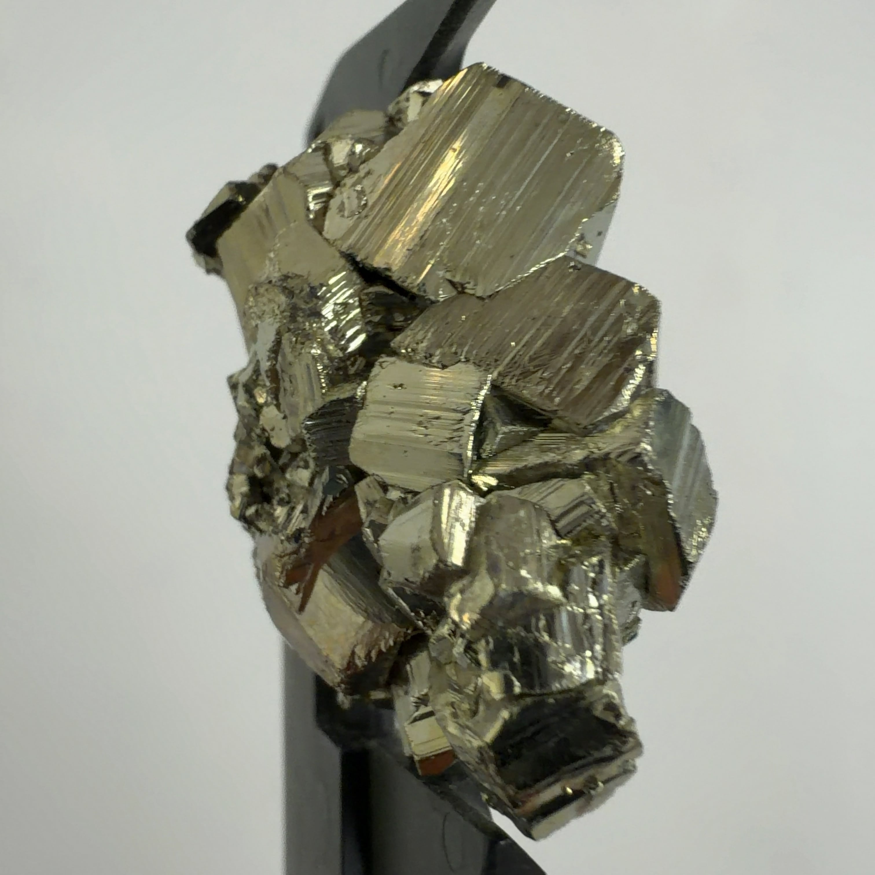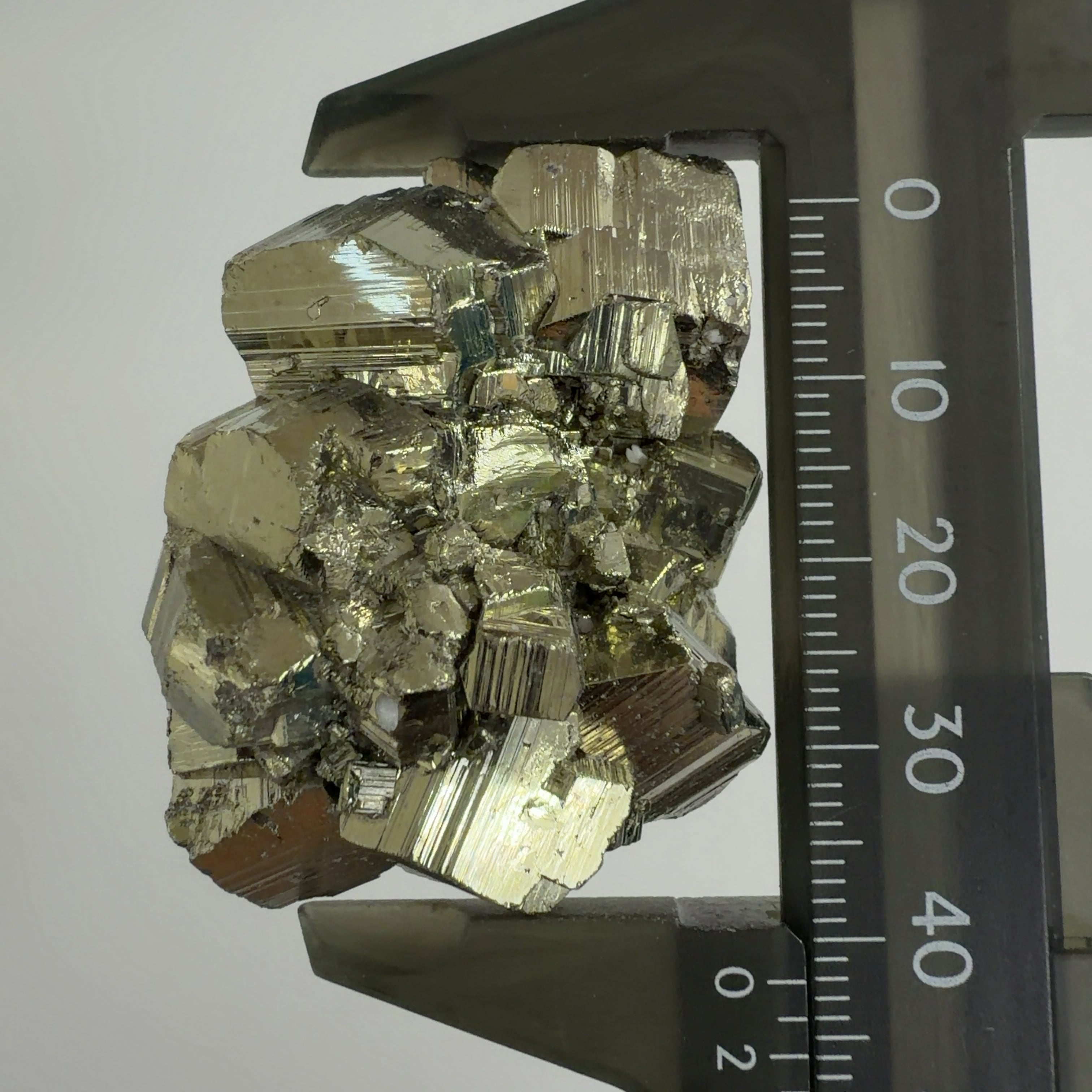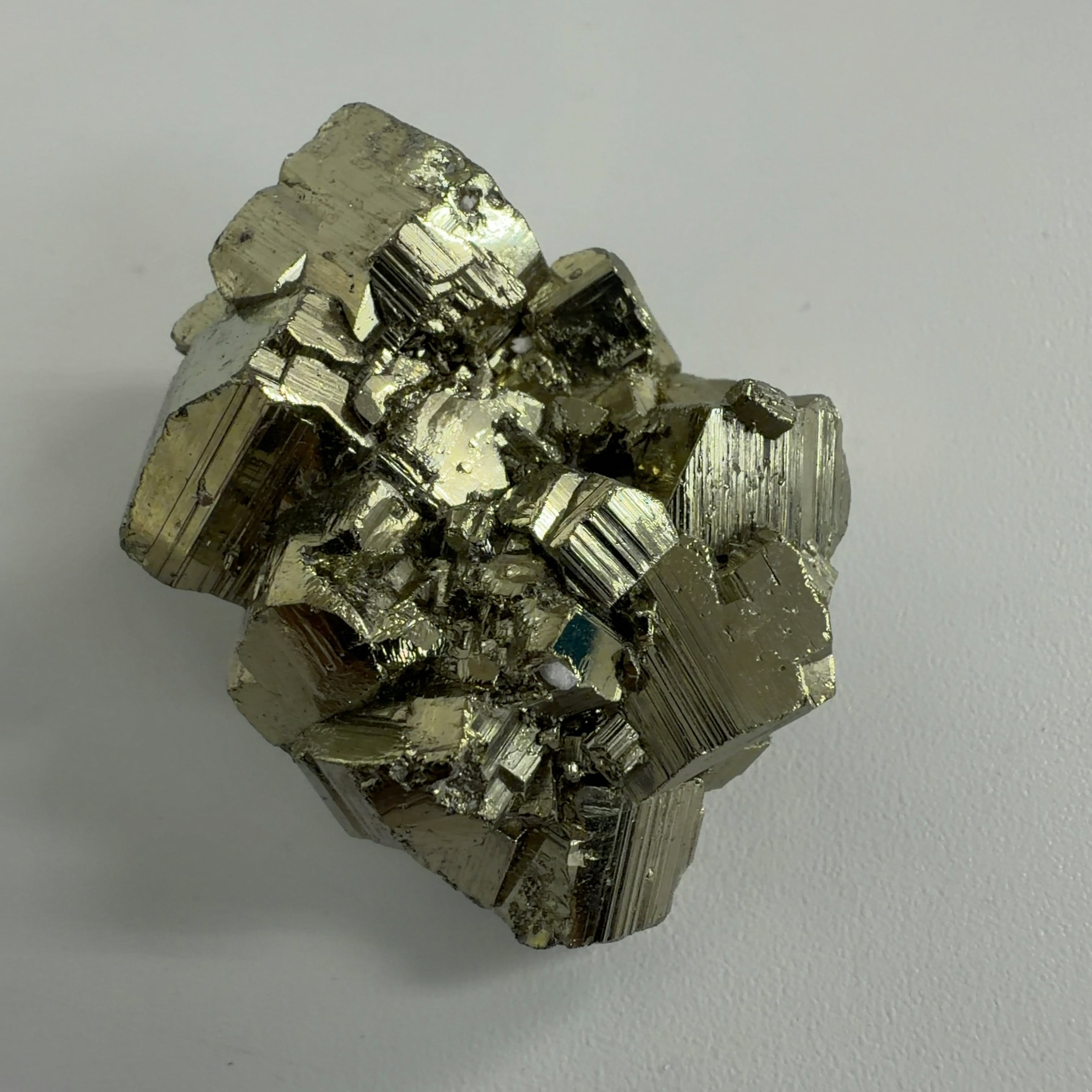 硫黄と鉄の化合物。黄金色の美しい光沢および、立方体、五画十二面体、八面体、二十四面体、又はそれらが合わさった形など様々な結晶をするので標本として人気があります。