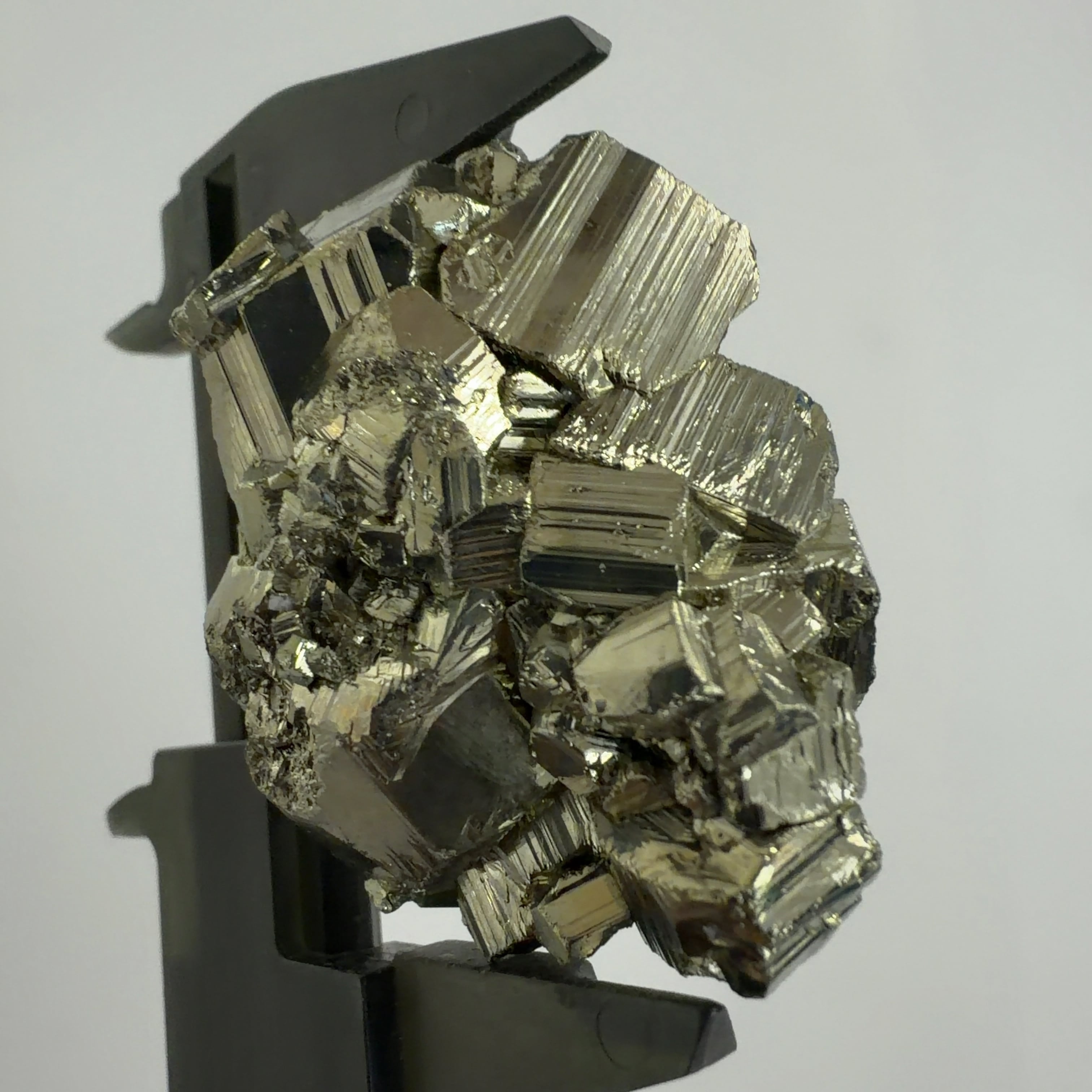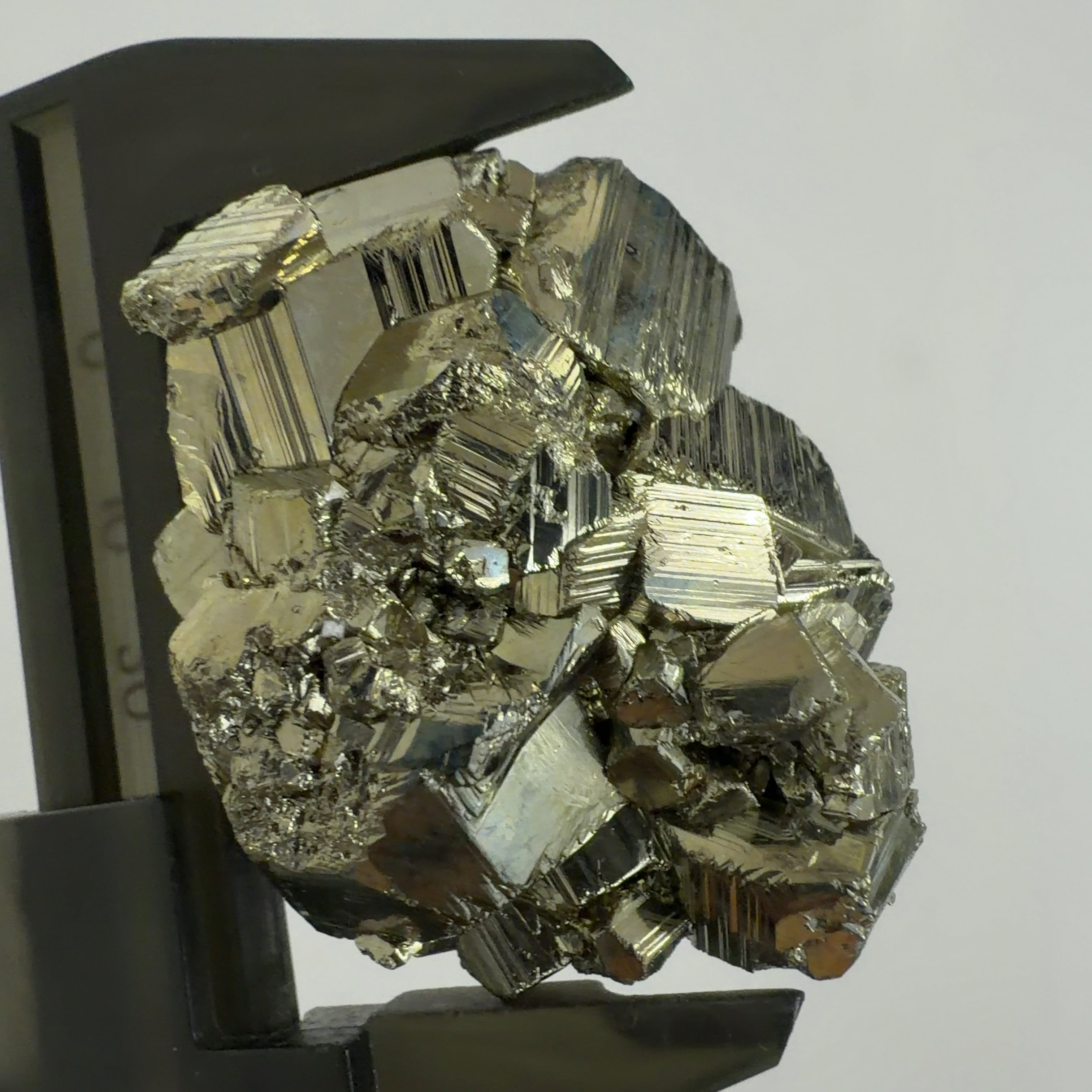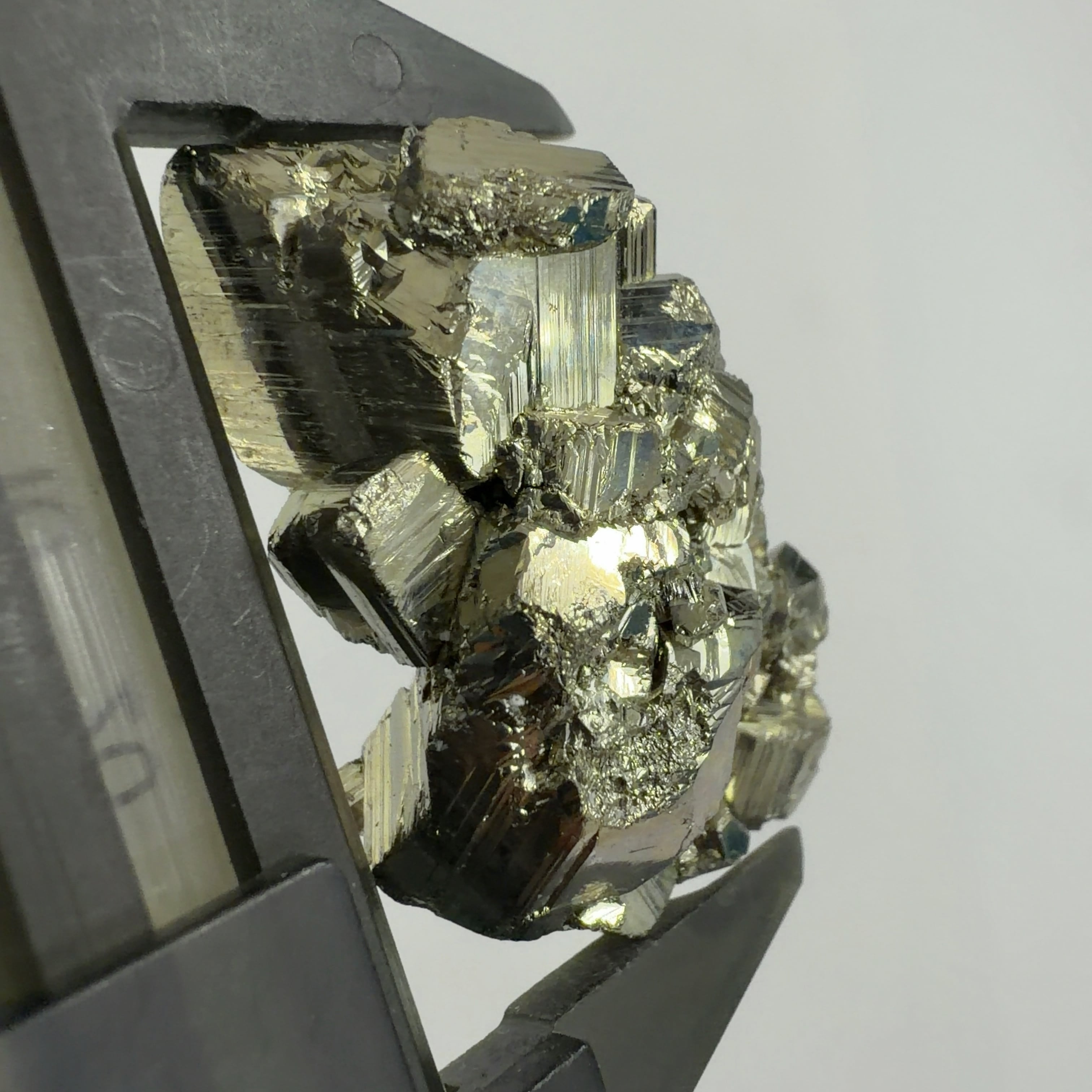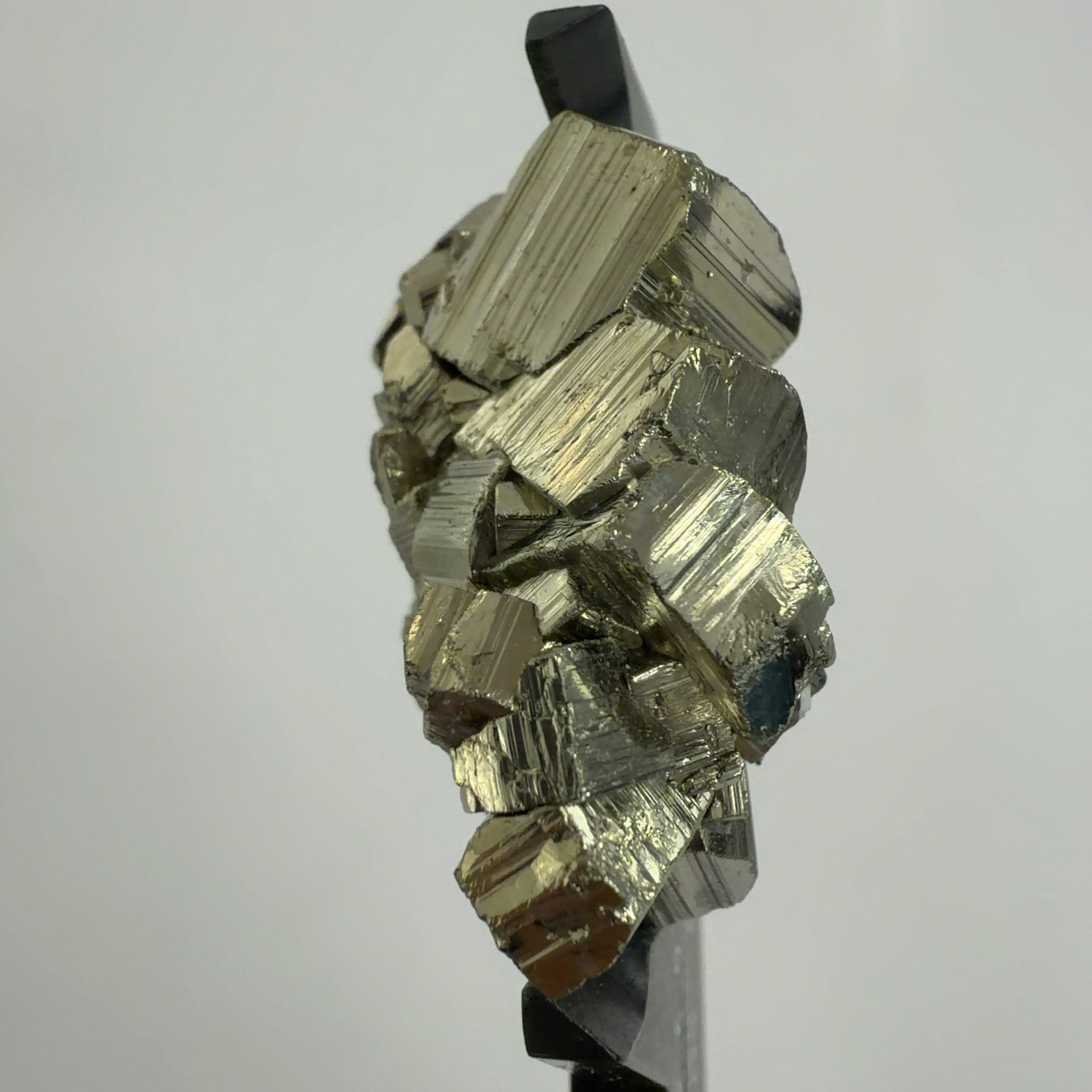 硫黄と鉄の化合物。黄金色の美しい光沢および、立方体、五画十二面体、八面体、二十四面体、又はそれらが合わさった形など様々な結晶をするので標本として人気があります。