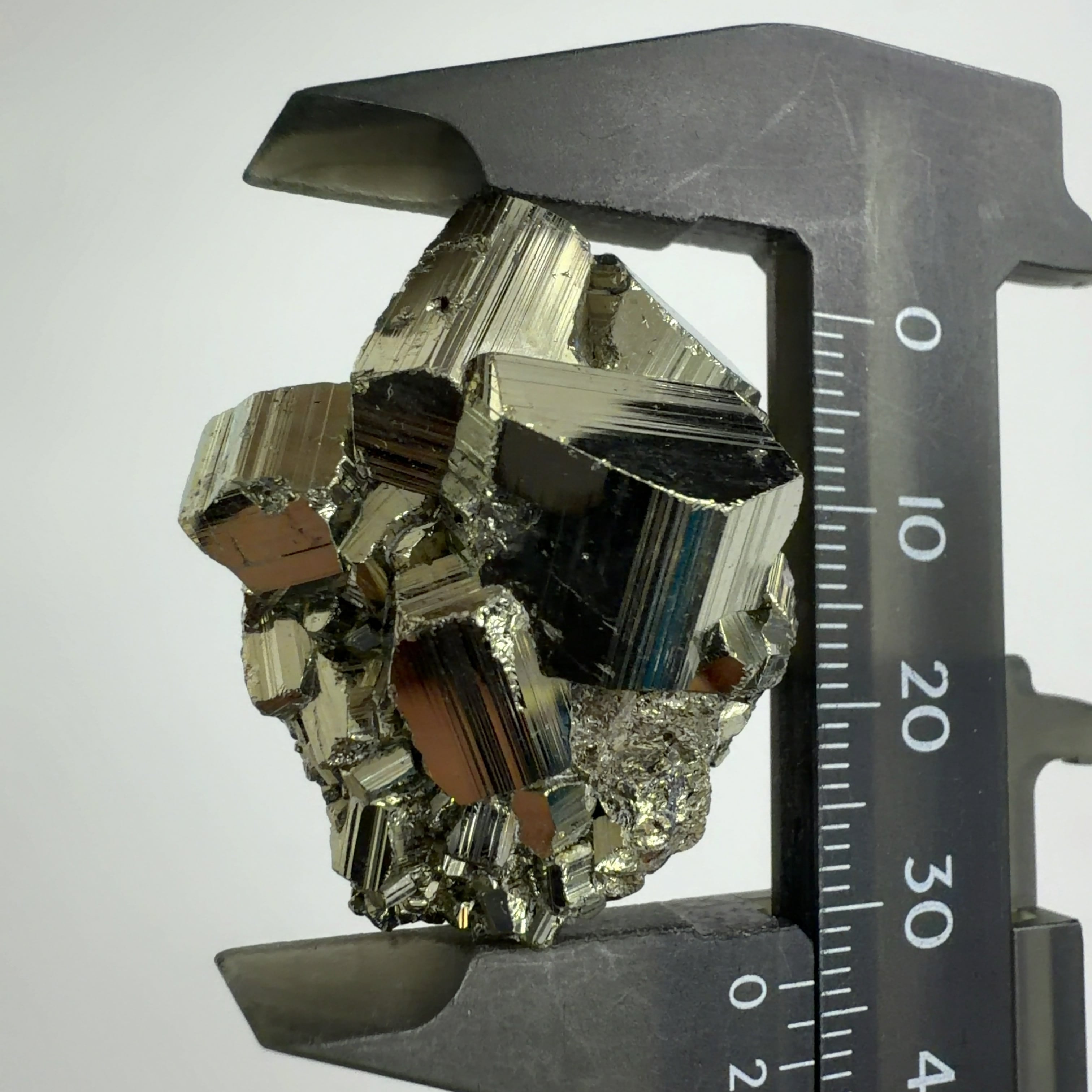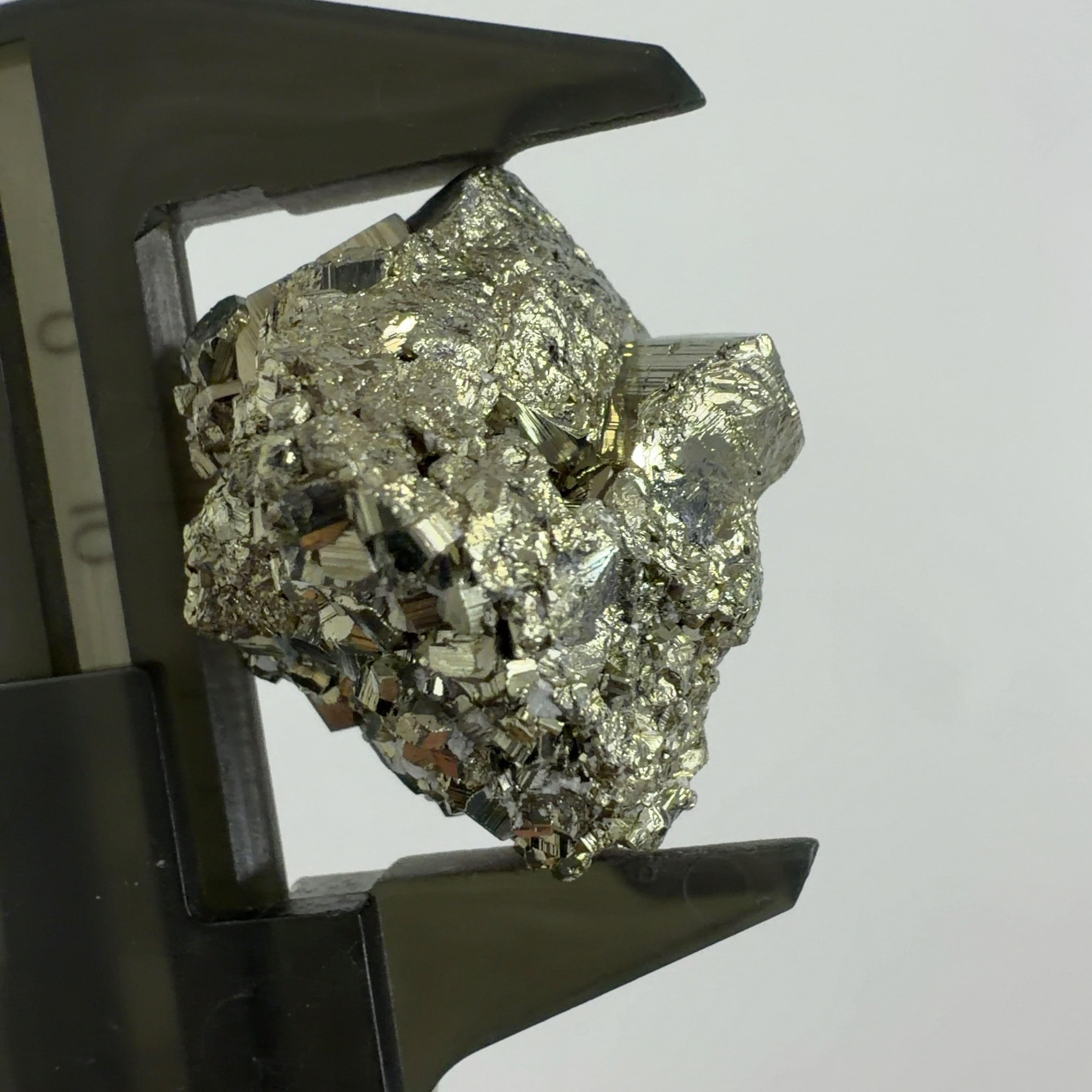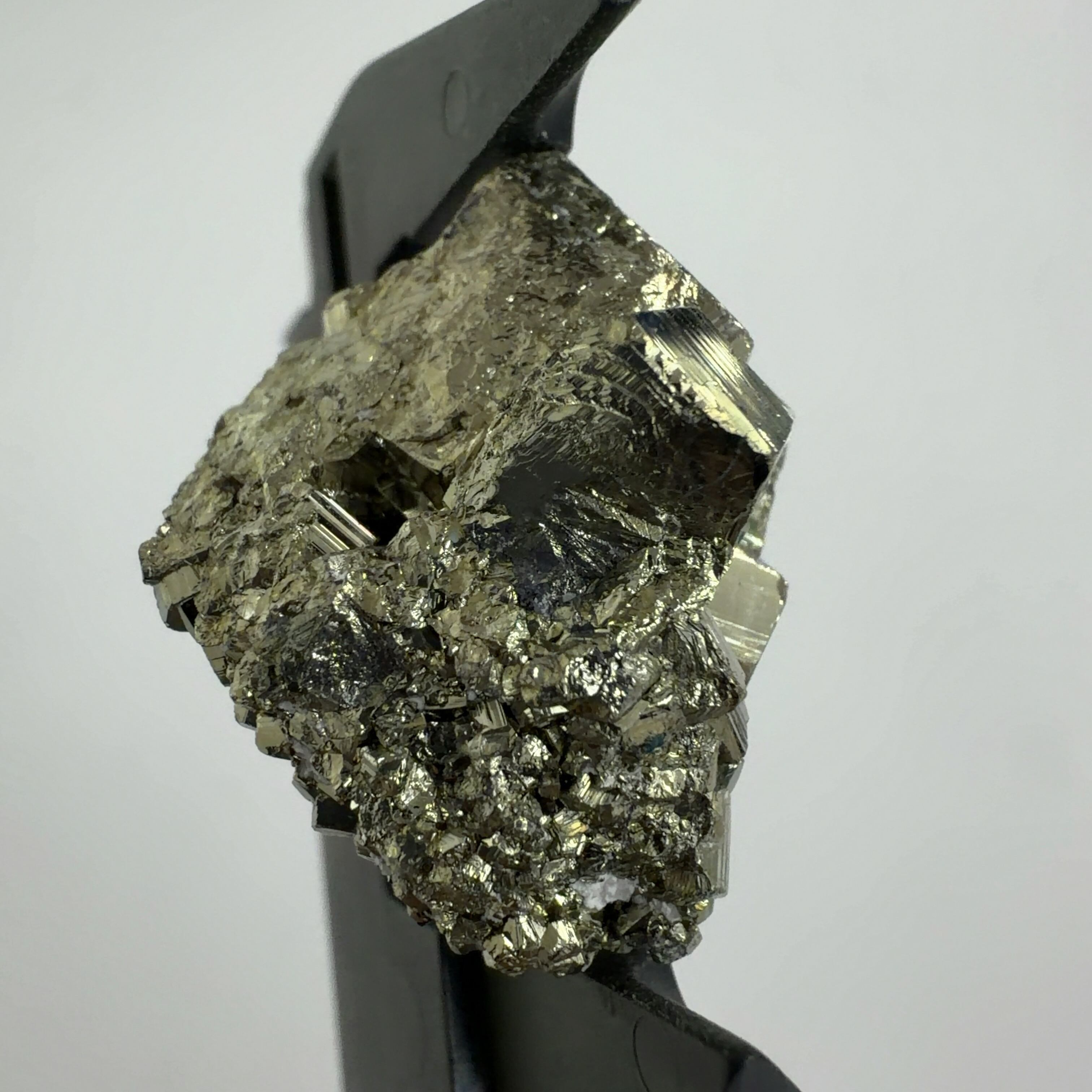 硫黄と鉄の化合物。黄金色の美しい光沢および、立方体、五画十二面体、八面体、二十四面体、又はそれらが合わさった形など様々な結晶をするので標本として人気があります。