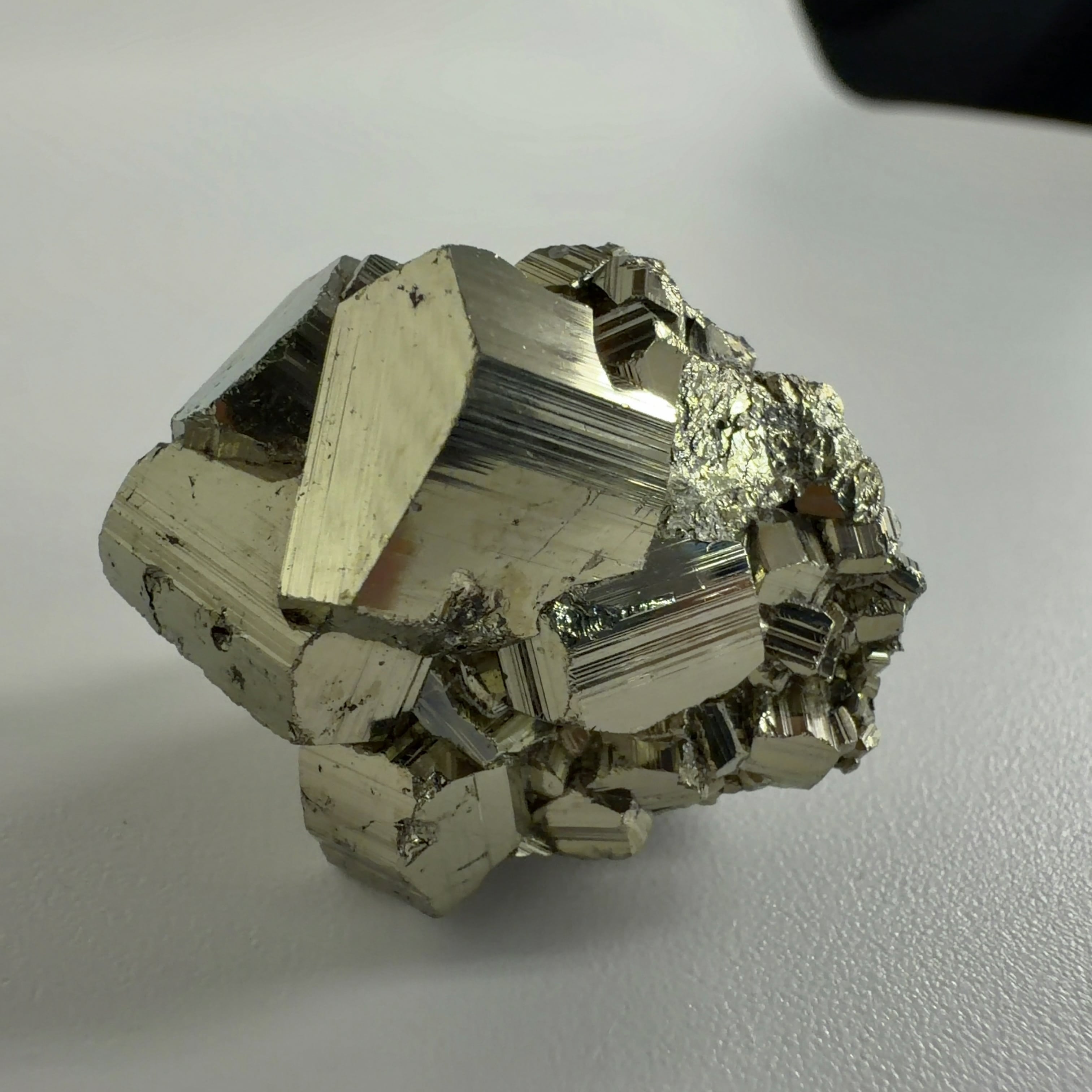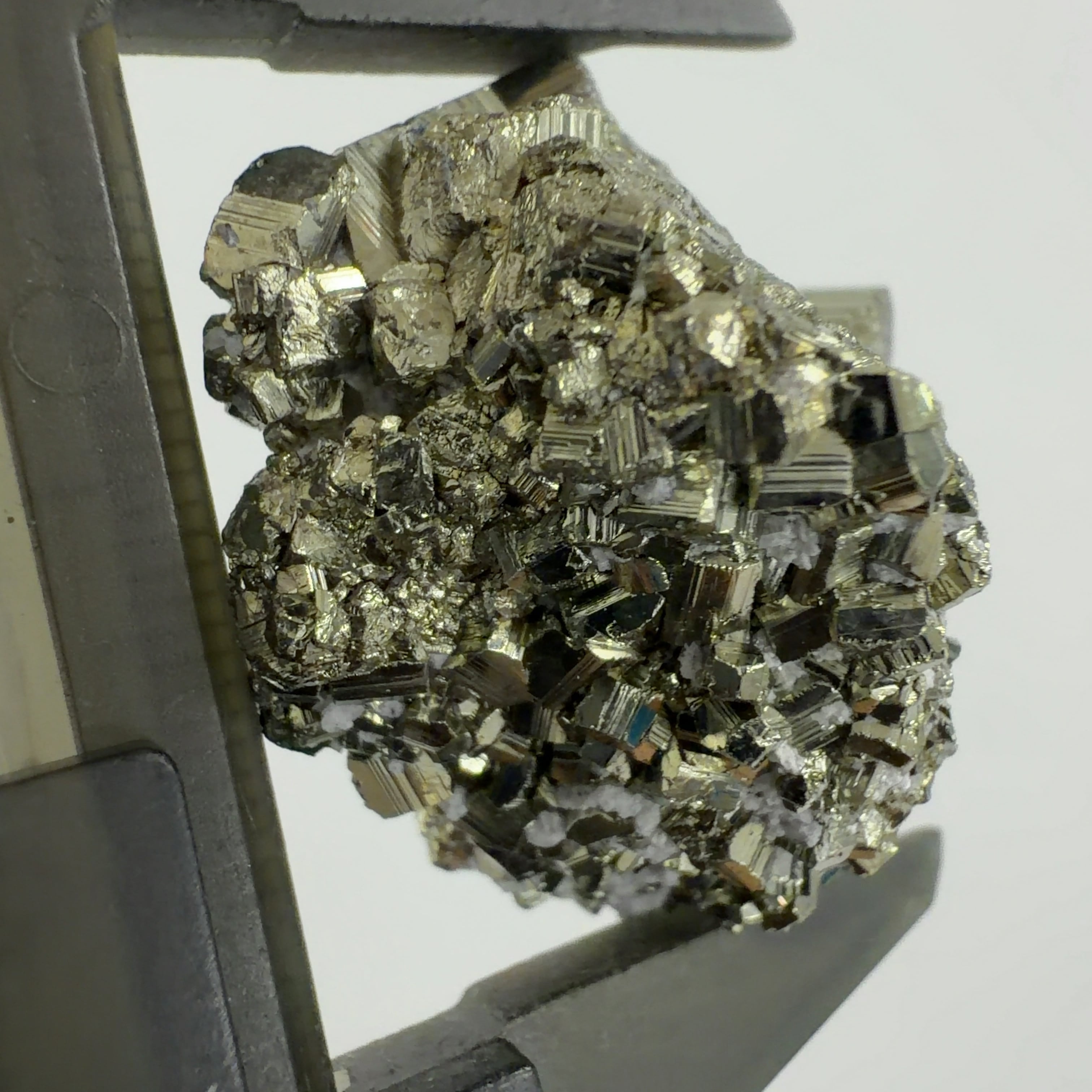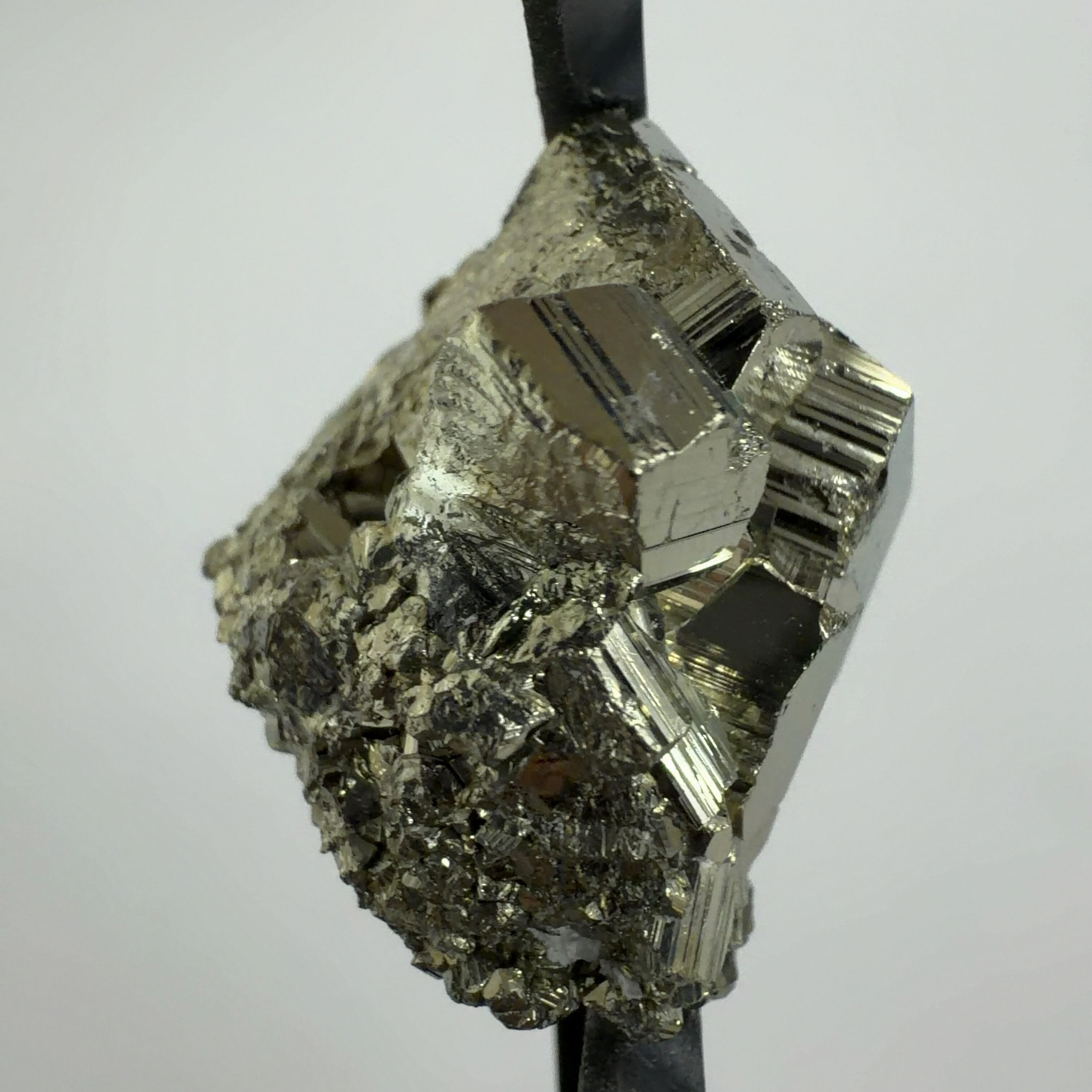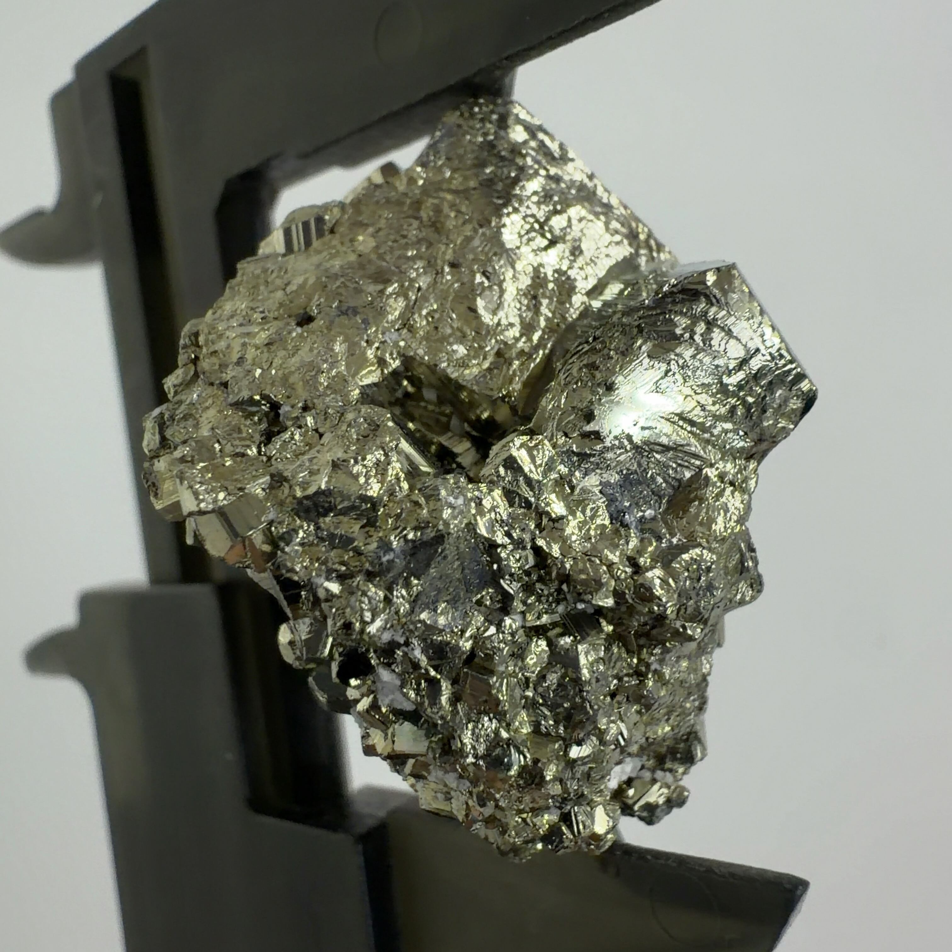 硫黄と鉄の化合物。黄金色の美しい光沢および、立方体、五画十二面体、八面体、二十四面体、又はそれらが合わさった形など様々な結晶をするので標本として人気があります。