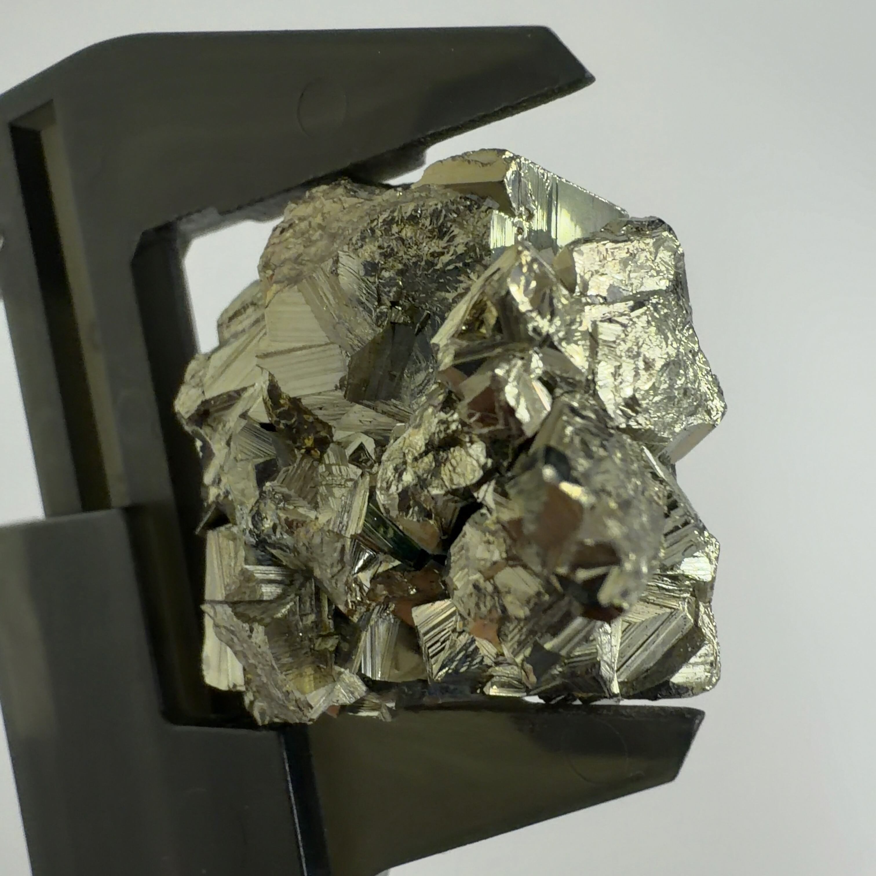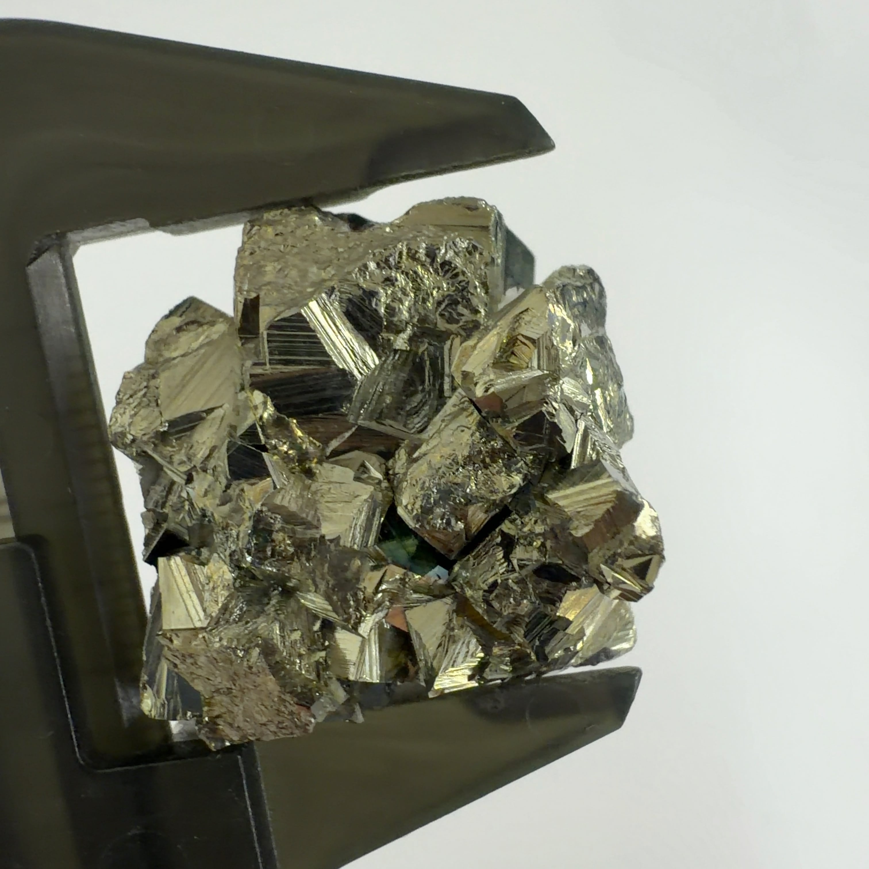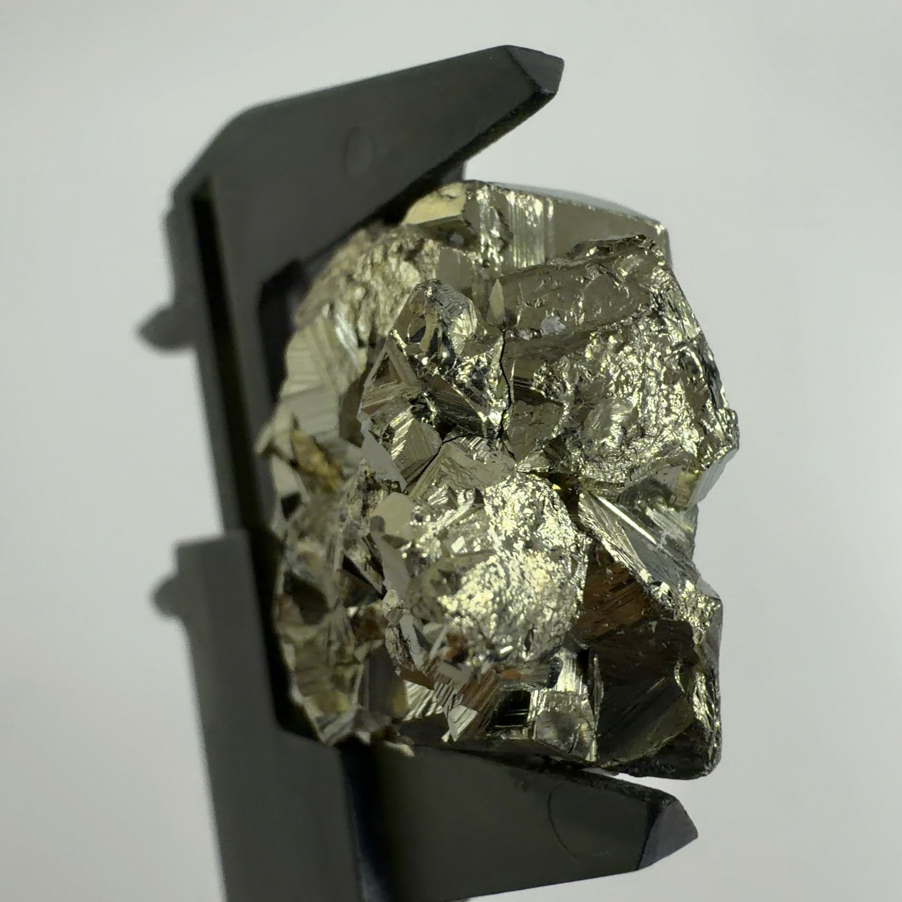 硫黄と鉄の化合物。黄金色の美しい光沢および、立方体、五画十二面体、八面体、二十四面体、又はそれらが合わさった形など様々な結晶をするので標本として人気があります。