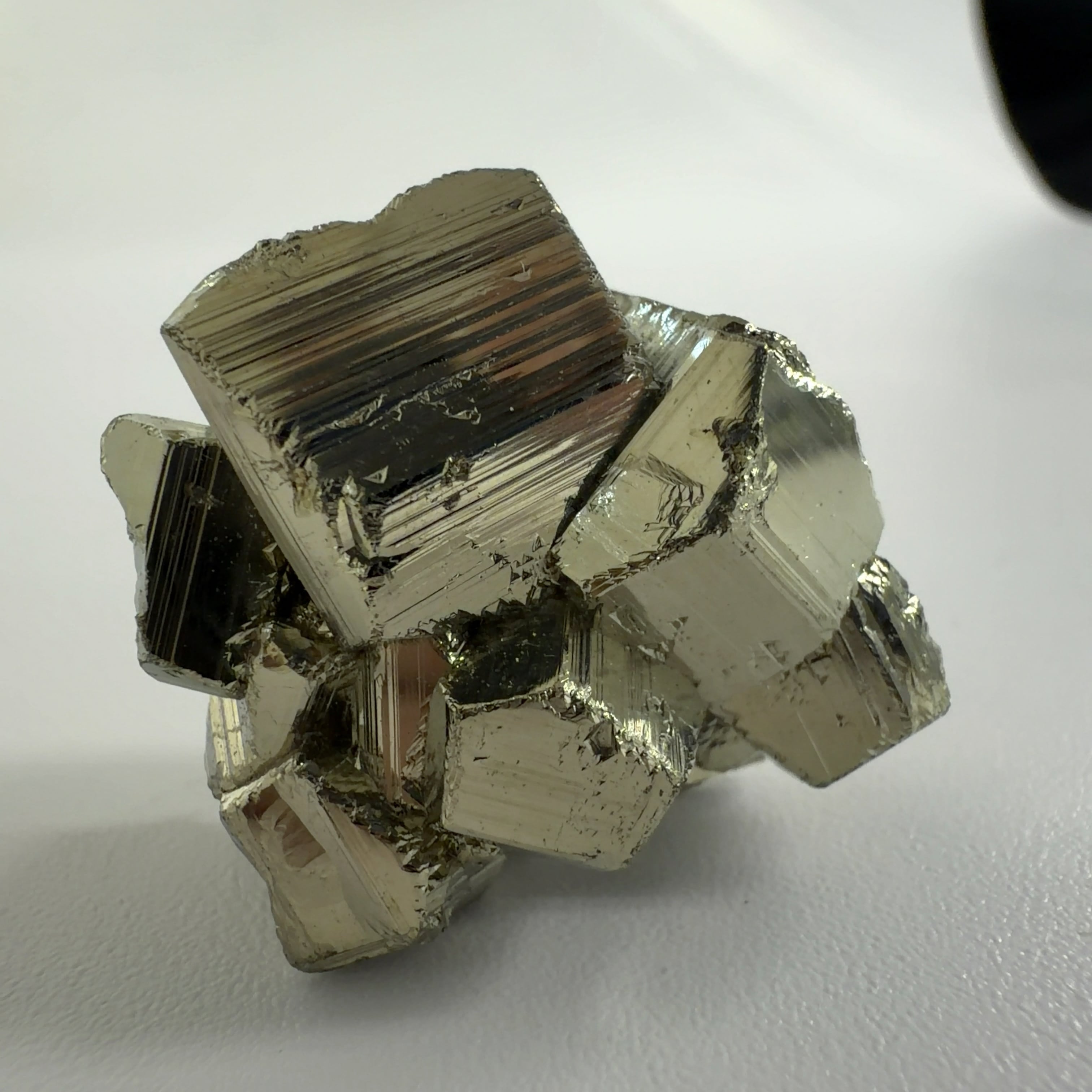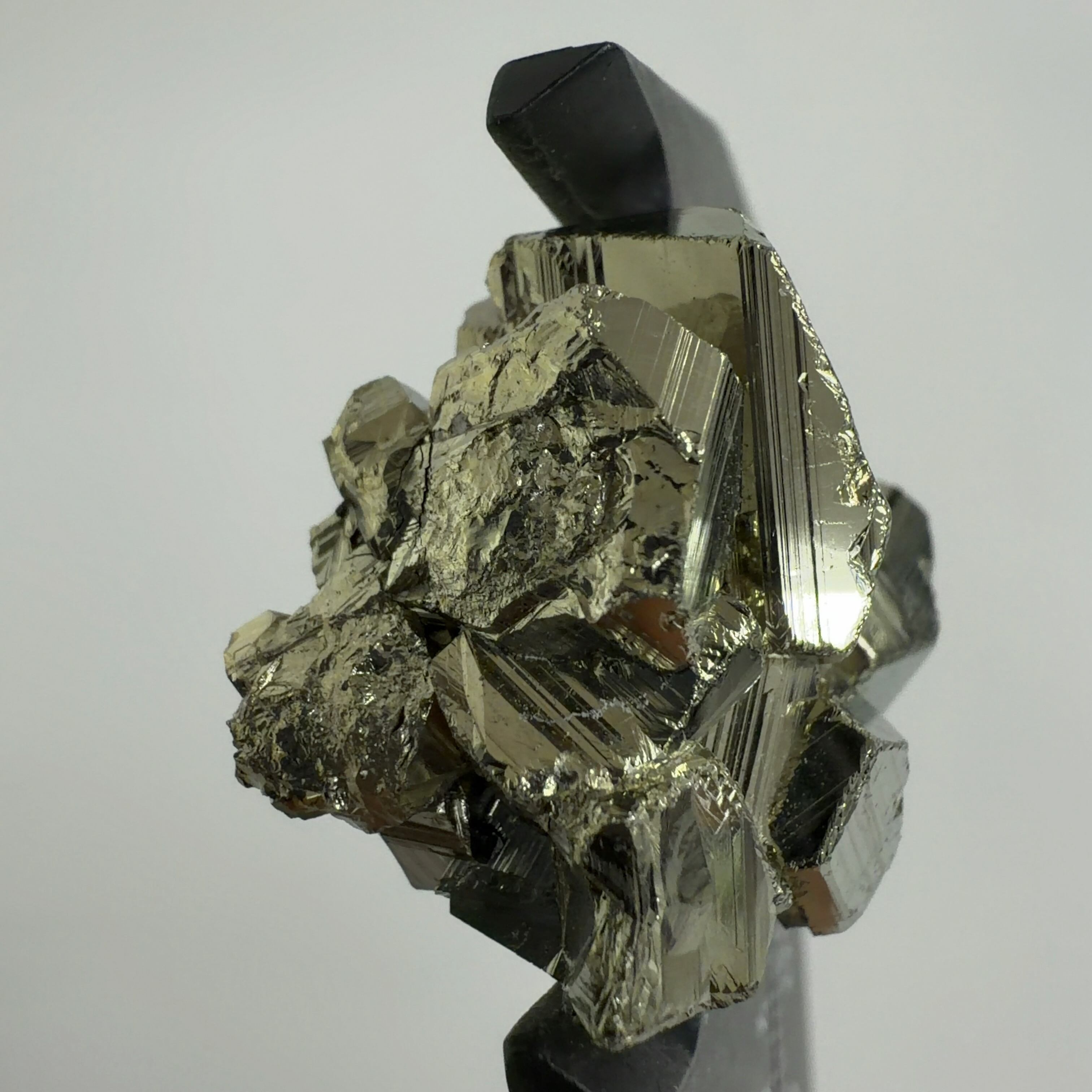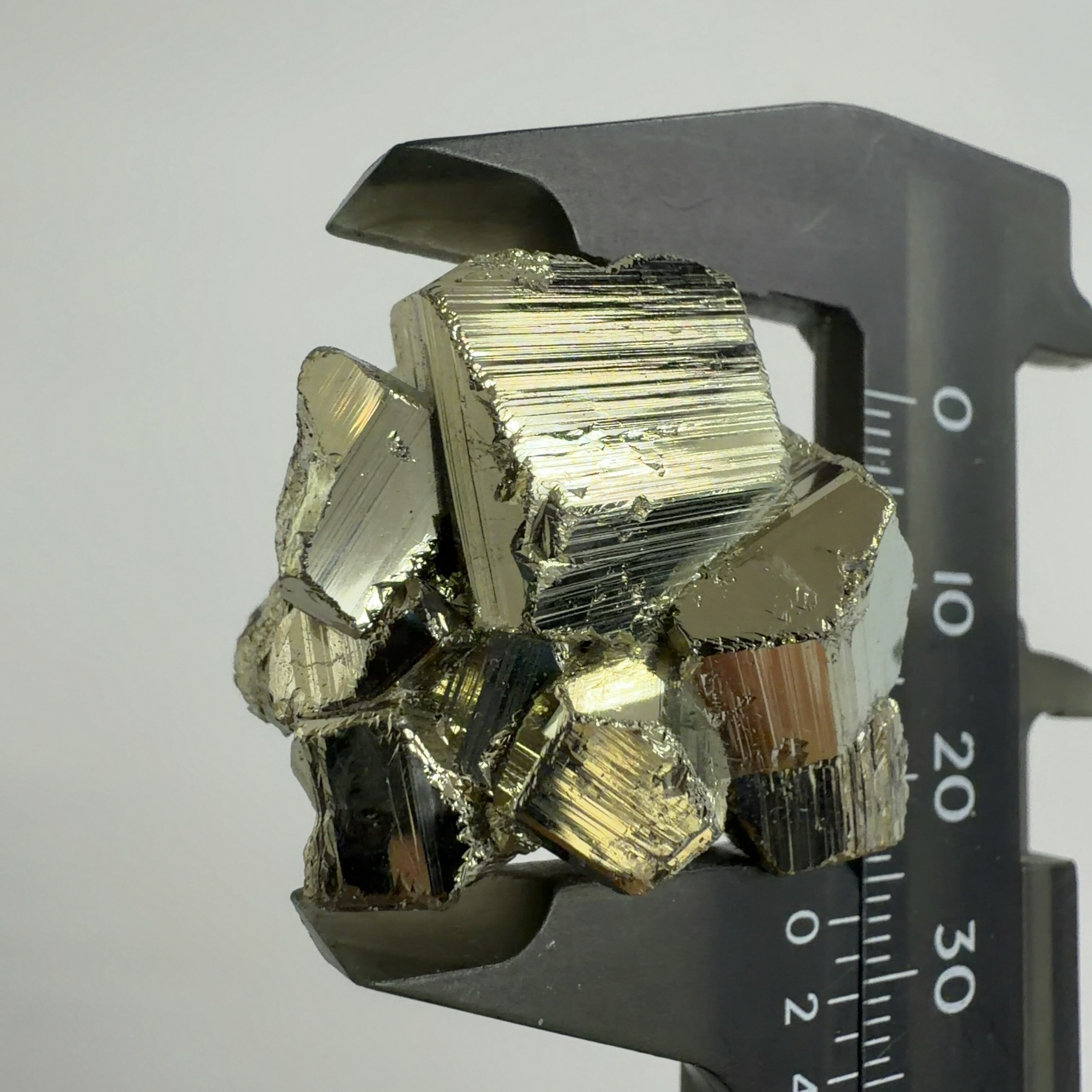 硫黄と鉄の化合物。黄金色の美しい光沢および、立方体、五画十二面体、八面体、二十四面体、又はそれらが合わさった形など様々な結晶をするので標本として人気があります。