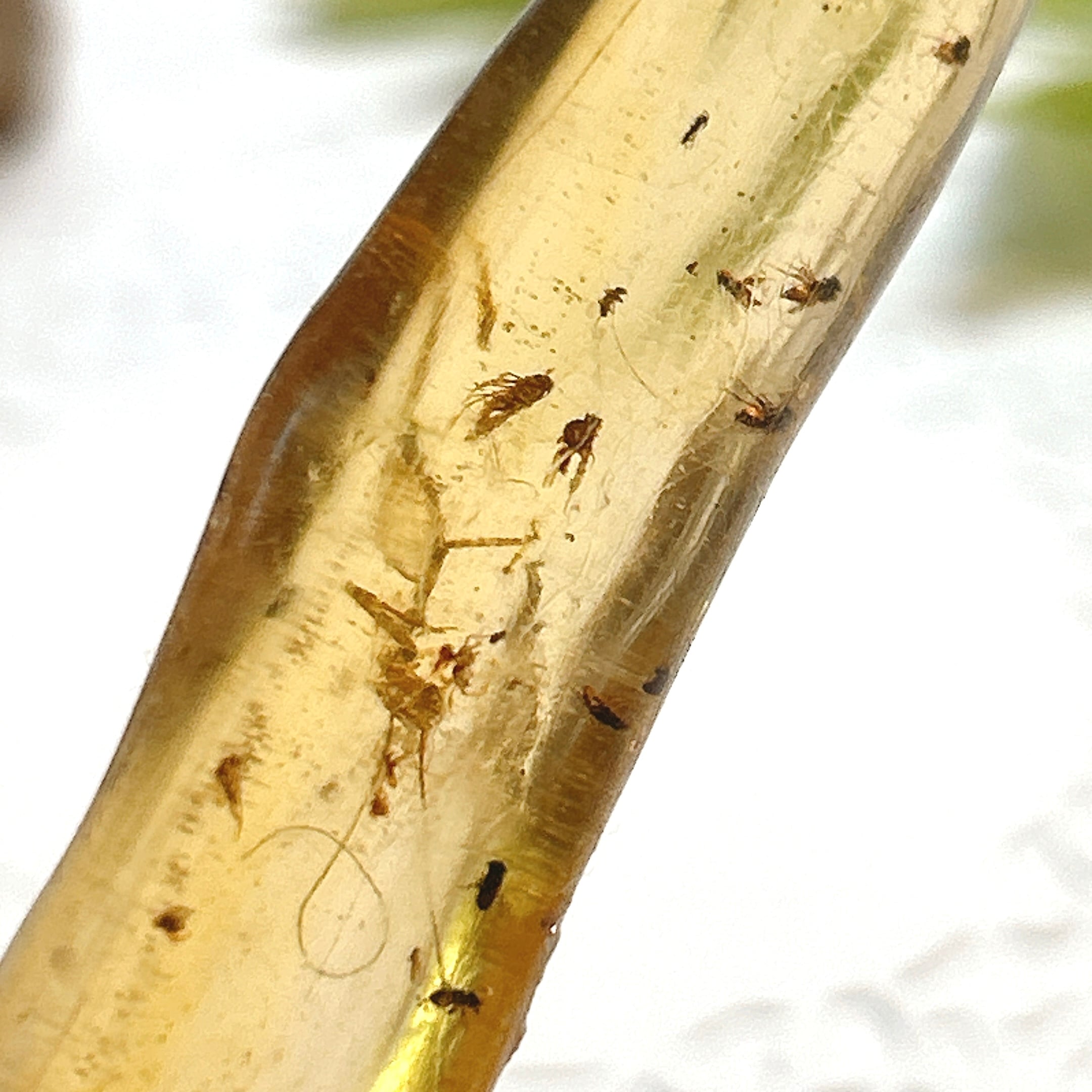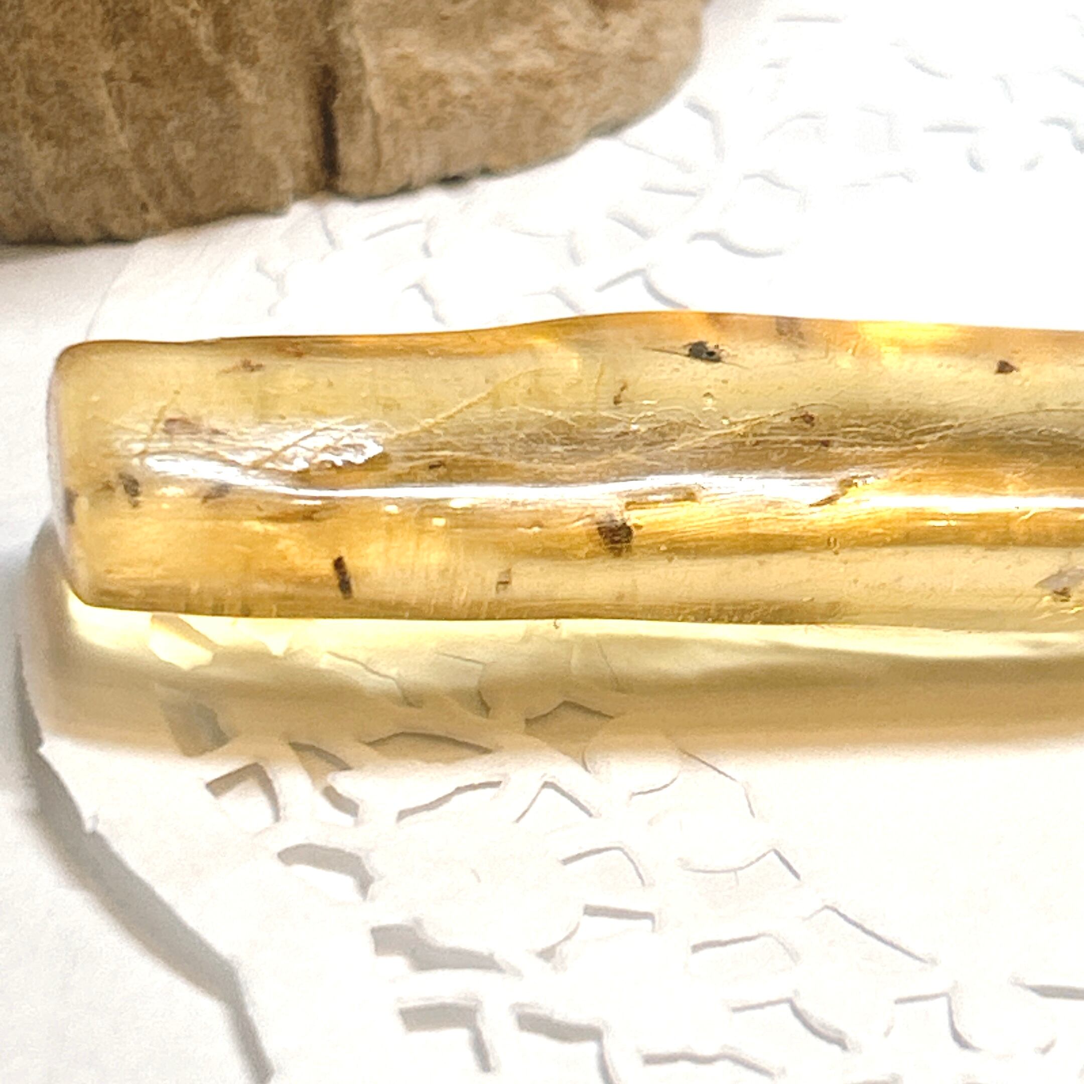 磨くと透明感、艶が出て中の虫がよく観察できます。