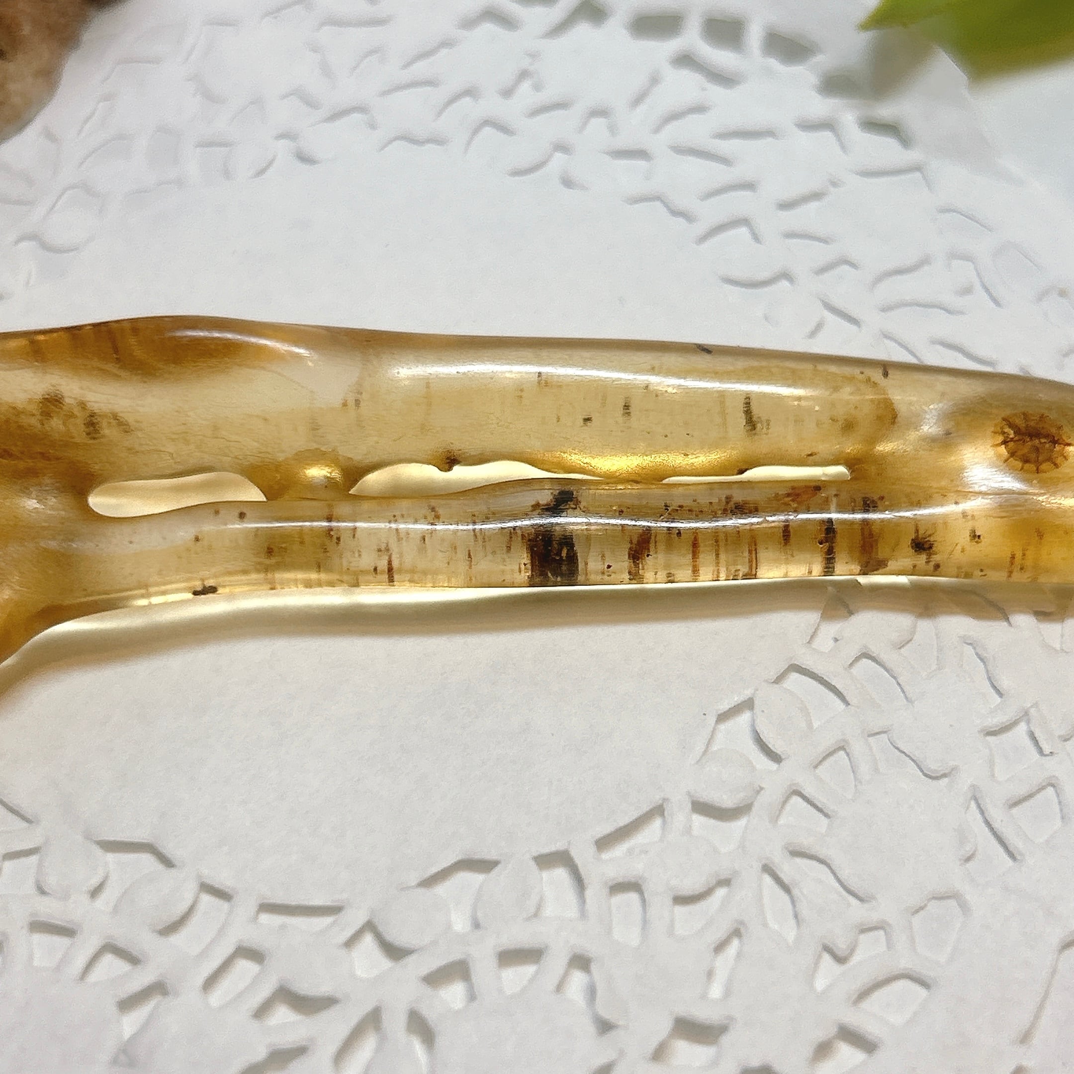 磨くと透明感、艶が出て中の虫がよく観察できます。