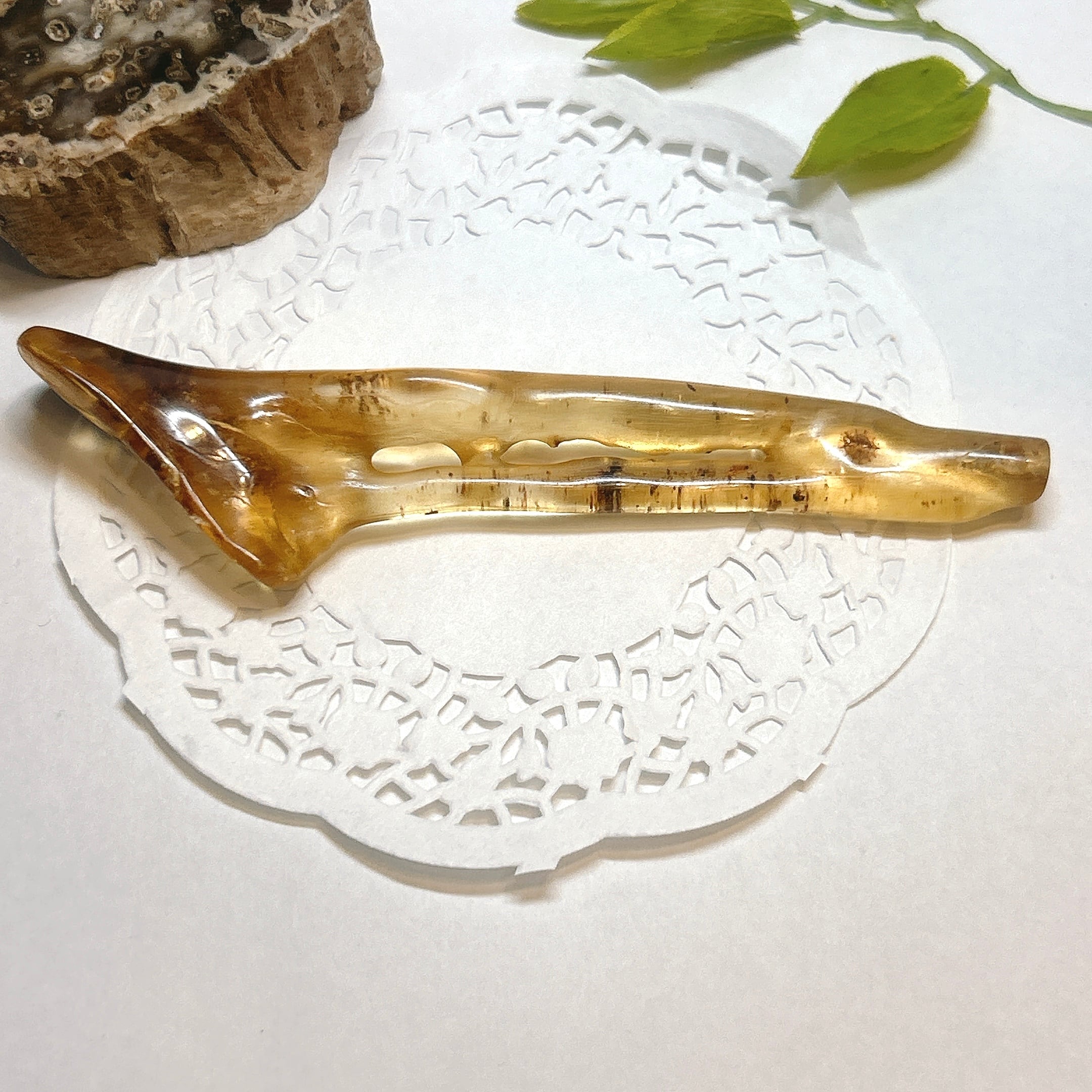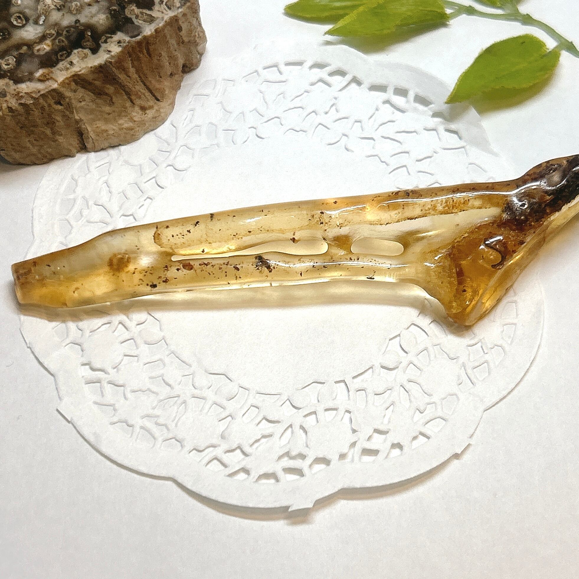 この産地のコパルは2万年~100万年前といわれていますがもっと若いという人もいます。 見た目は琉泊と変わらないが、 琥珀より柔らかく、アクセサリーにはむいていません。