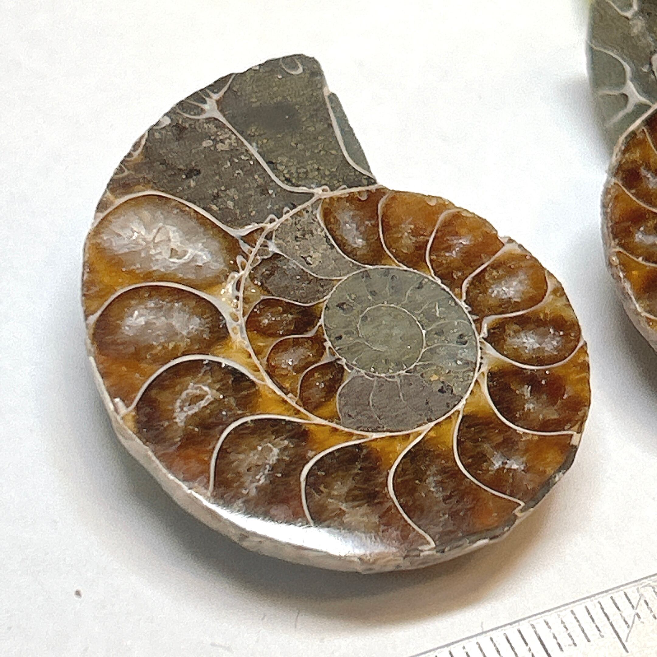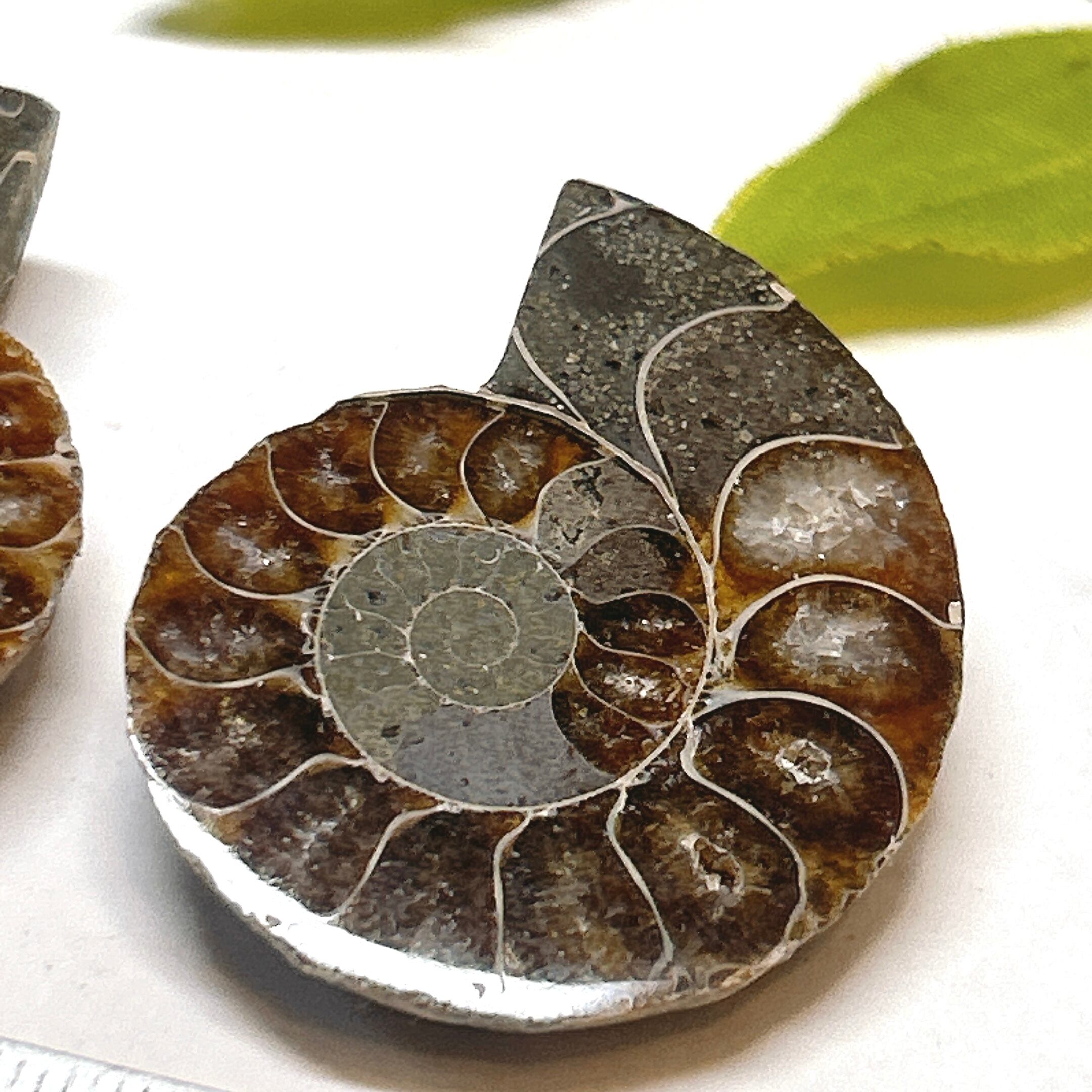 アンモナイトを真ん中でスライスしたもの。
