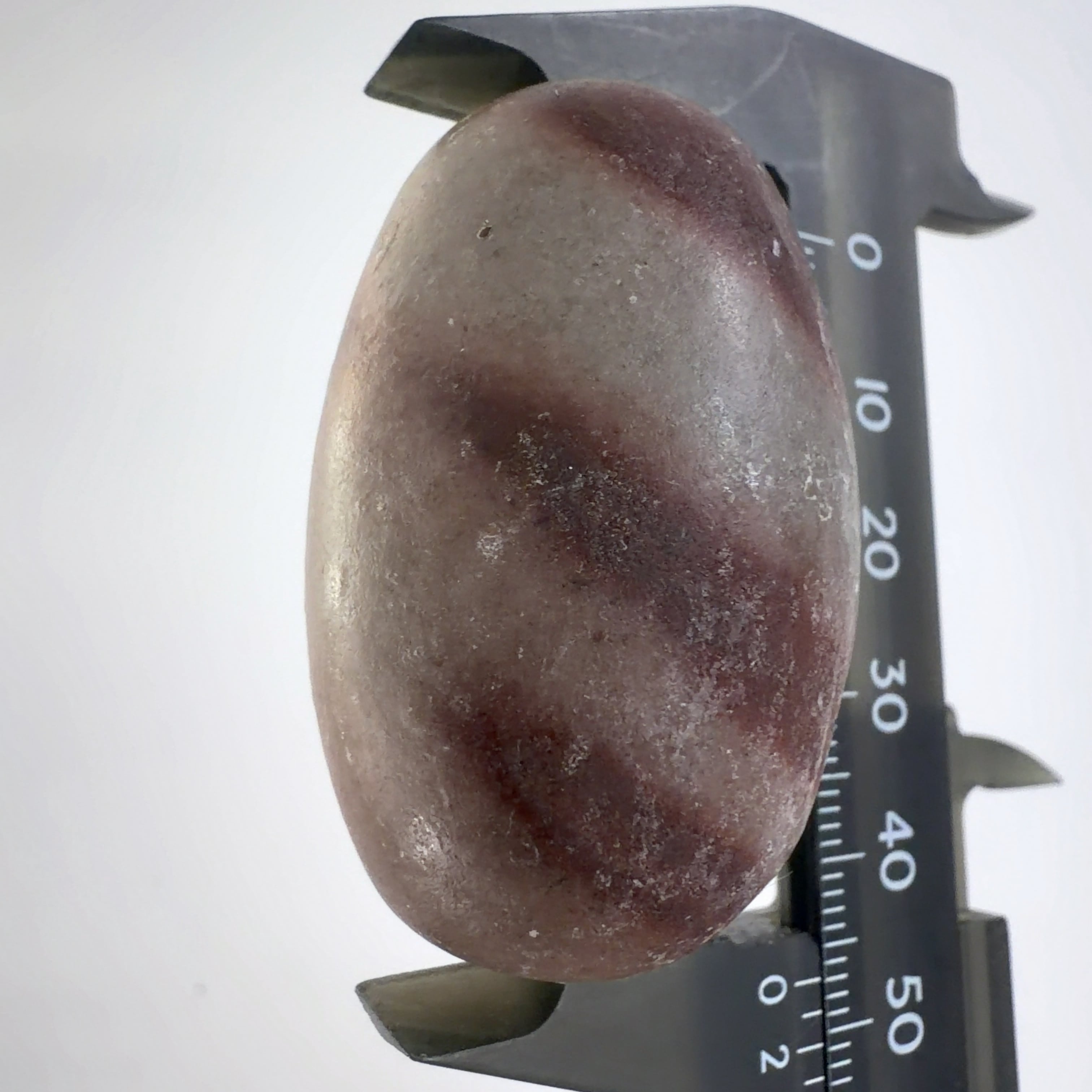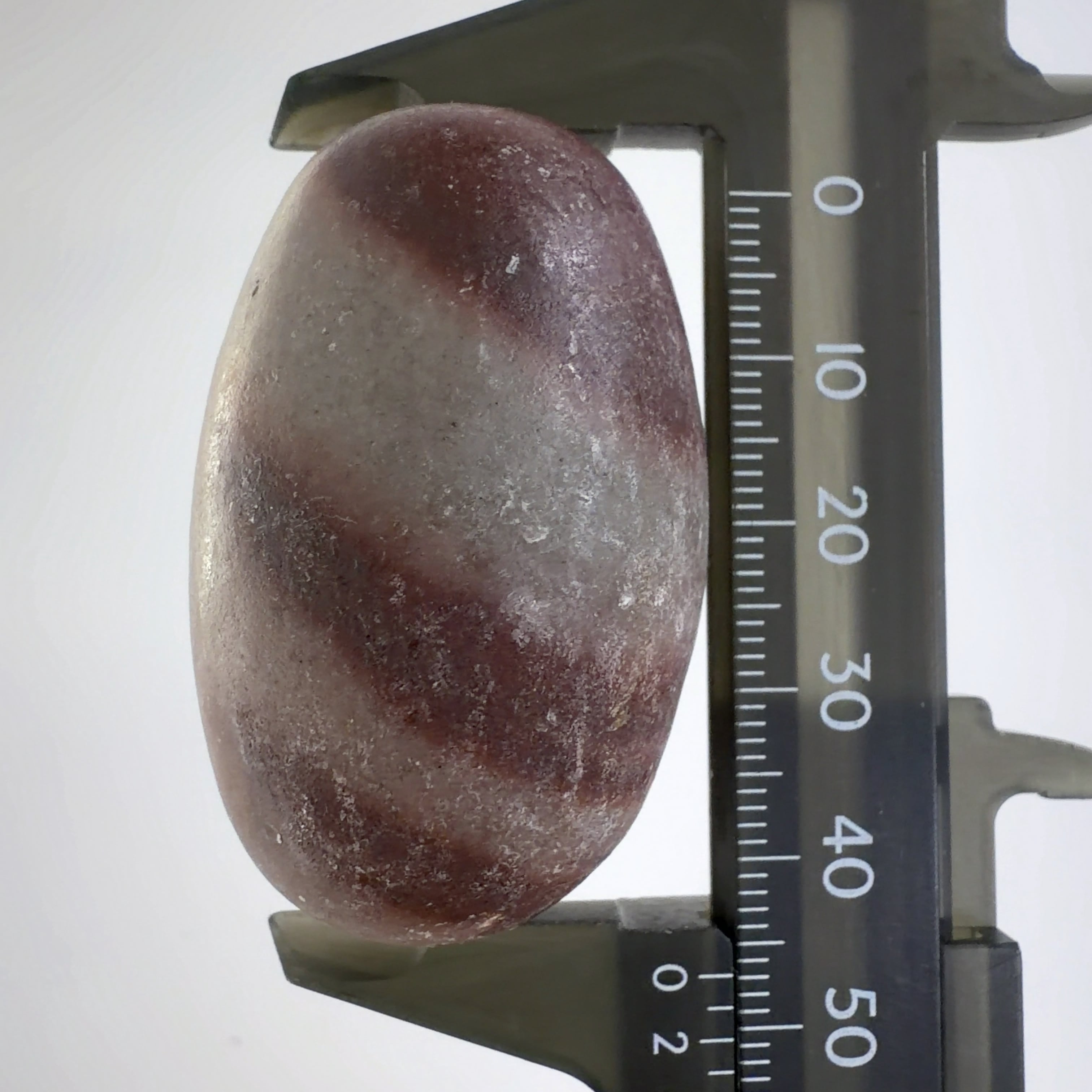 この堆積岩は石英の一種のクリストバル石が集合したもので表面の酸化鉄による焦げ茶色の模様が縁起の良いものとして重宝されています。