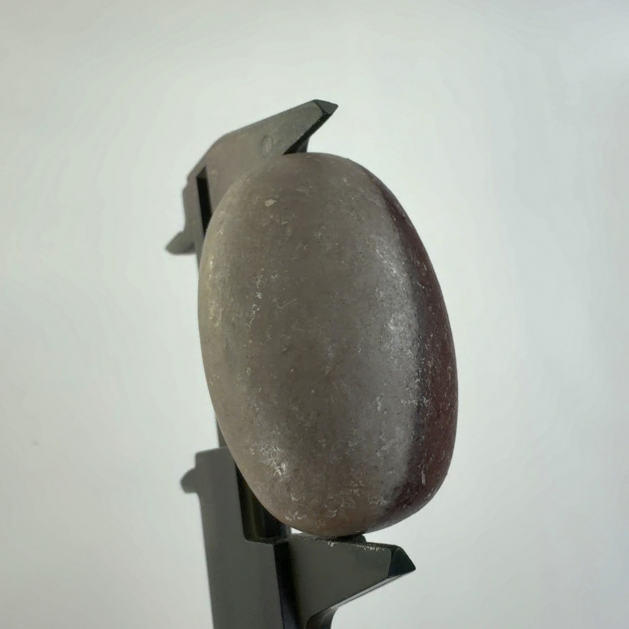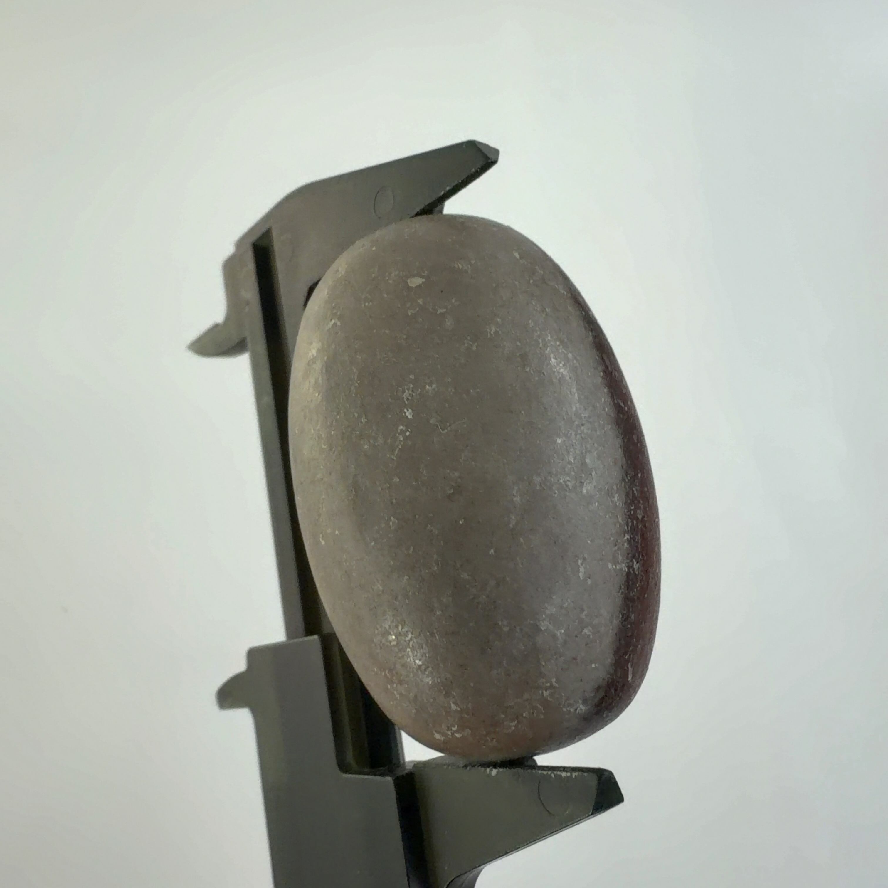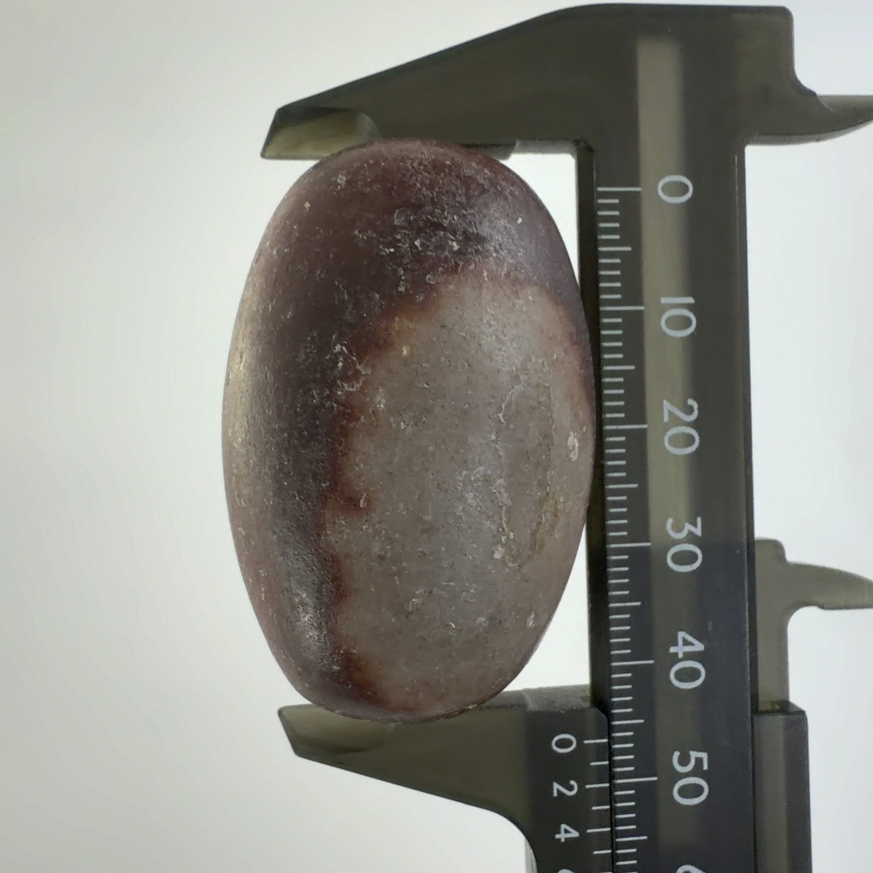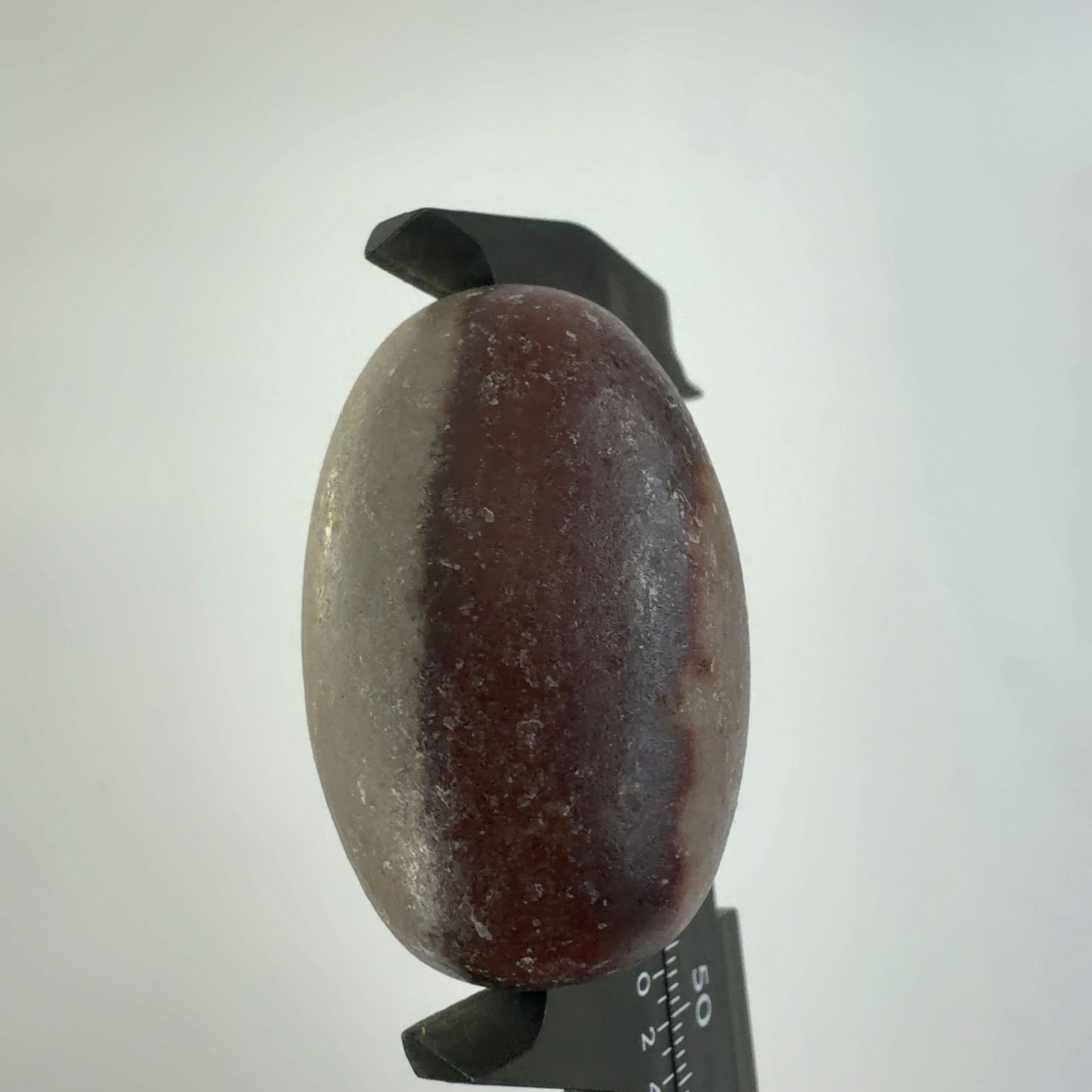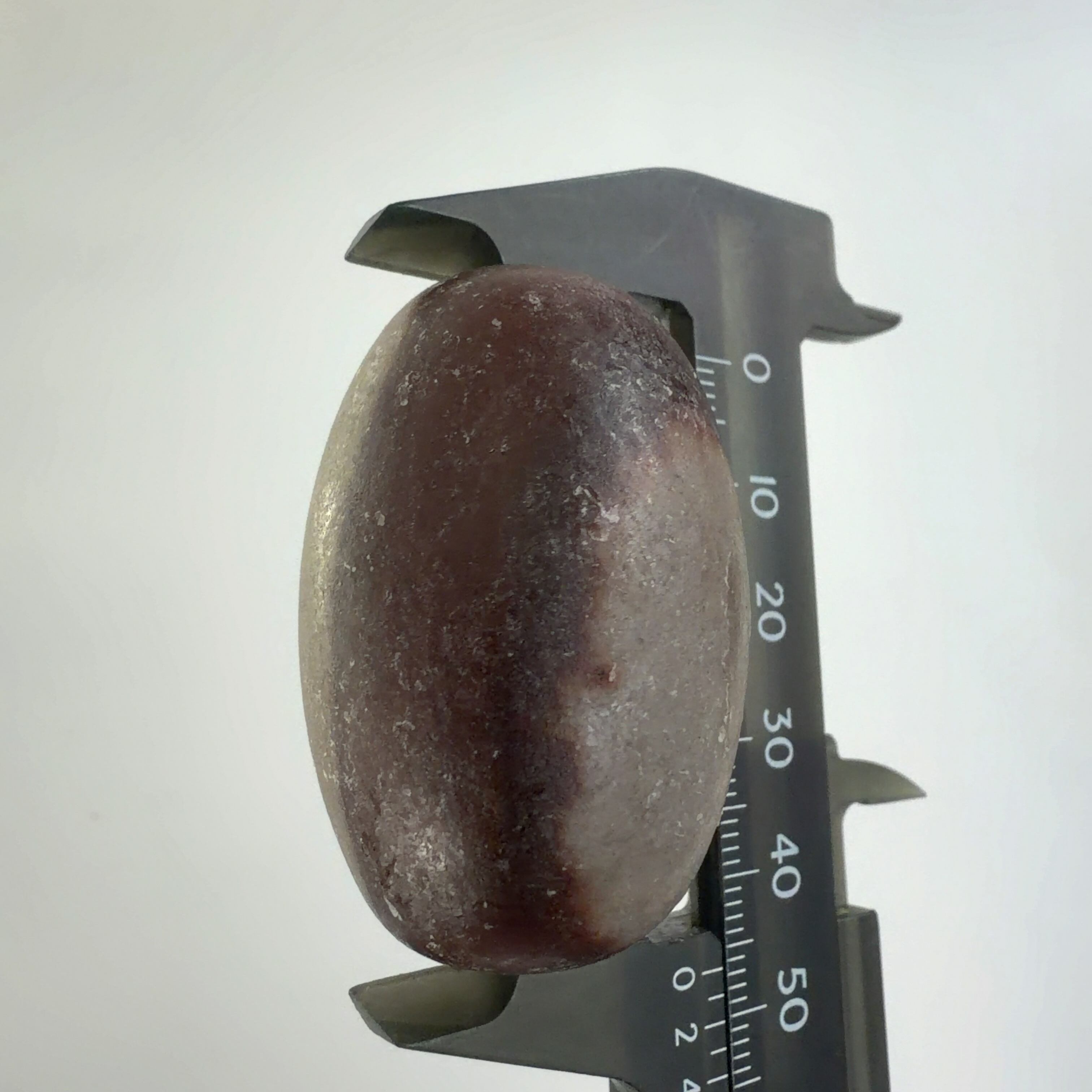 この堆積岩は石英の一種のクリストバル石が集合したもので表面の酸化鉄による焦げ茶色の模様が縁起の良いものとして重宝されています。