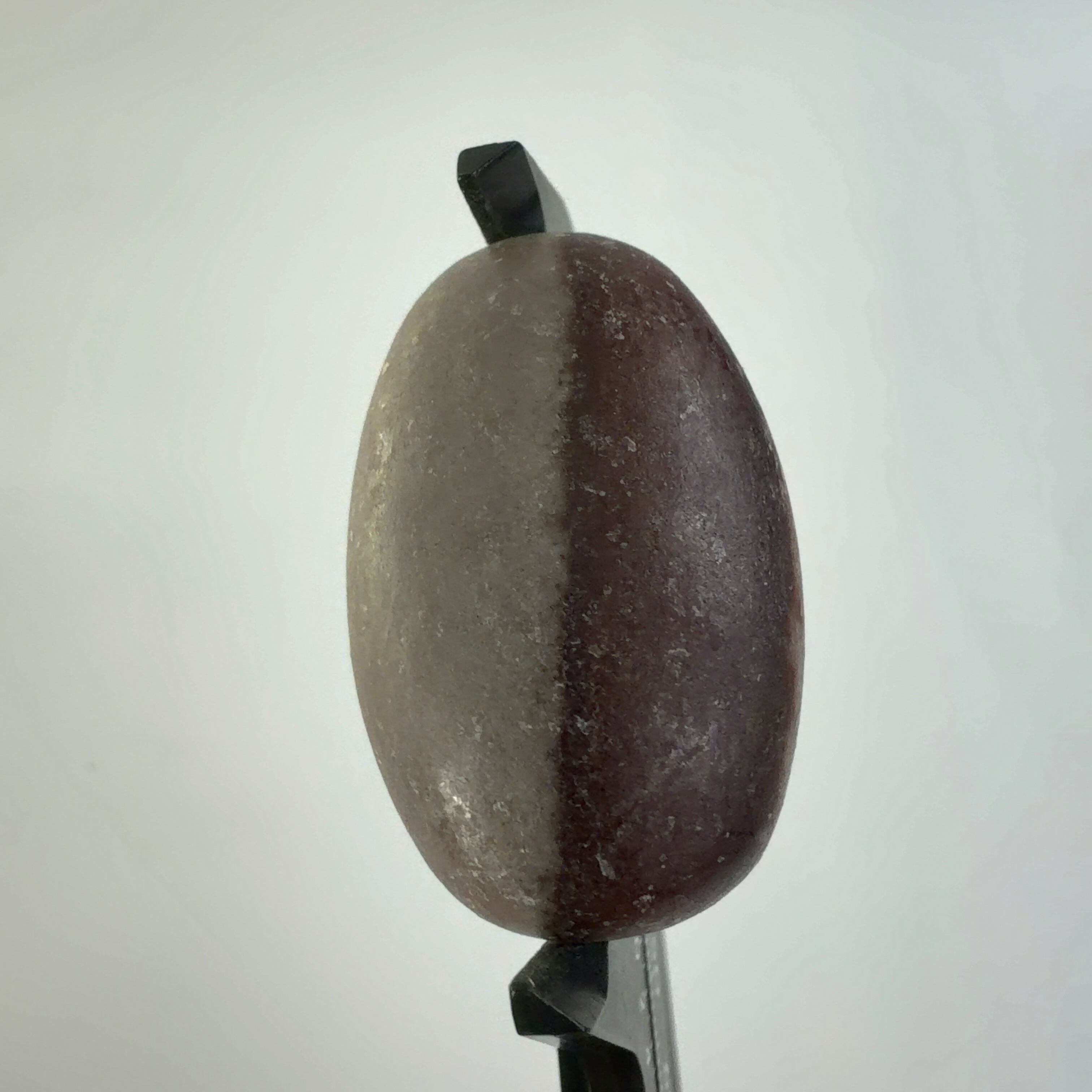 インドの七大聖地の一つのナルマダ川で採集されているもので、この川の両岸にあるヒンズー教寺院に生殖(子孫繁栄)の象徴として納められています。