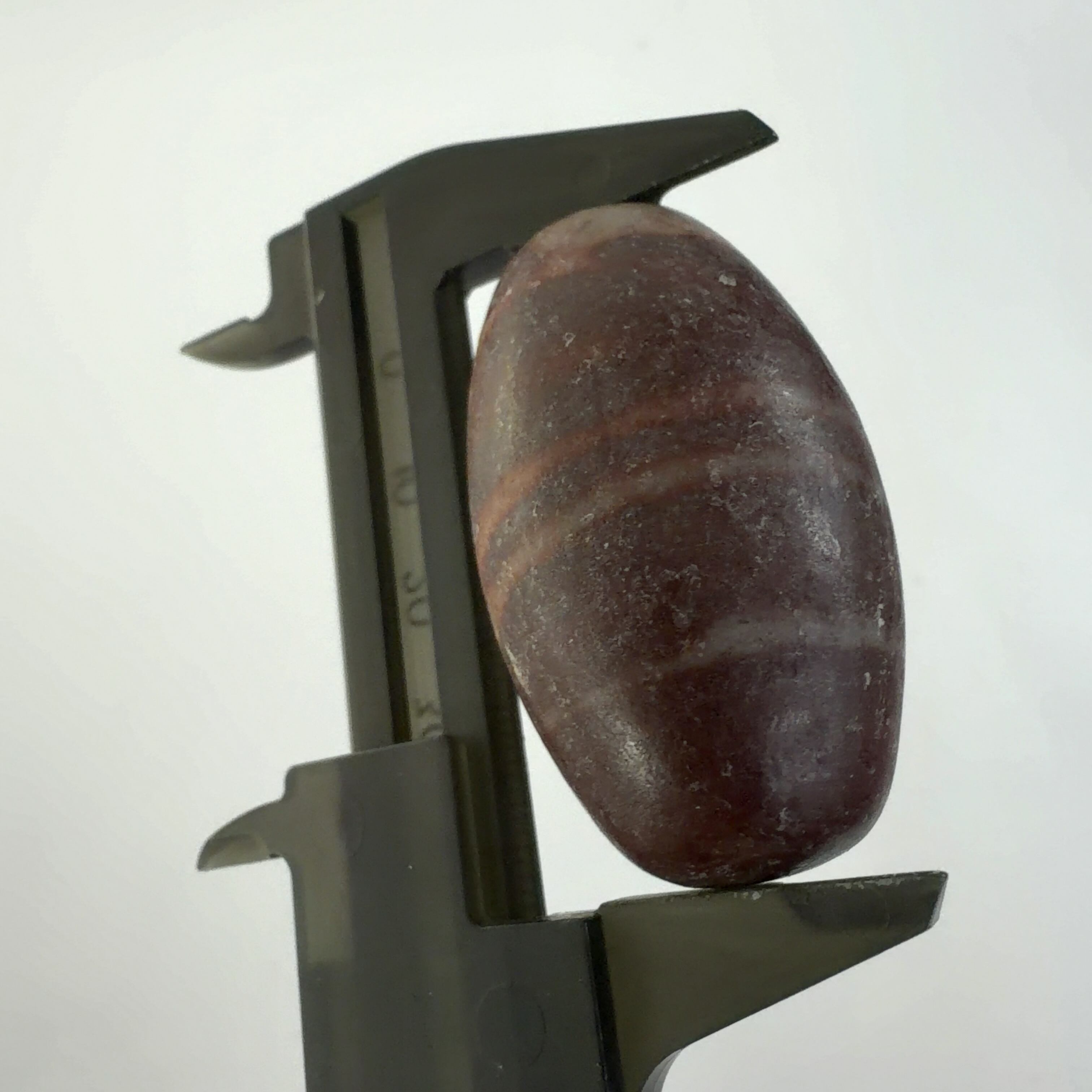 この堆積岩は石英の一種のクリストバル石が集合したもので表面の酸化鉄による焦げ茶色の模様が縁起の良いものとして重宝されています。