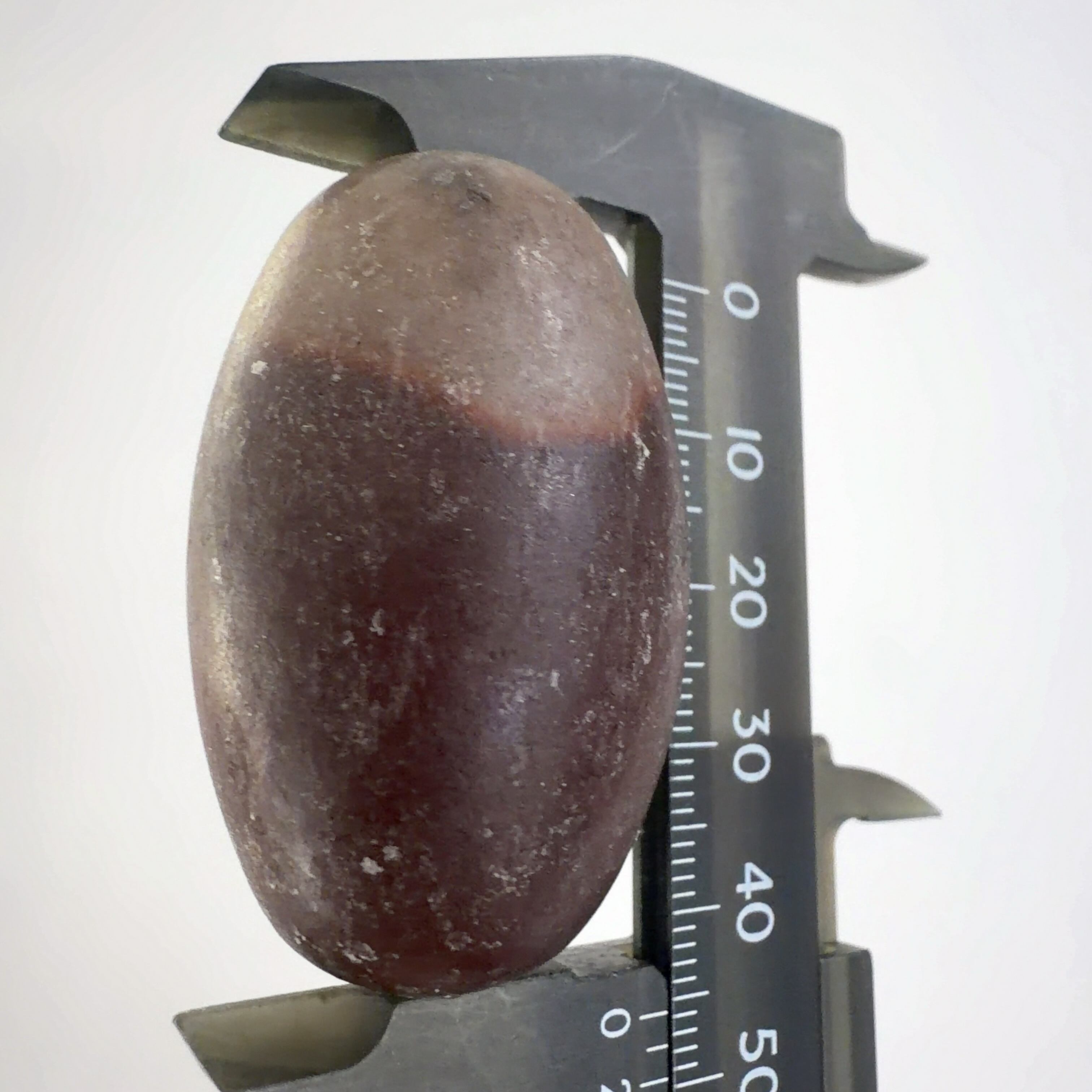 この堆積岩は石英の一種のクリストバル石が集合したもので表面の酸化鉄による焦げ茶色の模様が縁起の良いものとして重宝されています。