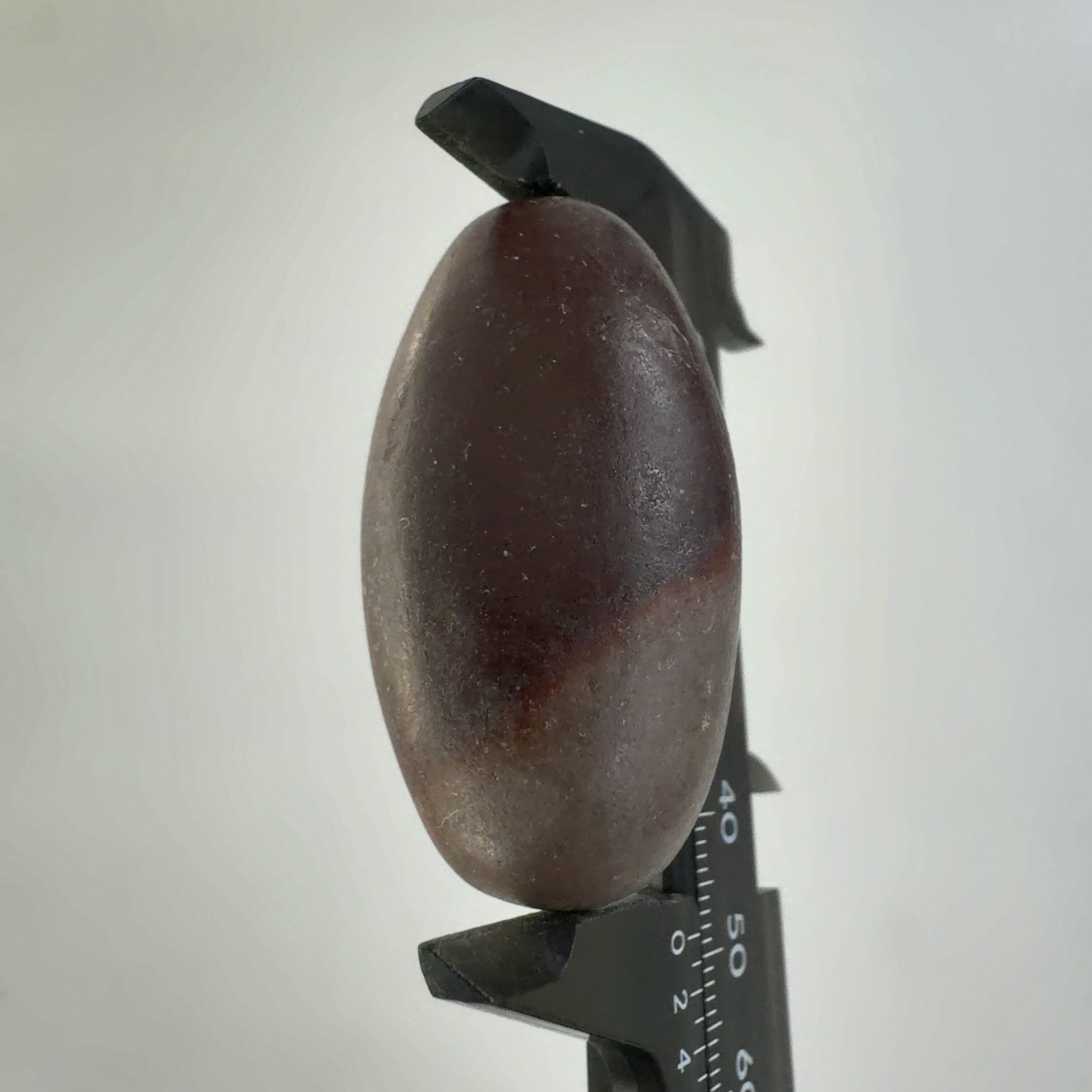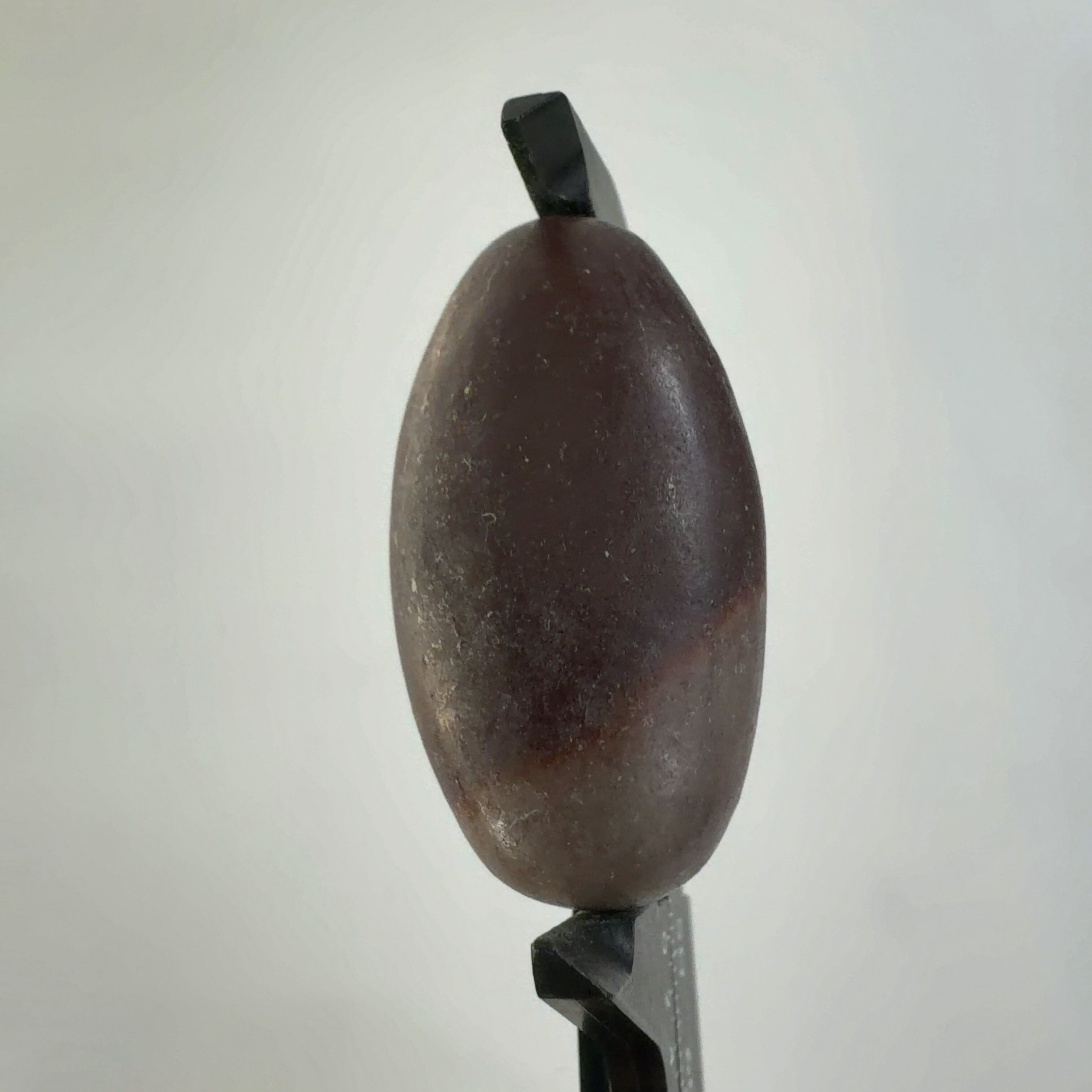 この堆積岩は石英の一種のクリストバル石が集合したもので表面の酸化鉄による焦げ茶色の模様が縁起の良いものとして重宝されています。