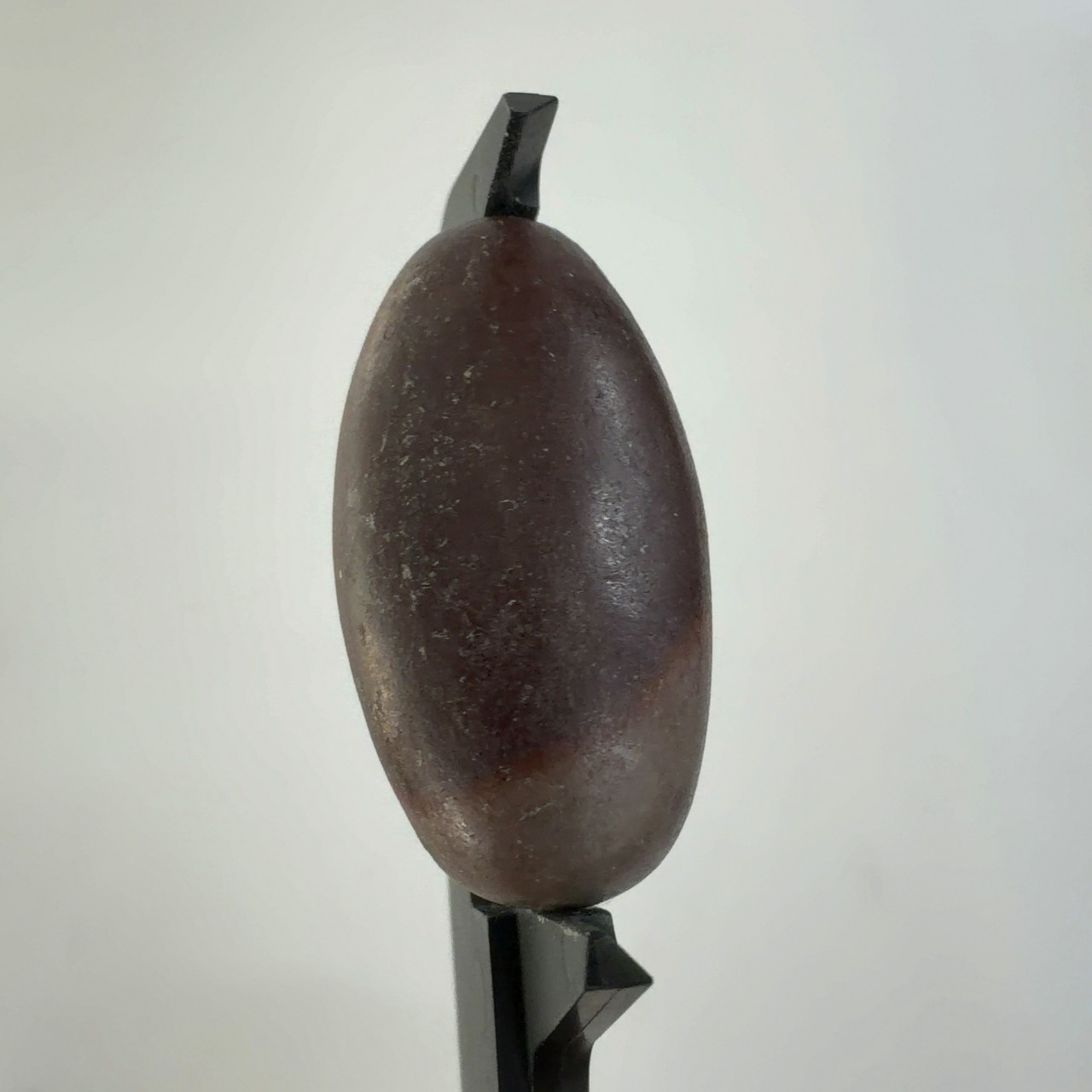インドの七大聖地の一つのナルマダ川で採集されているもので、この川の両岸にあるヒンズー教寺院に生殖(子孫繁栄)の象徴として納められています。