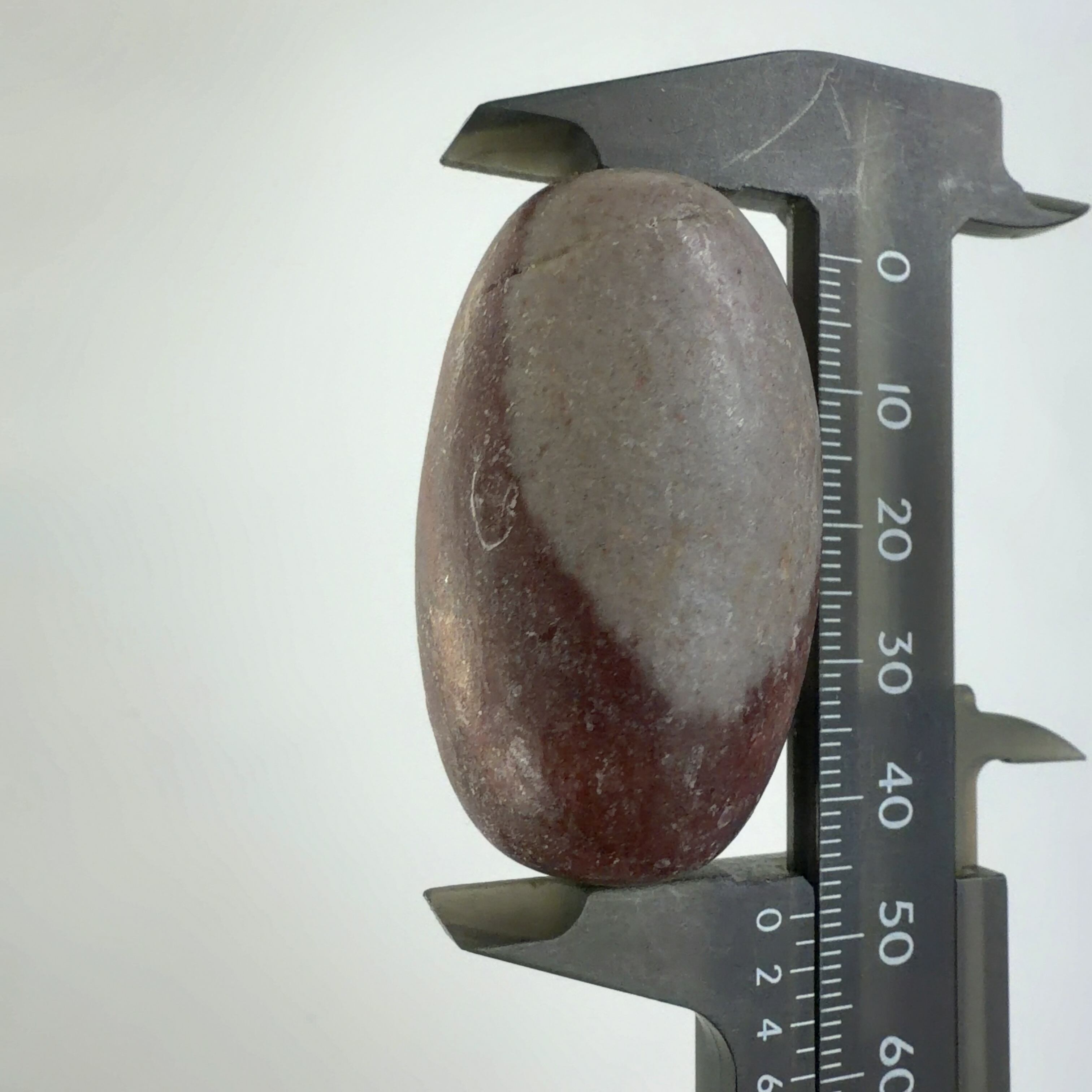 この堆積岩は石英の一種のクリストバル石が集合したもので表面の酸化鉄による焦げ茶色の模様が縁起の良いものとして重宝されています。