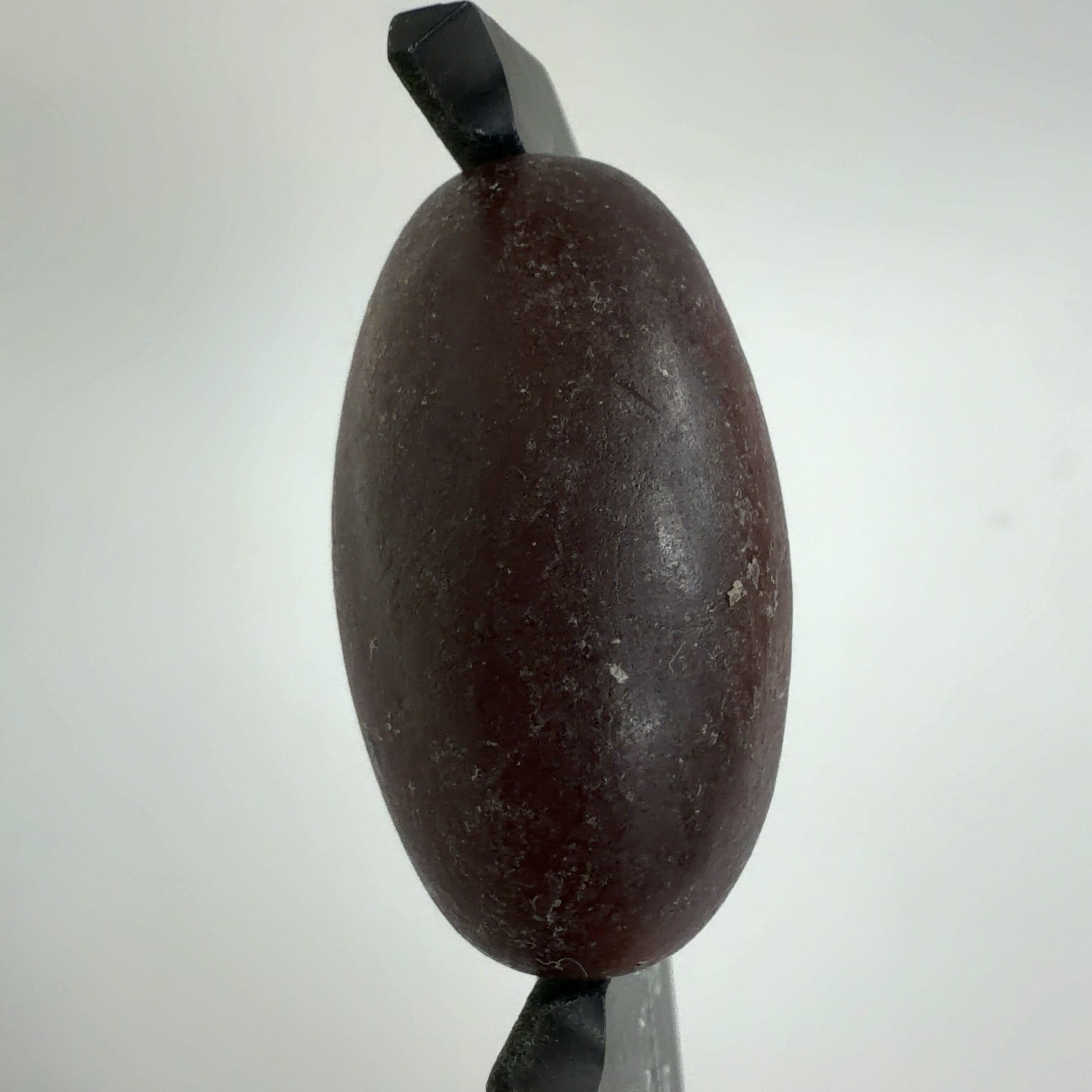 インドの七大聖地の一つのナルマダ川で採集されているもので、この川の両岸にあるヒンズー教寺院に生殖(子孫繁栄)の象徴として納められています。